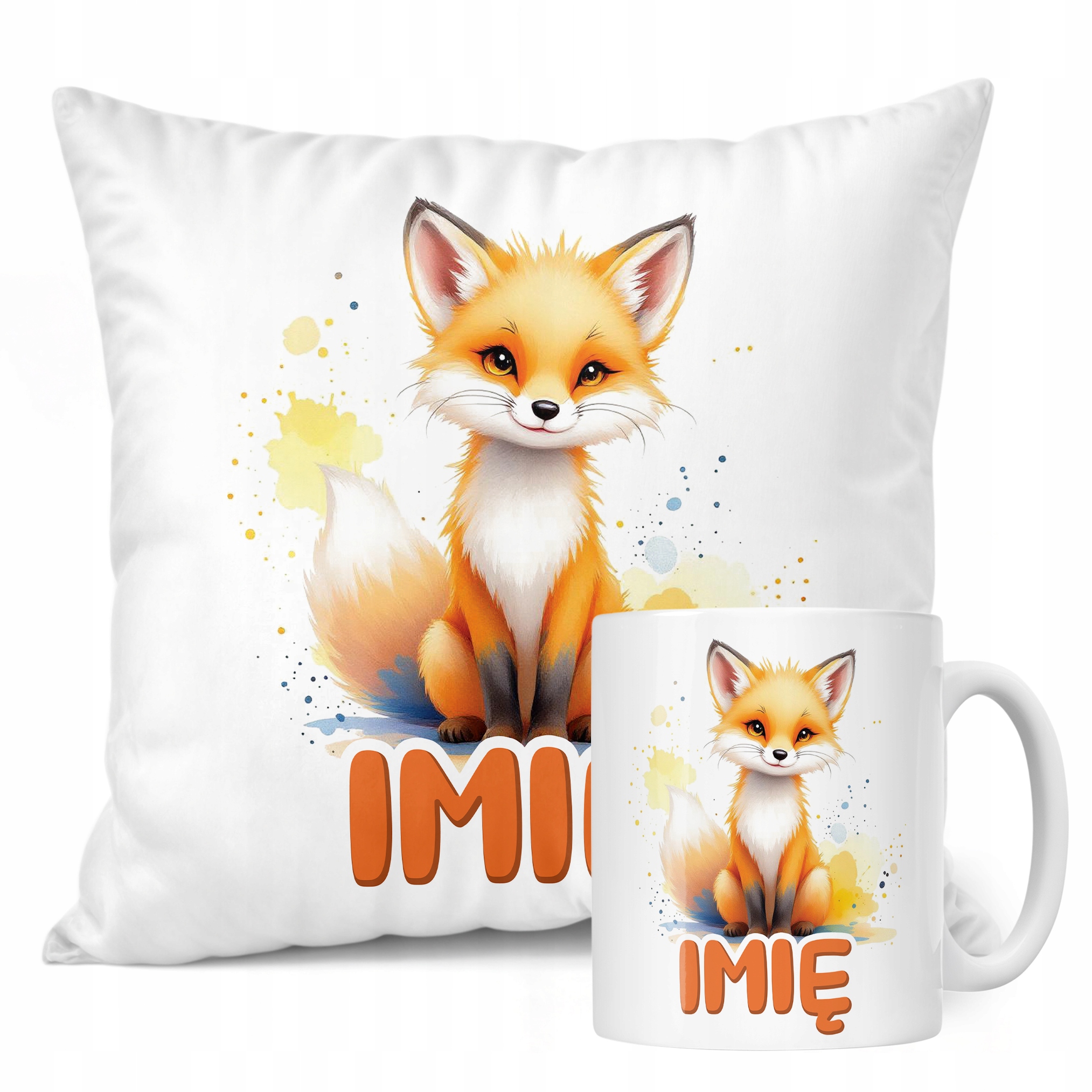 Zestaw personalizowany Kubek + Poduszka Lis Zwierzak Słodki Prezent