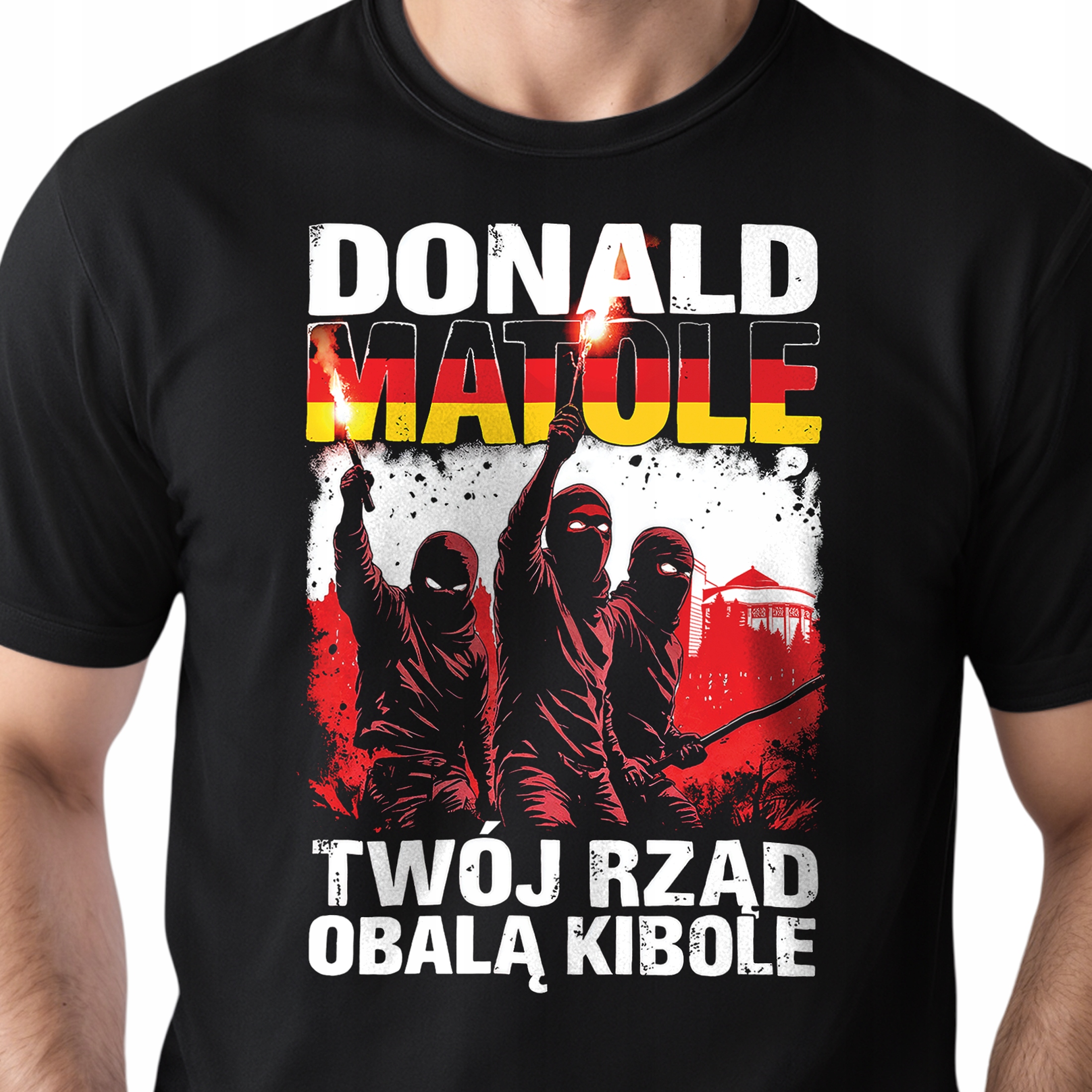 Koszulka czarna męska Donald Matole Twój Rząd Obalą Kibole r. XXL