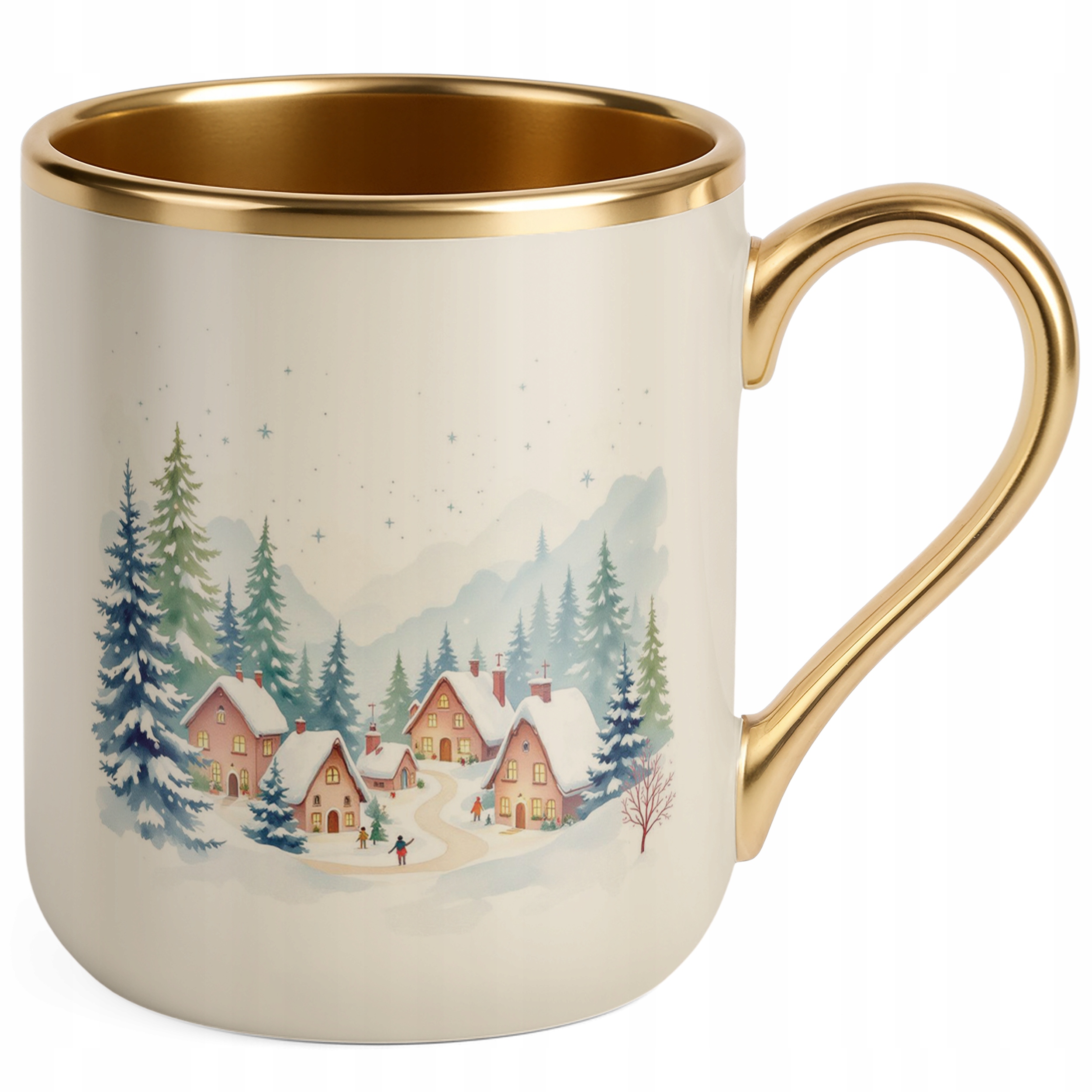 Kubek Premium Złoty Ecru Świąteczny Boże Narodzenie Mikołajki Upominek