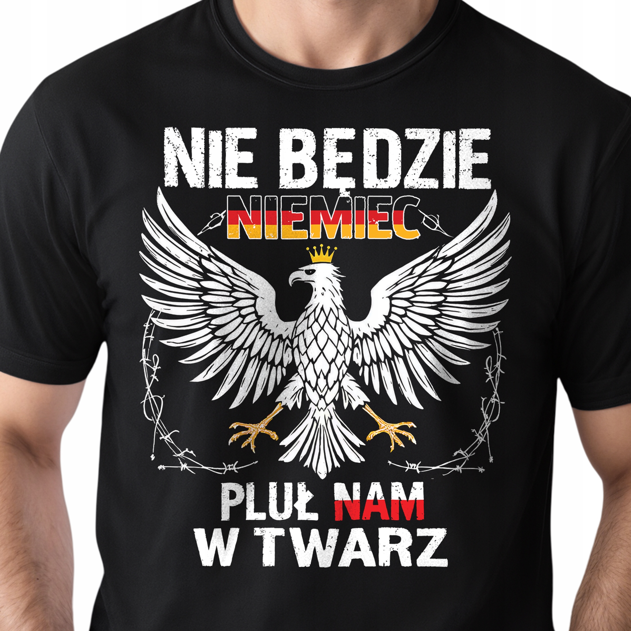 Koszulka czarna męska Nie Będzie Niemiec Pluł Nam W Twarz r. 3XL