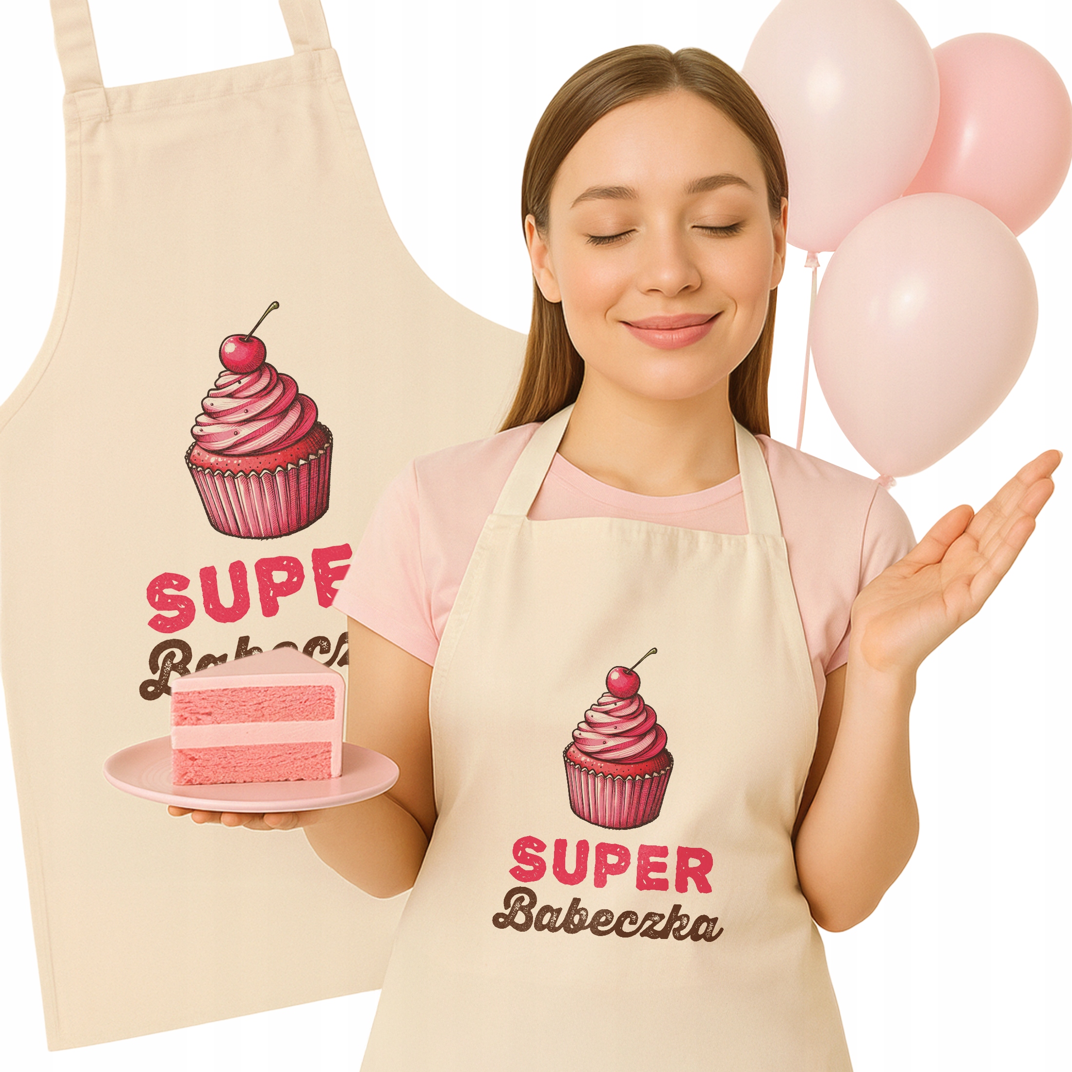 Bawełniany Fartuch Kuchenny Ecru Dzień Matki Szefowa Kuchni Prezent
