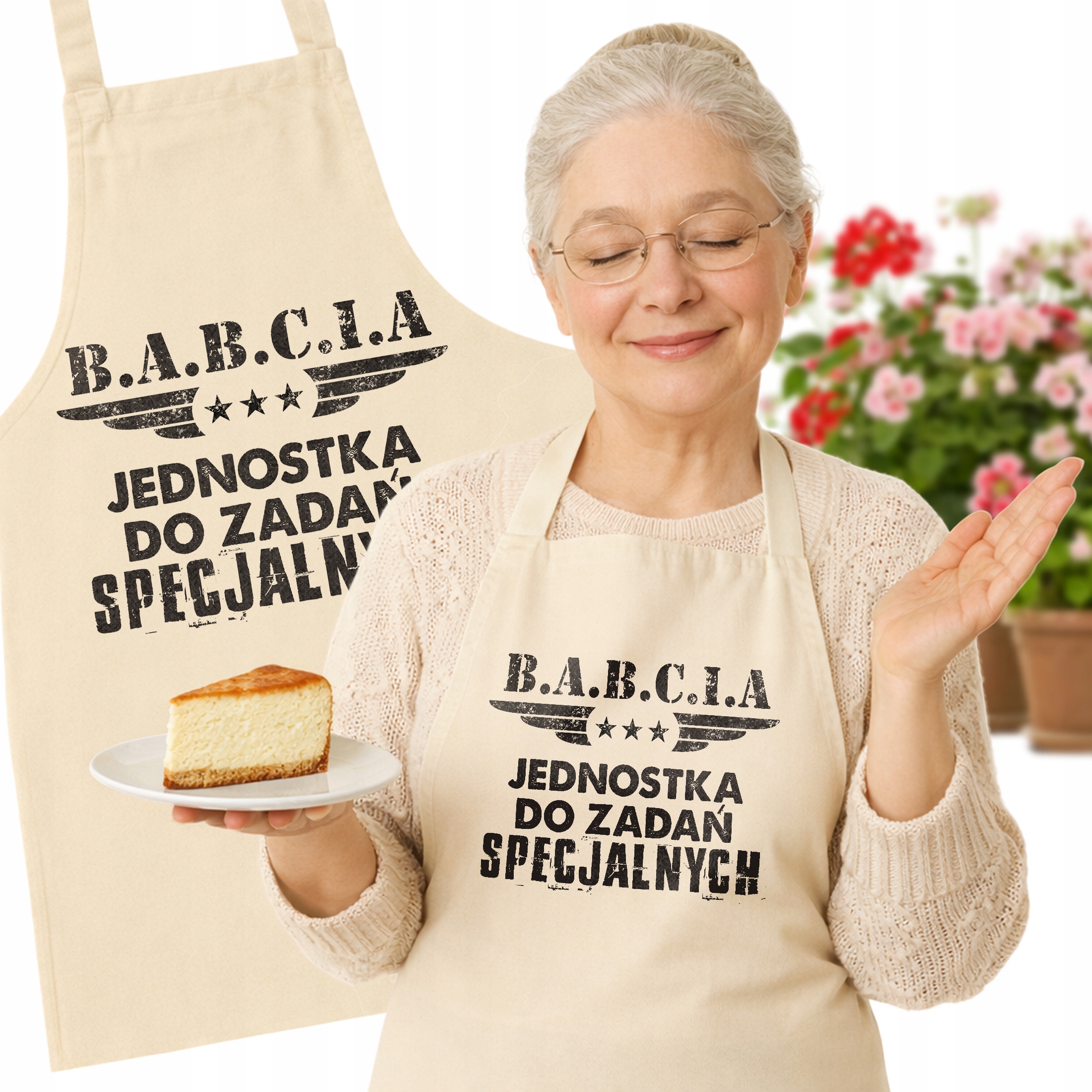 Bawełniany Fartuch Kuchenny Ecru Dzień Babci Dla Babci Prezent Z Nadrukiem