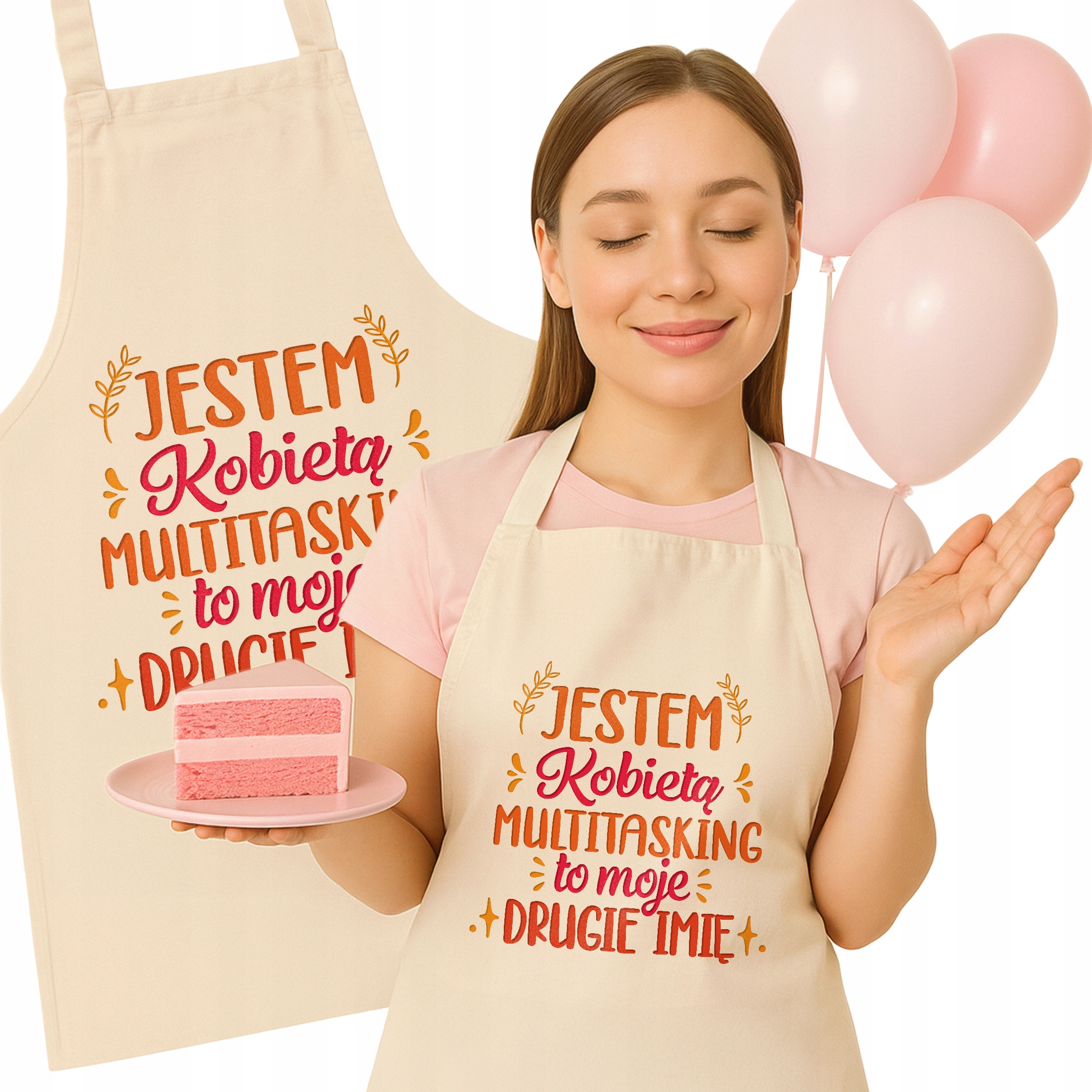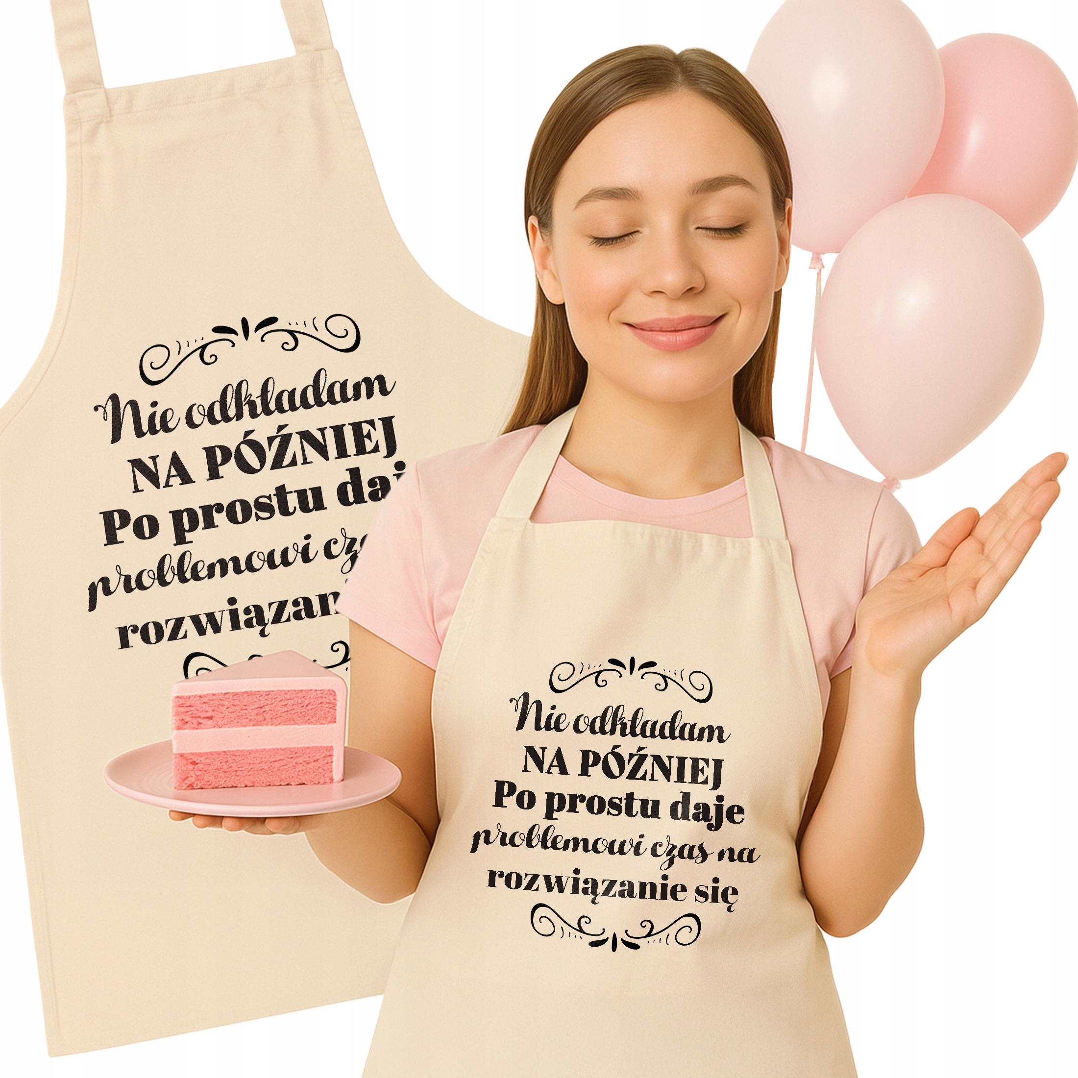 Bawełniany Fartuch Kuchenny Ecru Dzień Kobiet Prezent Z Nadrukiem Dla Niej