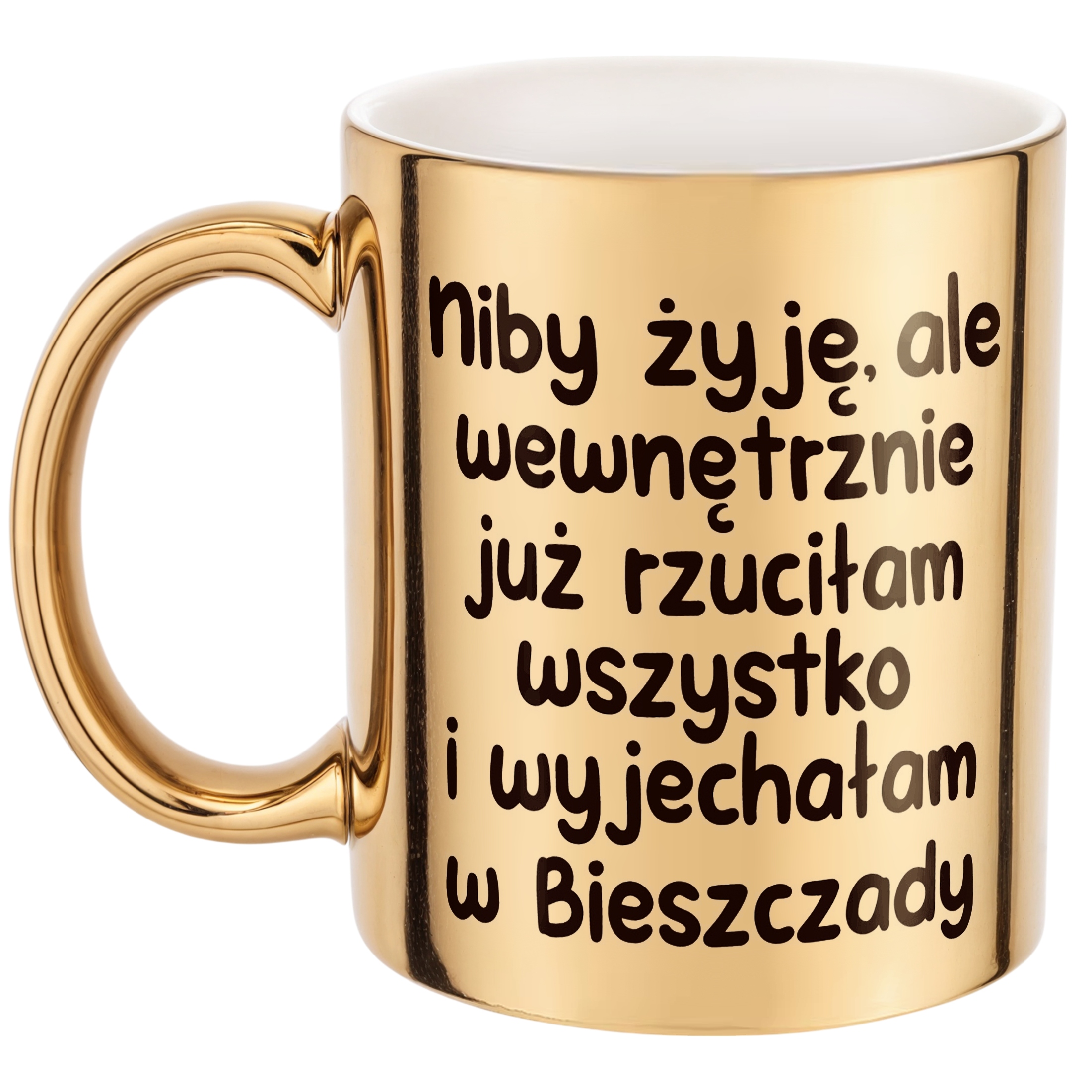 Złoty Kubek Niby Żyję Ale Wewnętrznie Śmieszny Zabawny Prezent