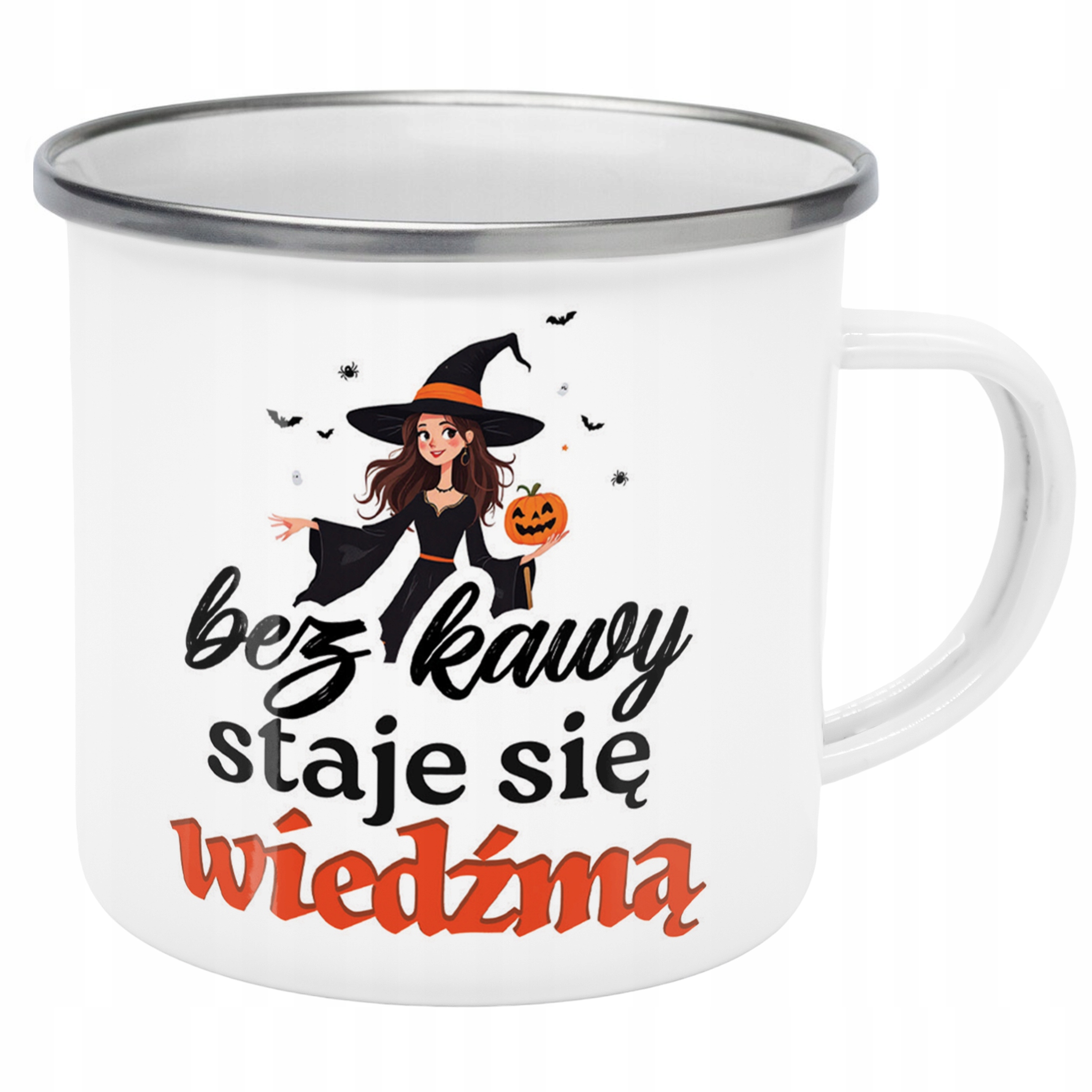 Emaliowany Kubek Garnuszek Bez Kawy Staje Się Wiedźmą Dla Kobiety
