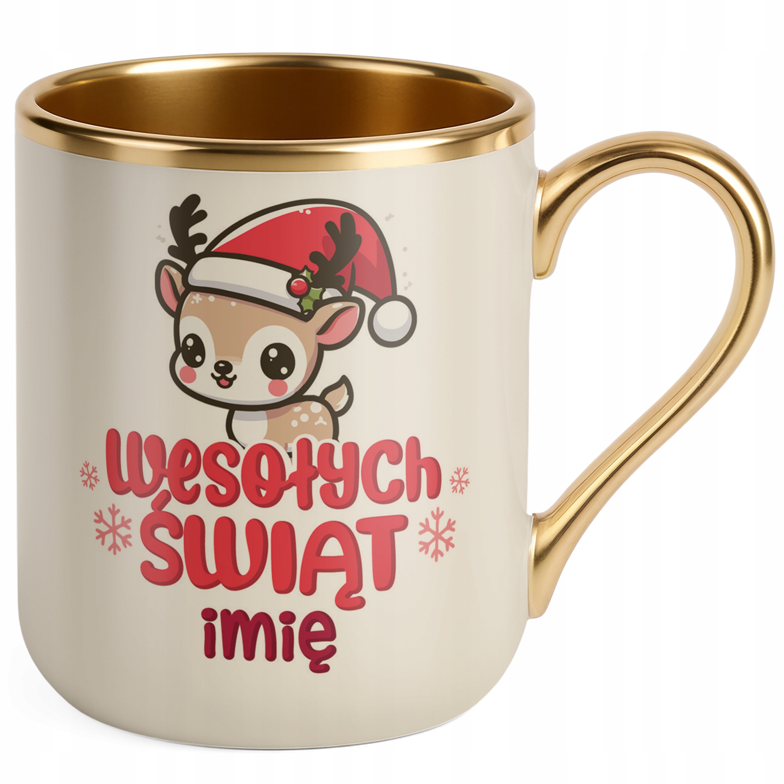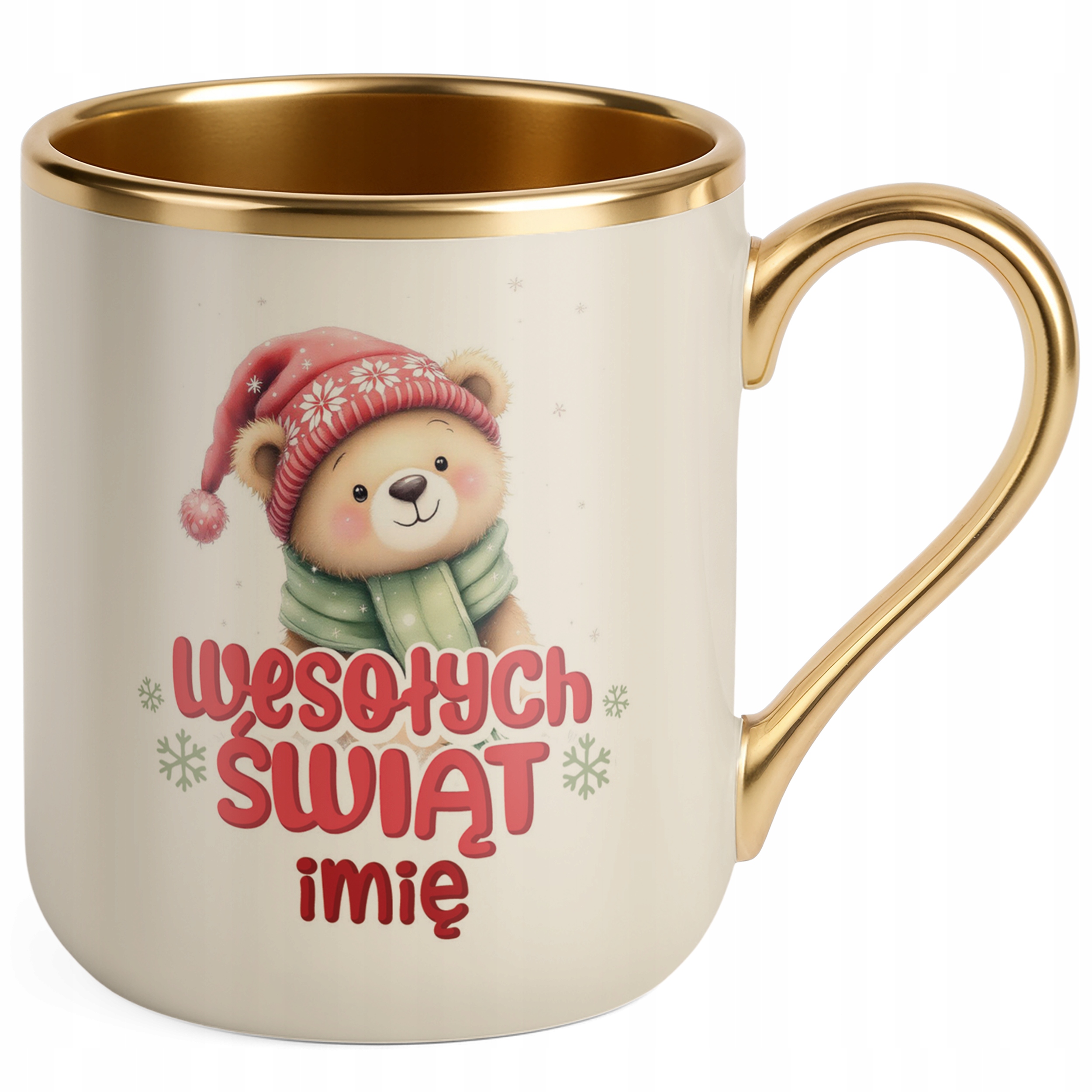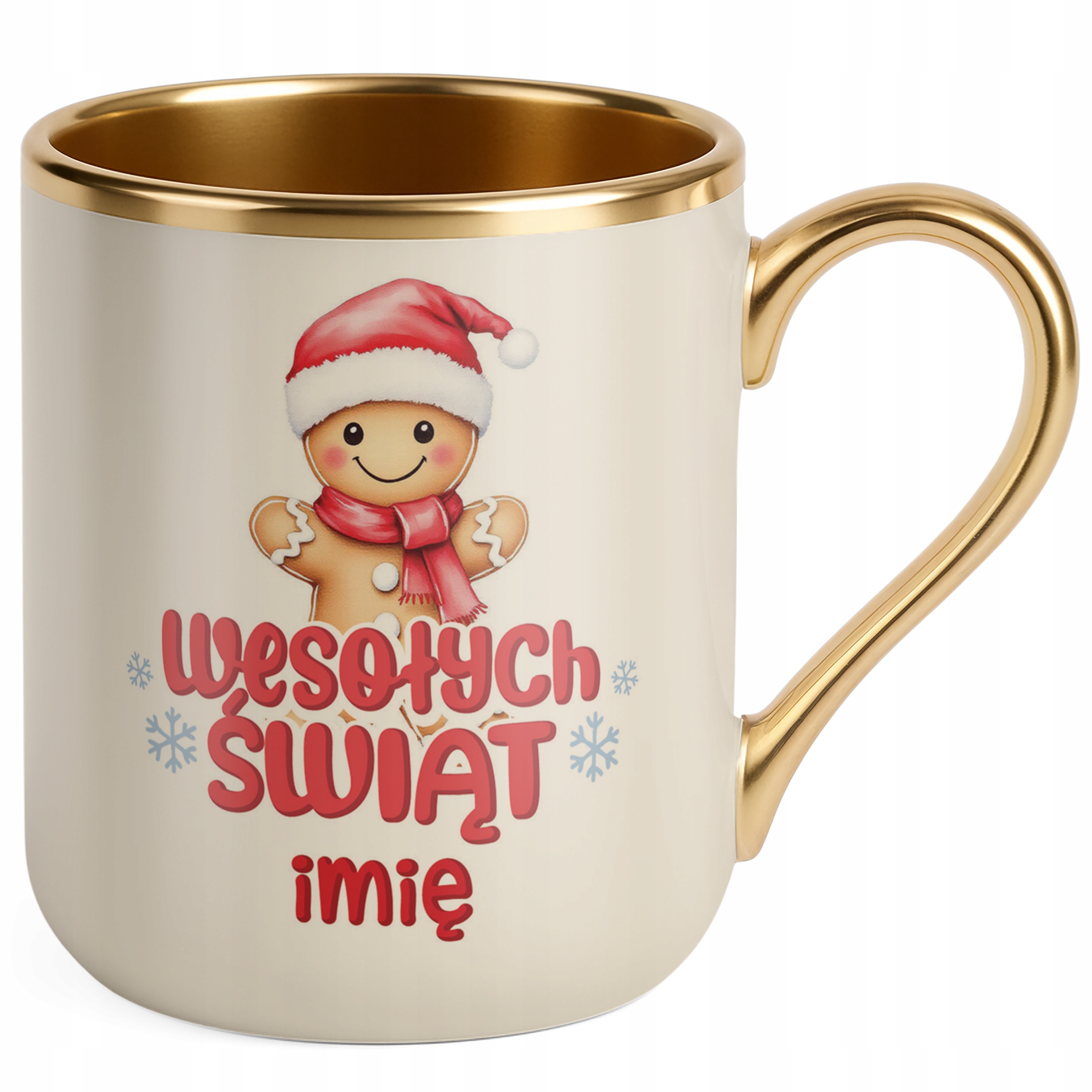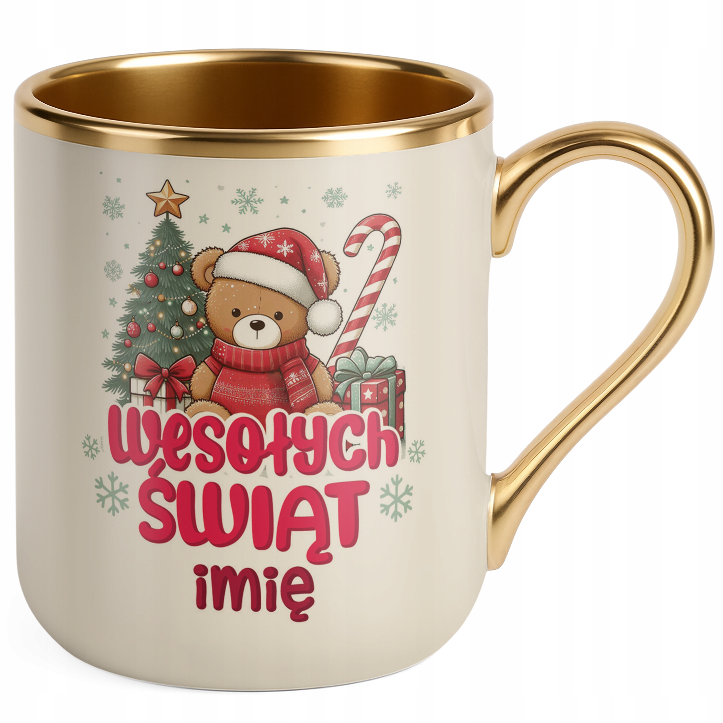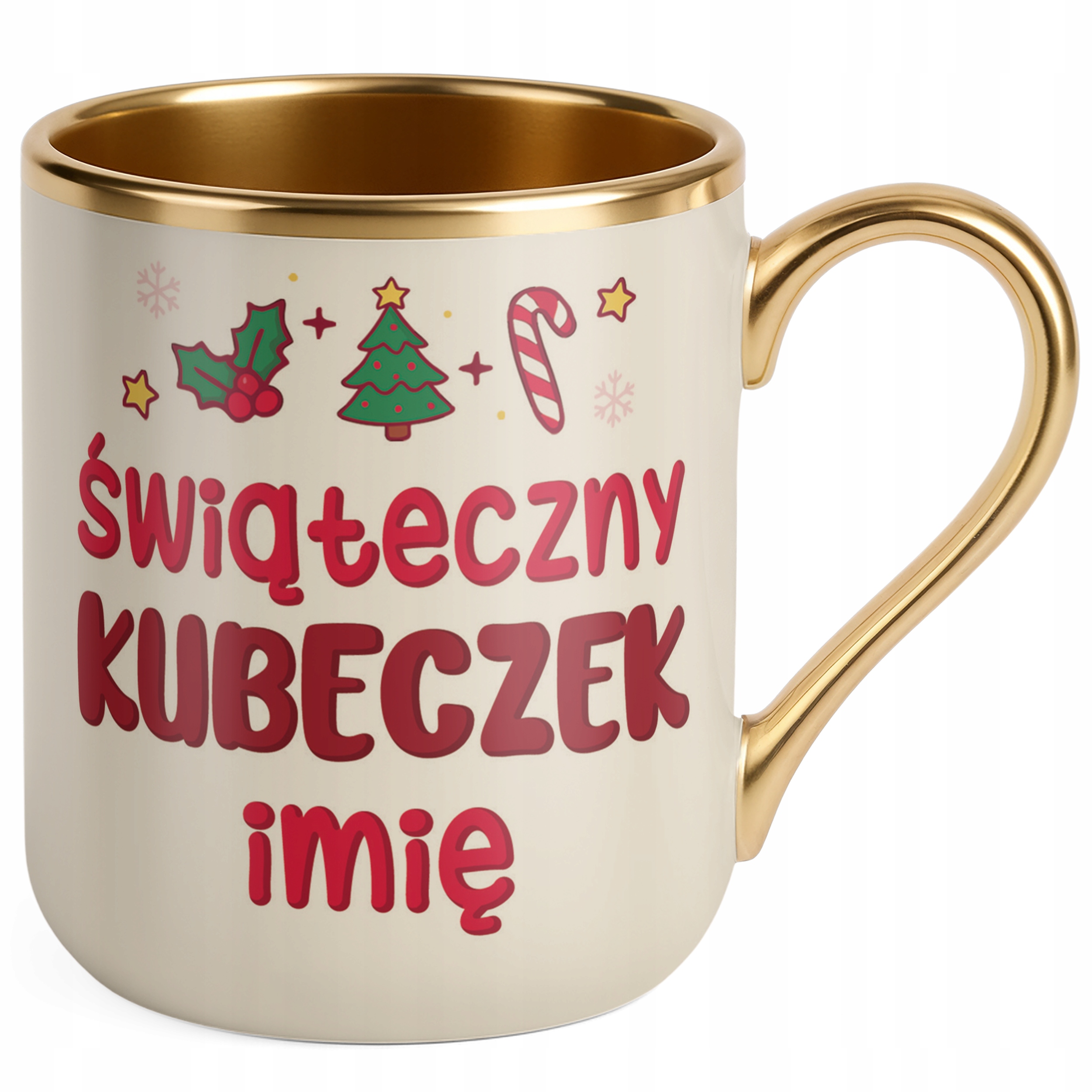 Kubek Premium Złoty Ecru Personalizowany Świąteczny Boże Narodzenie Prezent