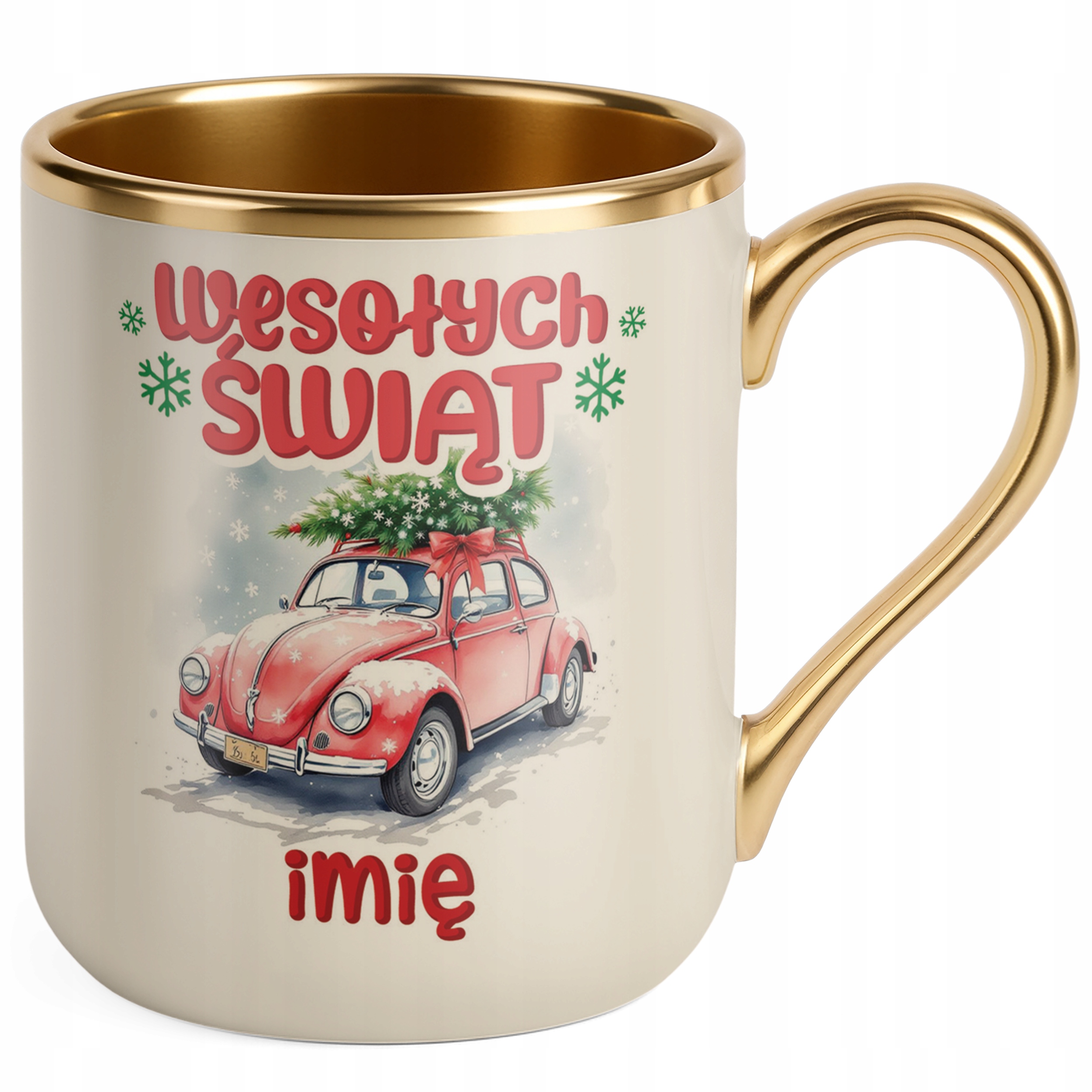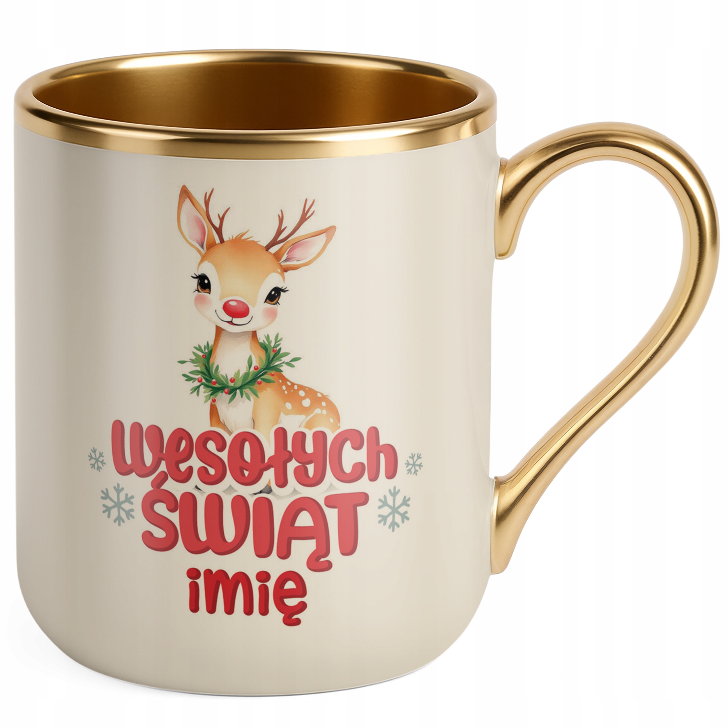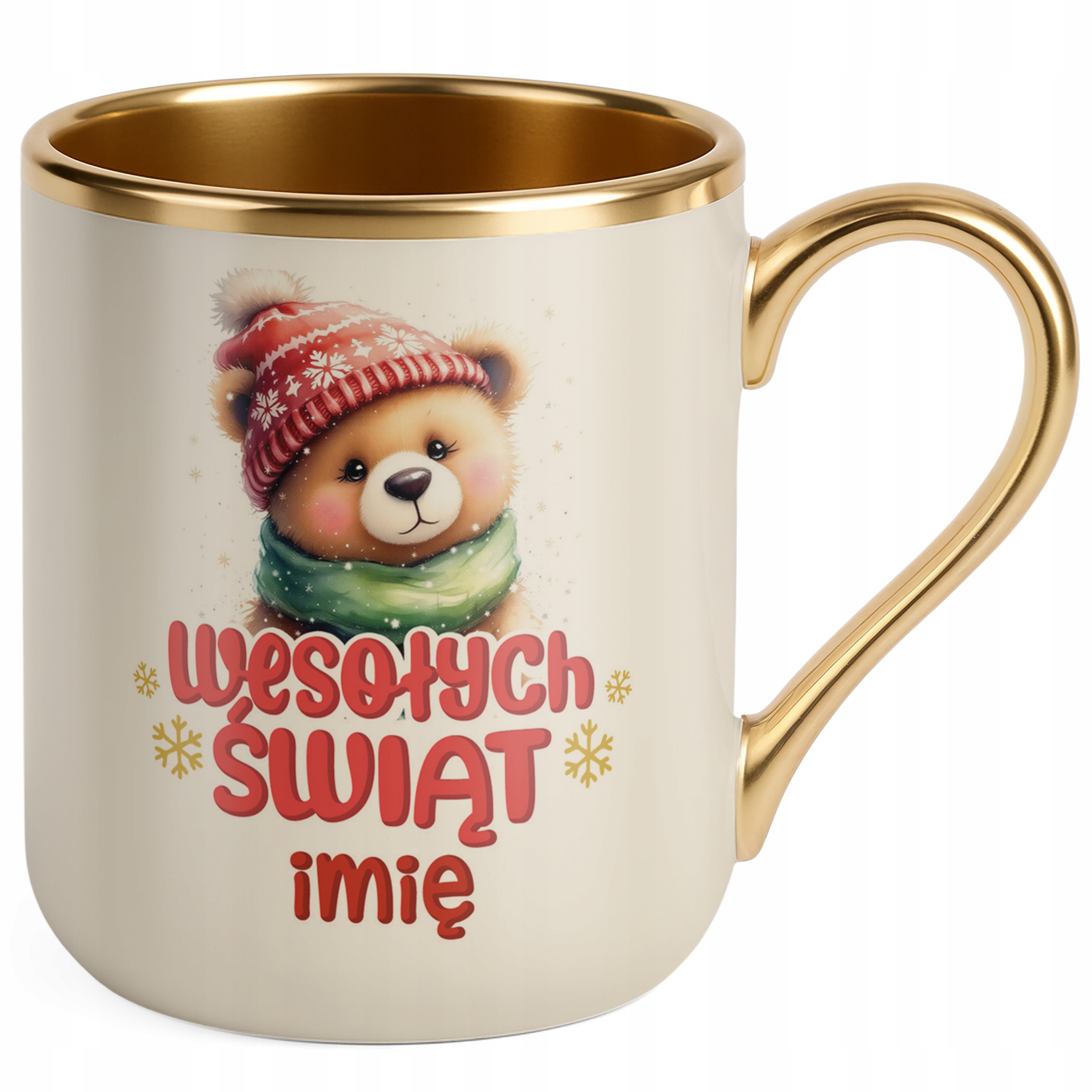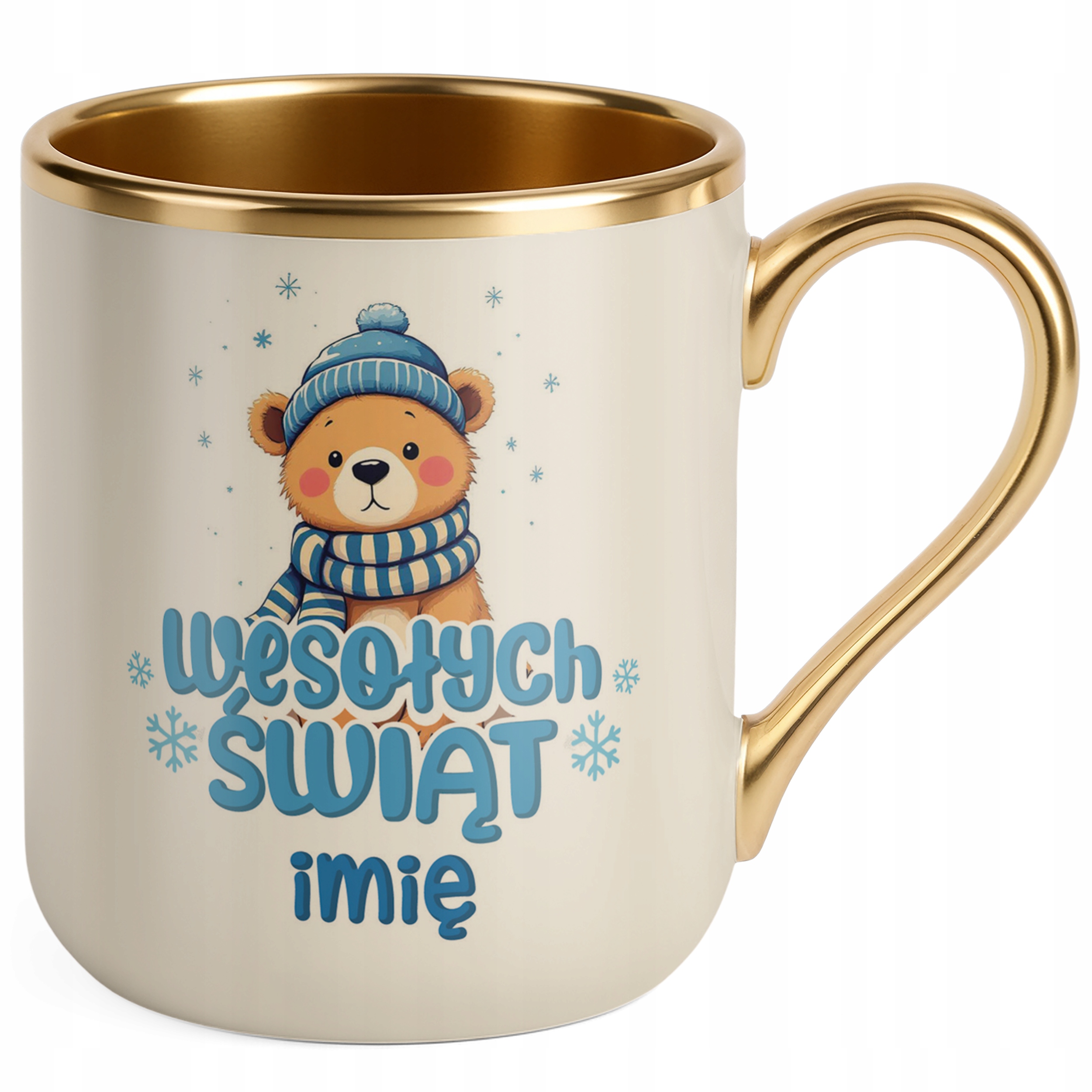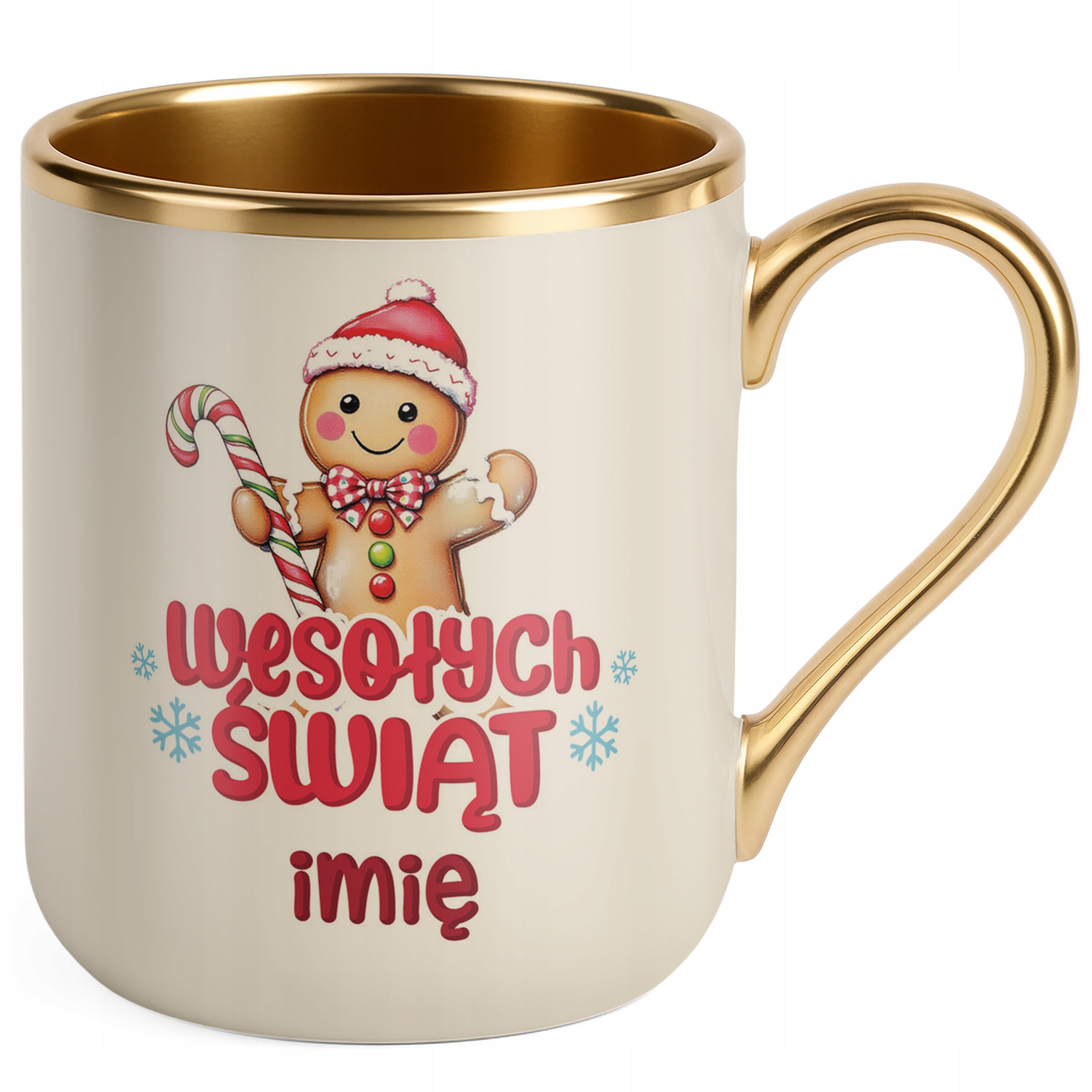 Kubek Premium Złoty Ecru Personalizowany Świąteczny Boże Narodzenie Prezent