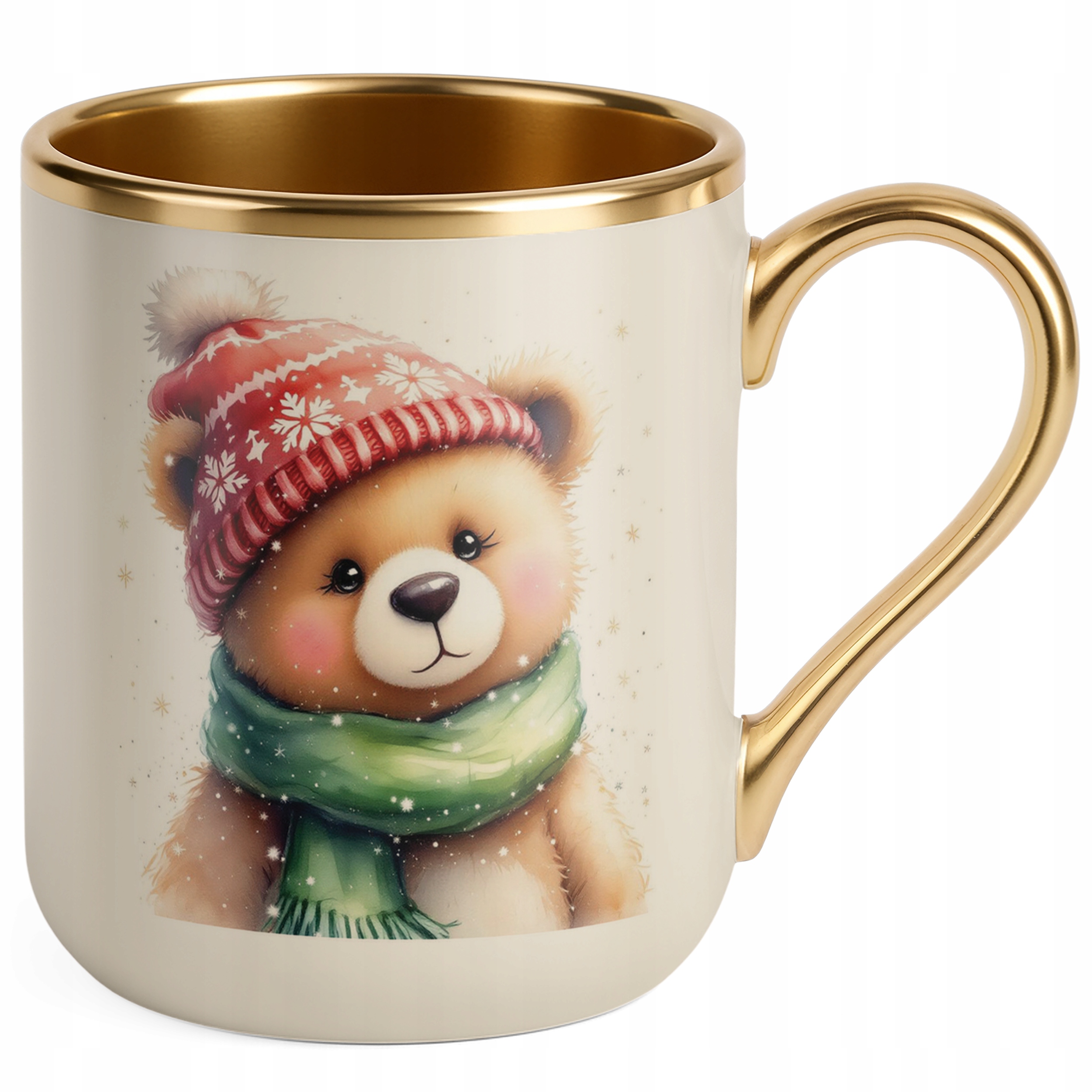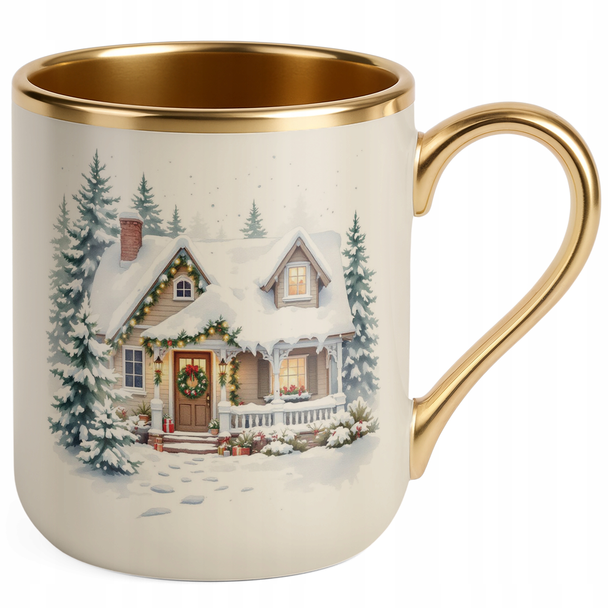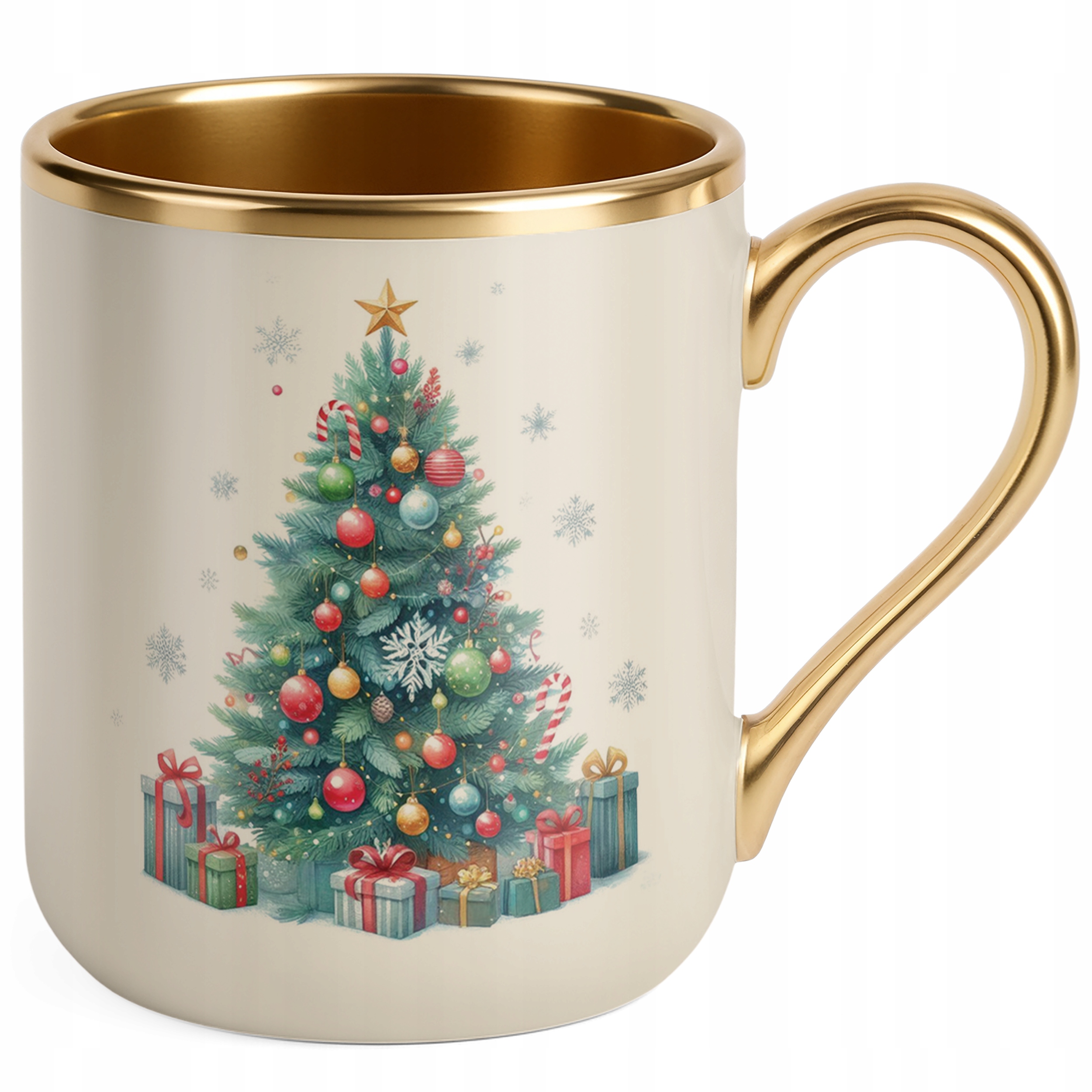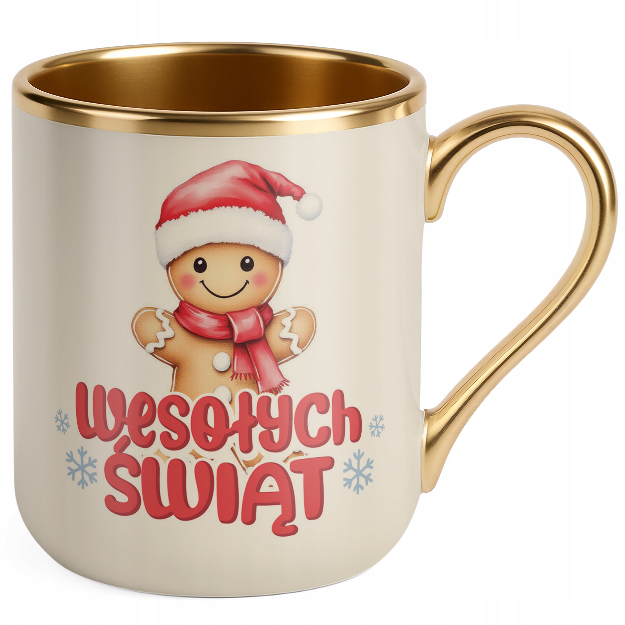 Kubek Premium Złoty Ecru Świąteczny Boże Narodzenie Mikołajki Upominek