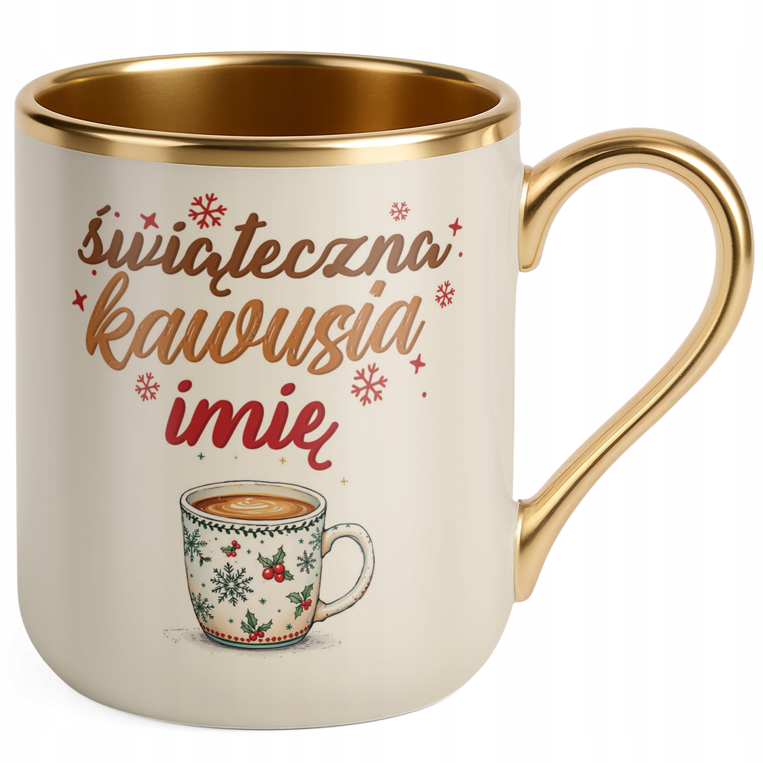 Kubek Premium Złoty Ecru Personalizowany Świąteczna Kawusia Prezent
