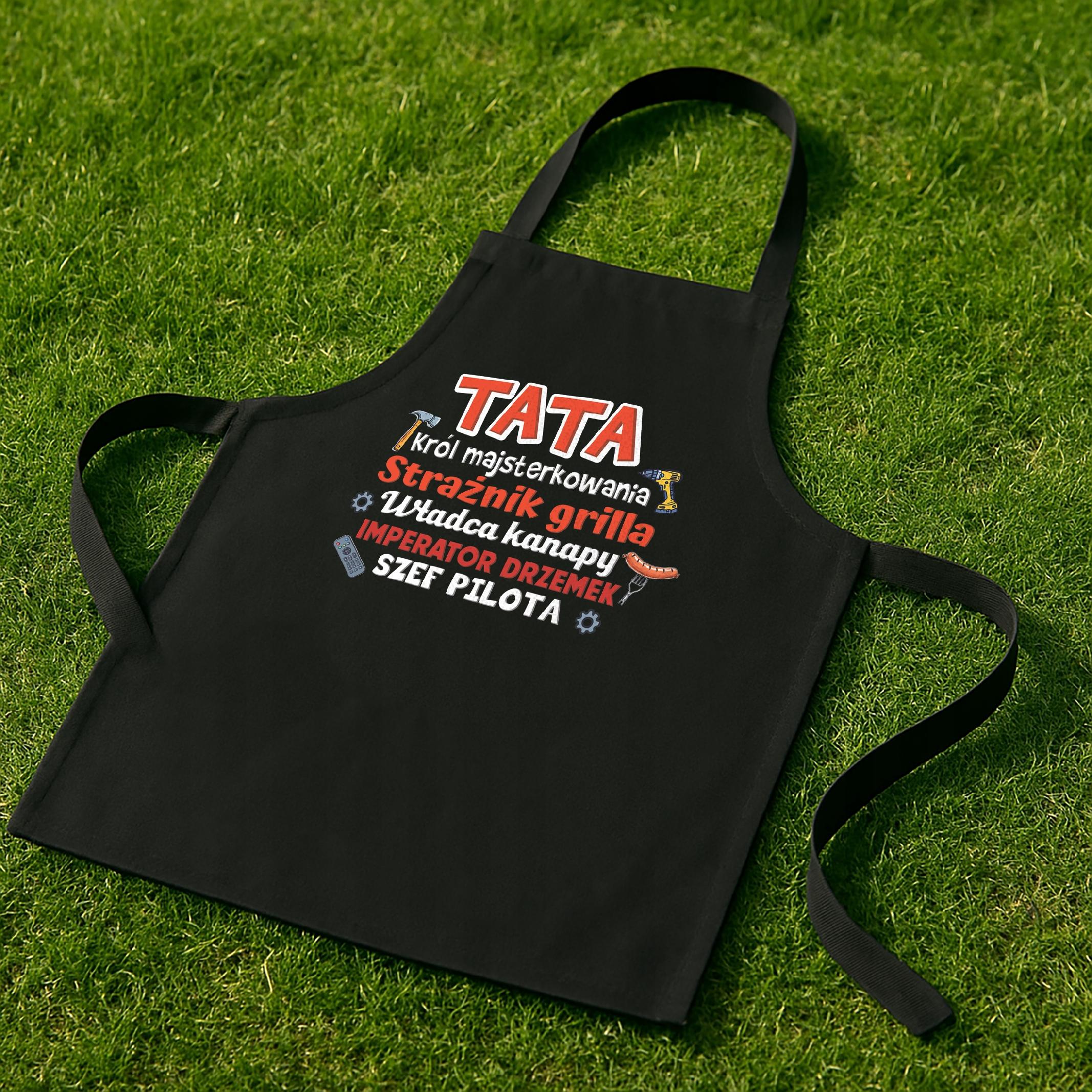 ✨ Bawełniany czarny fartuch kuchenny z nadrukiem z okazji Dnia Ojca – Idealny prezent dla mistrza grilla i domowego masterchefa Taty! ✨