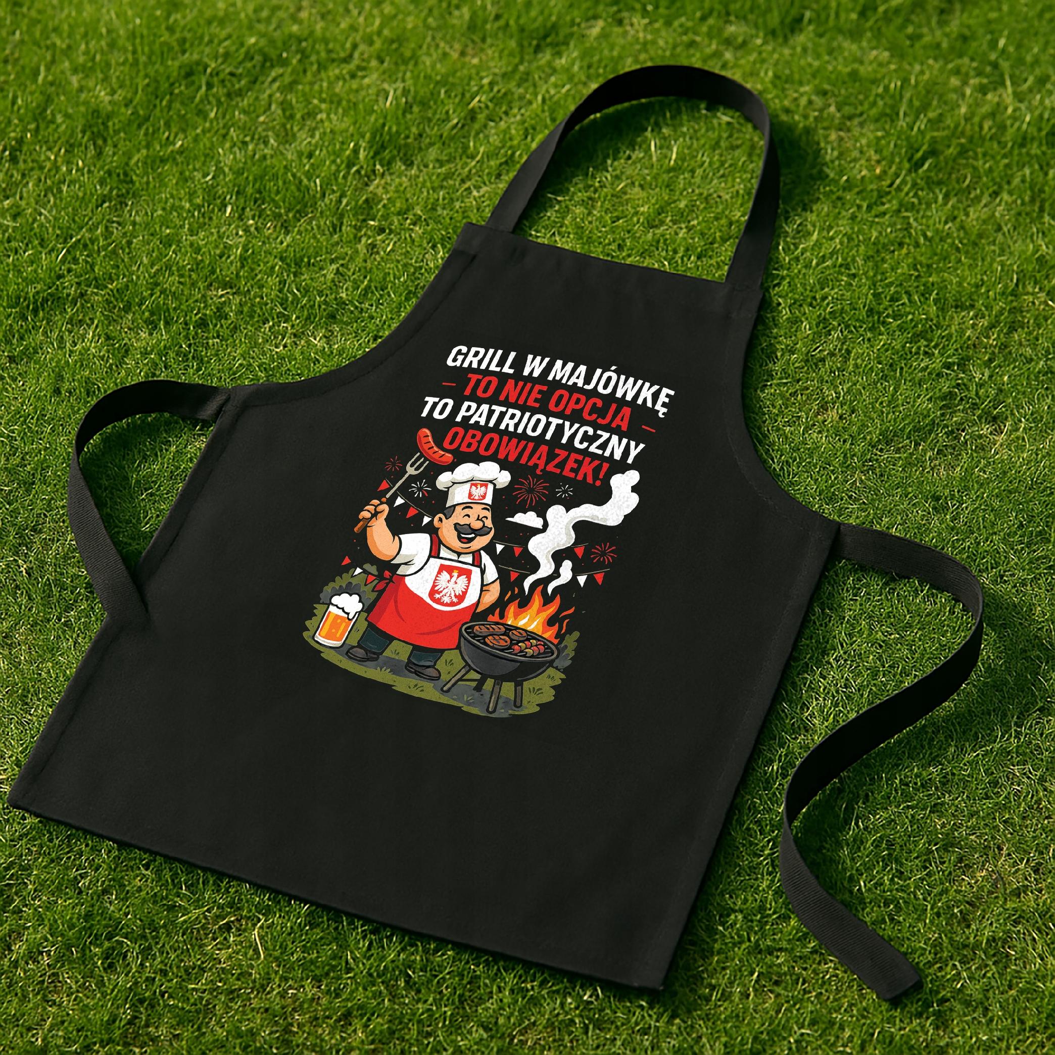 ✨ Bawełniany czarny fartuch kuchenny z nadrukiem dla grillomaniaka – Idealny prezent dla mistrza grilla, który podchodzi do rusztu z humorem i klasą (albo przynajmniej z kiełbasą)! ✨