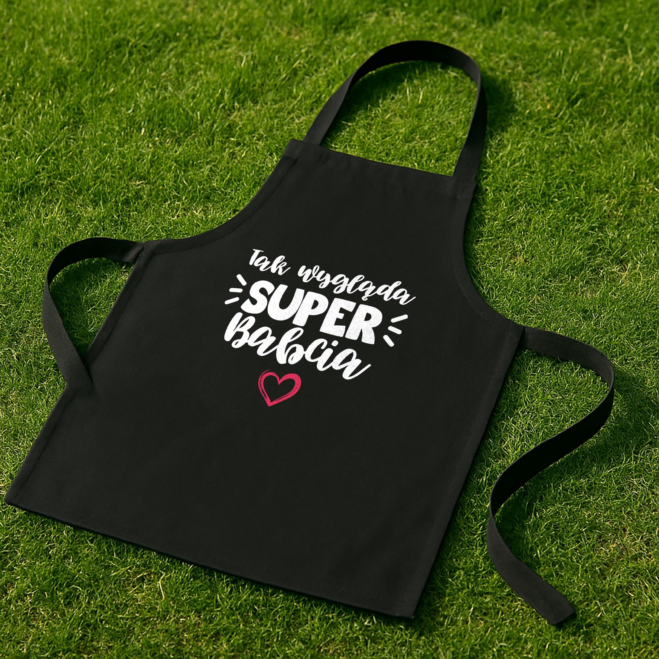 ✨ Bawełniany fartuch Czarny kuchenny z nadrukiem z okazji Dnia Babci – Idealny prezent dla kochanej Babci, która rządzi w kuchni! ✨