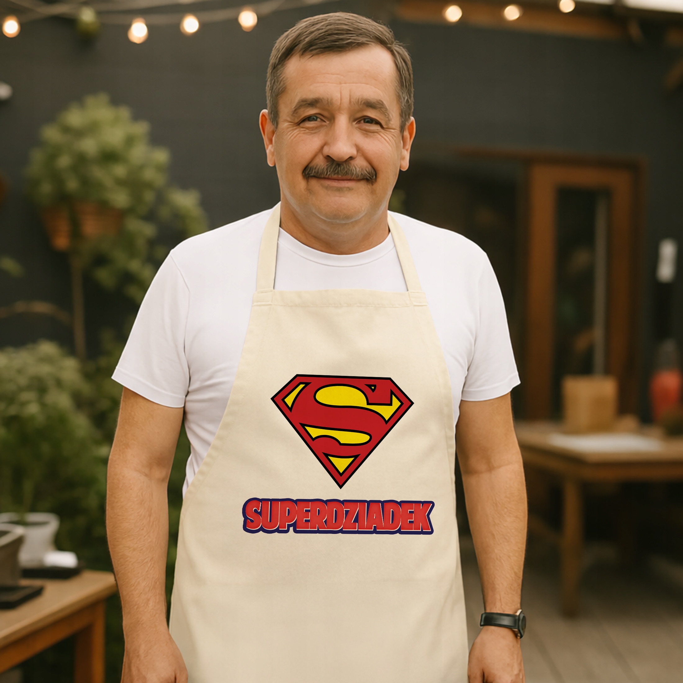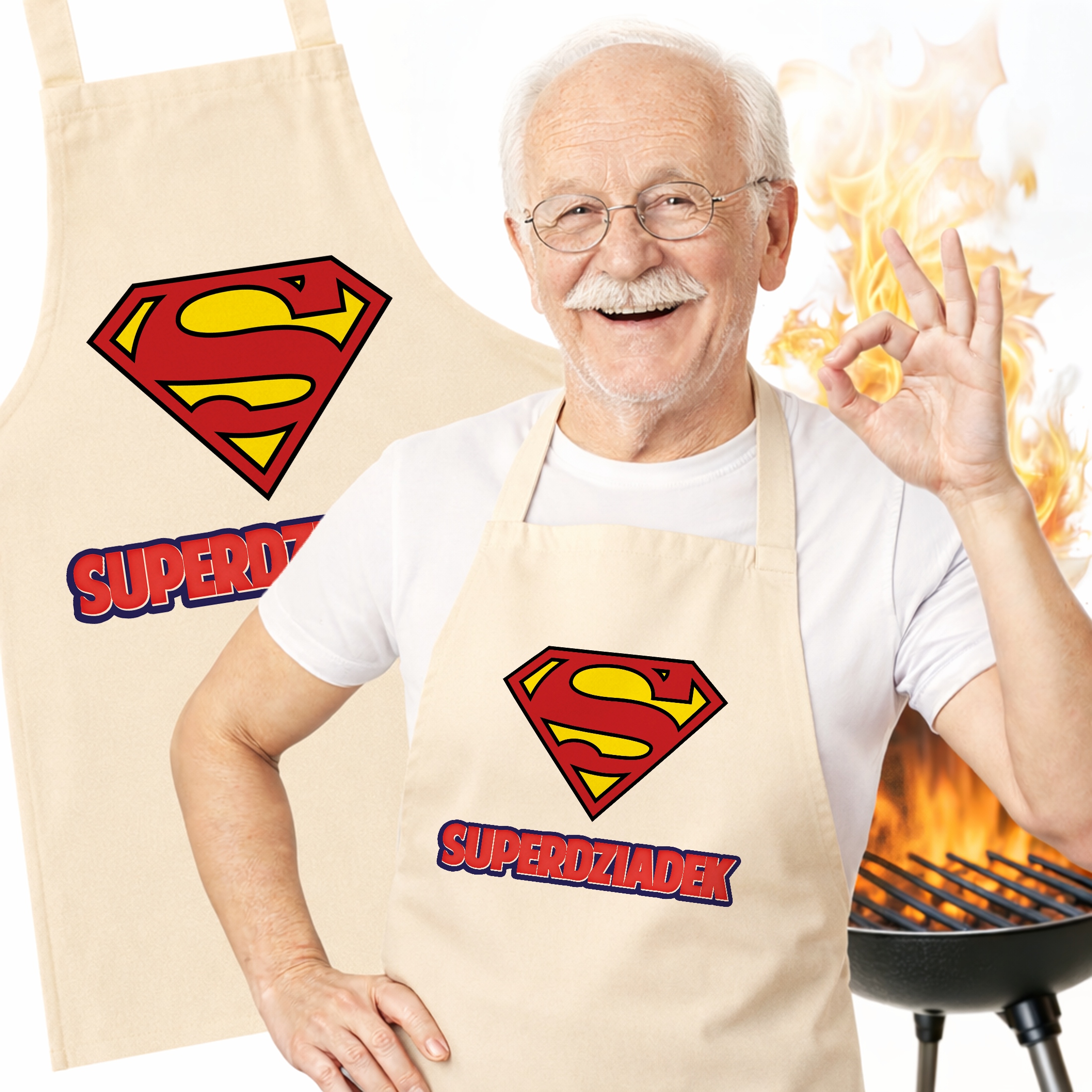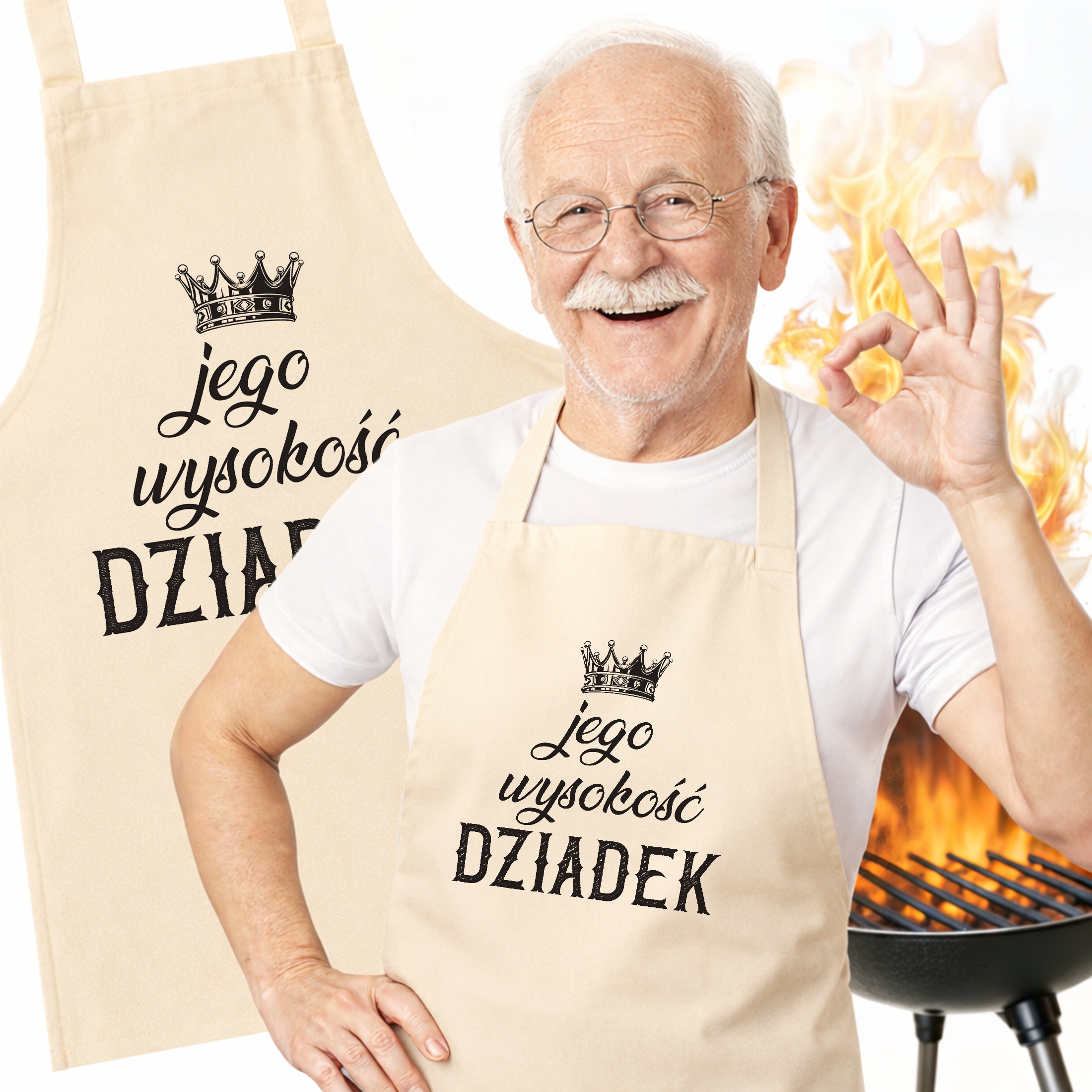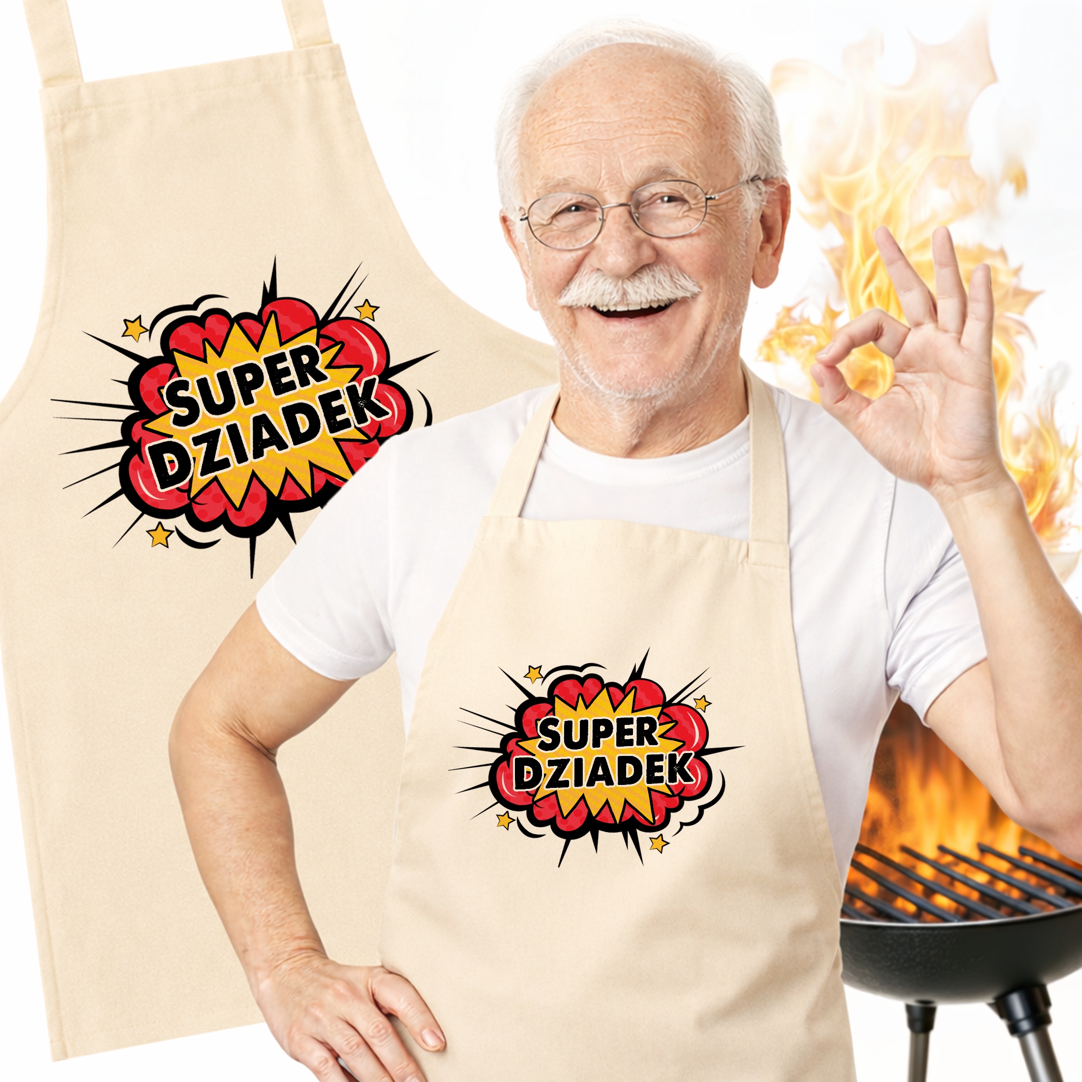 ✨ Bawełniany fartuch ecru kuchenny z nadrukiem z okazji Dnia Dziadka – Idealny prezent dla kochanego Dziadka, która rządzi w kuchni! ✨