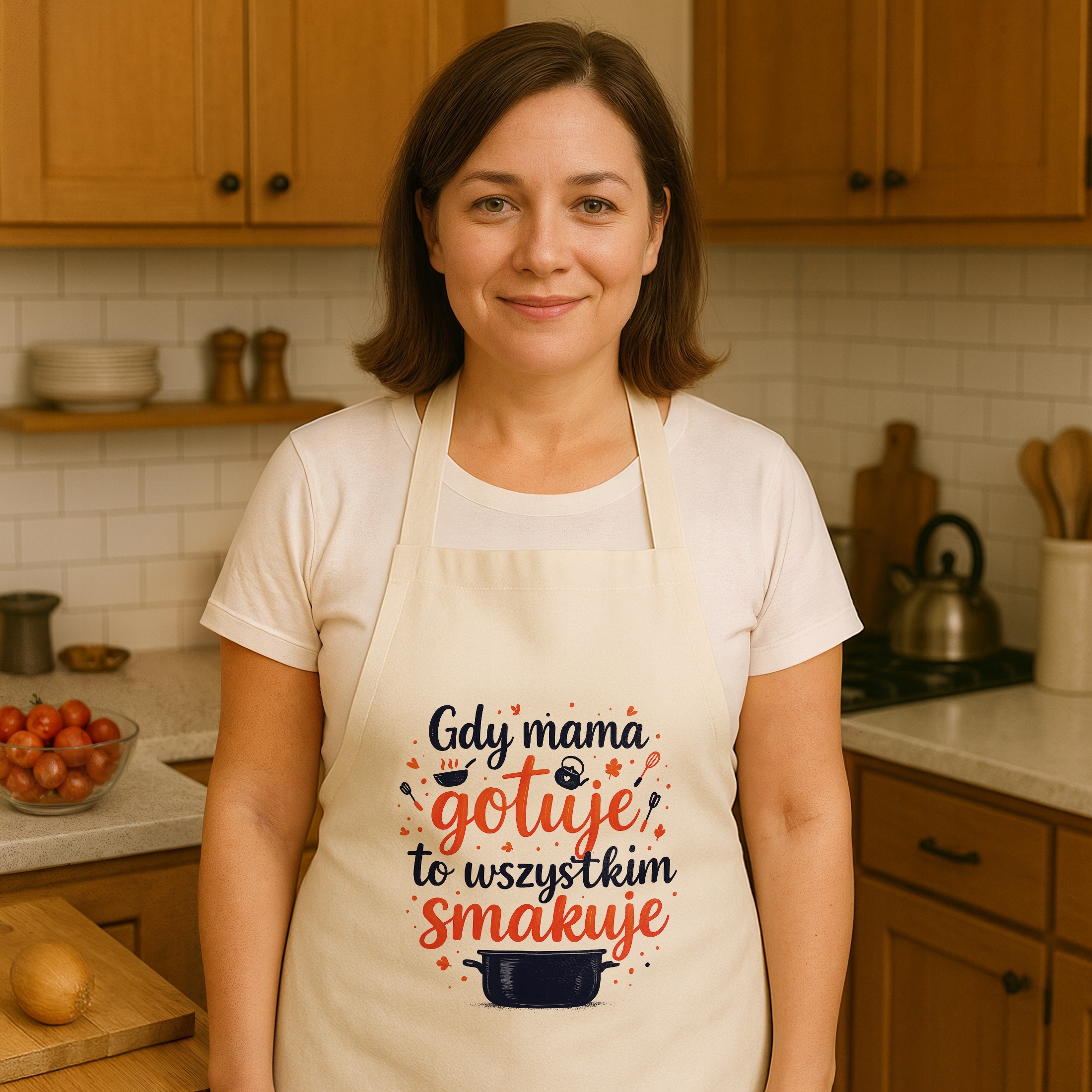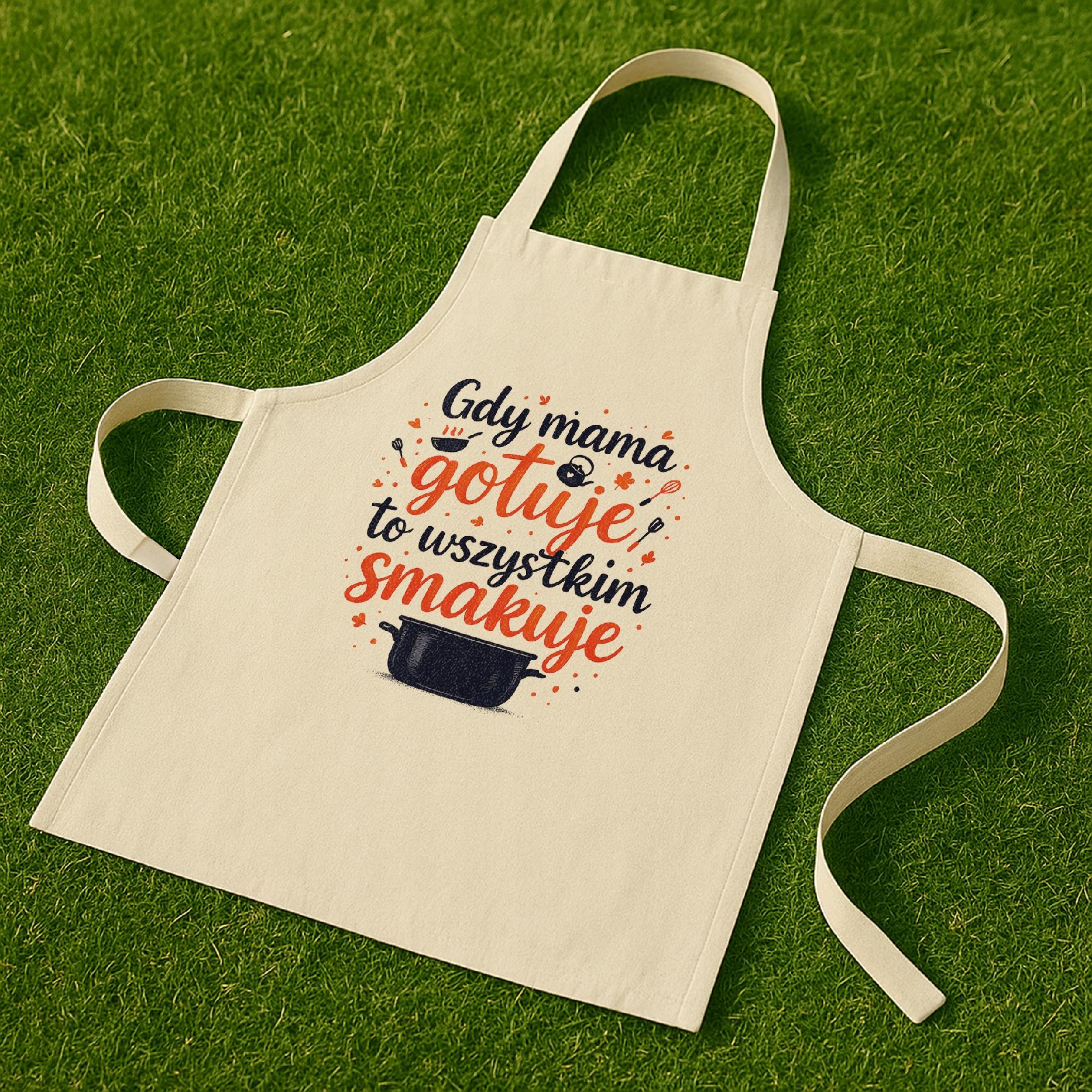 ✨ Bawełniany fartuch kuchenny ecru z nadrukiem z okazji Dnia Matki – Idealny prezent dla szefowej domowej kuchni, która gotuje z pasją i sercem! ✨