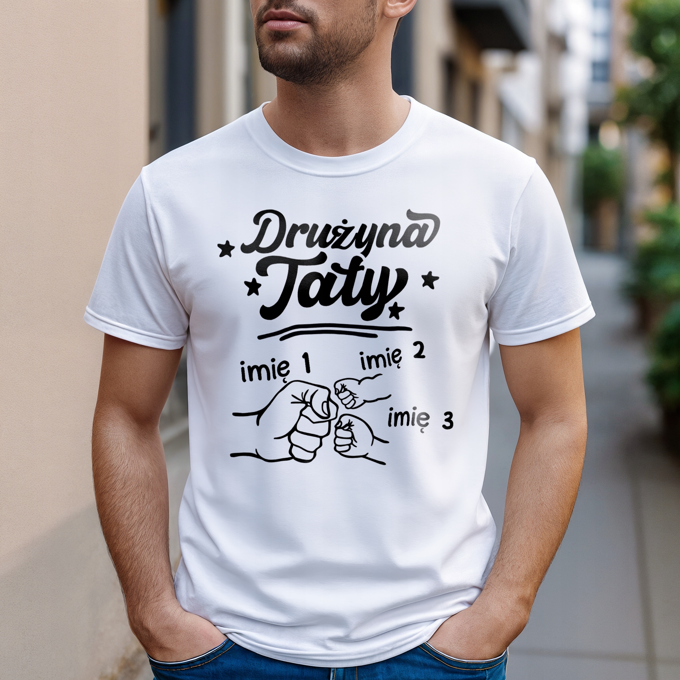 ✨ Personalizowana koszulka biała męska dla taty z okazji Dnia Ojca z imionami – idealny prezent dla tatów z poczuciem humoru. ✨