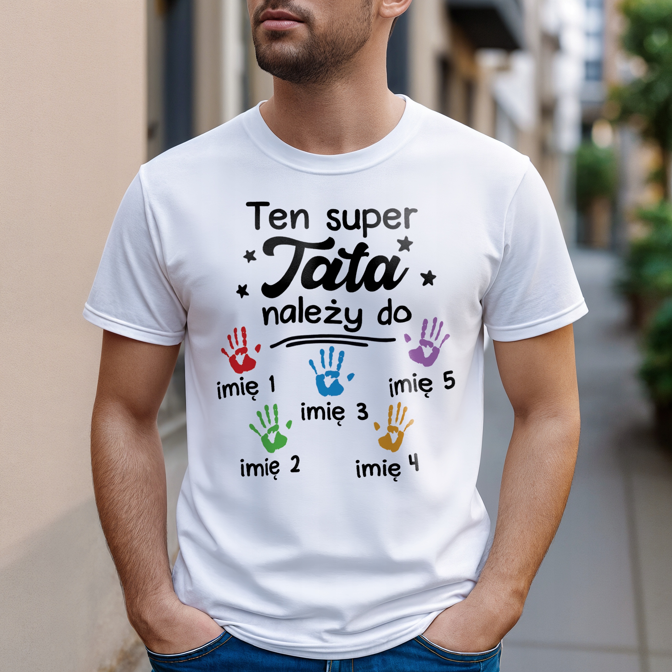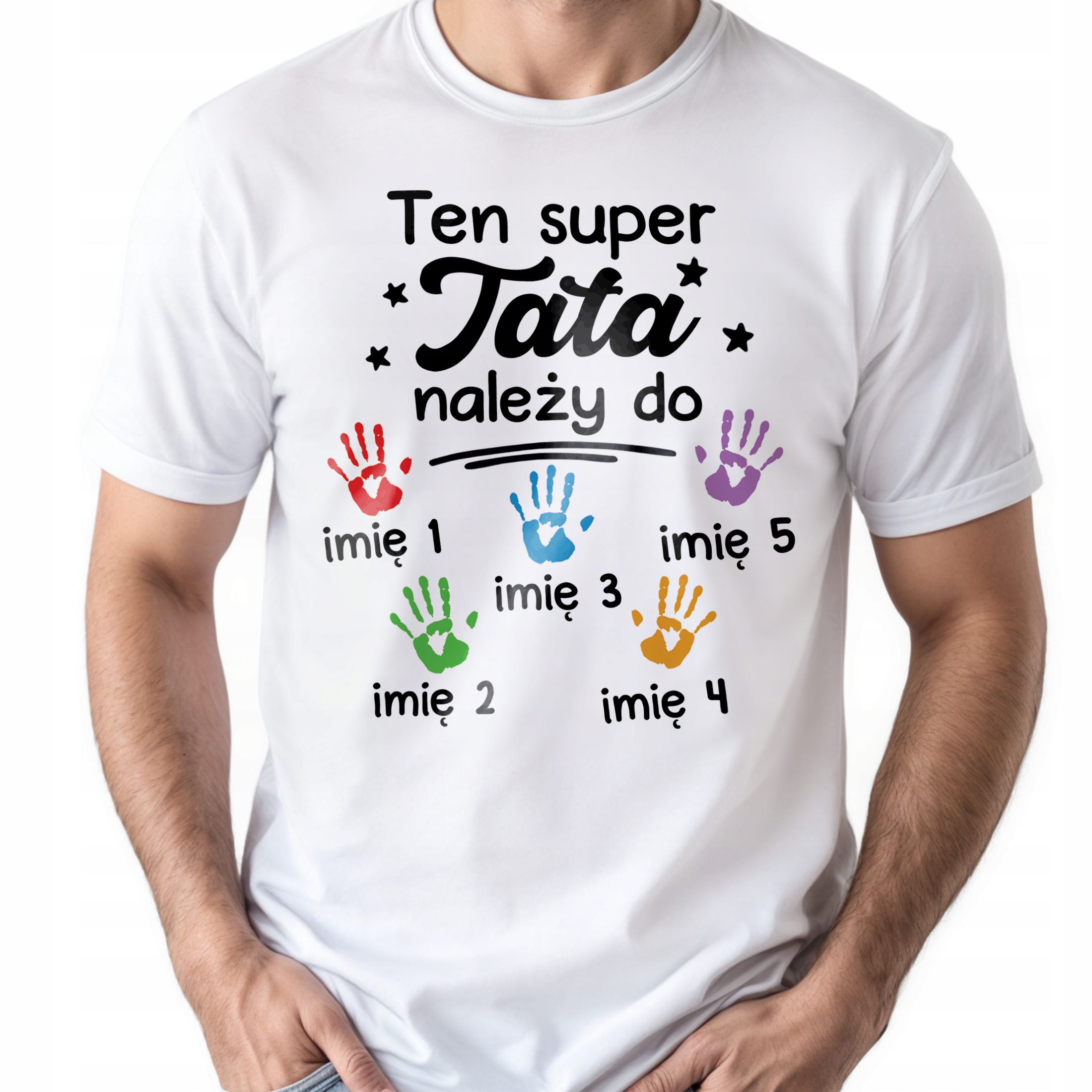 ✨ Personalizowana koszulka biała męska dla taty z okazji Dnia Ojca z imionami – idealny prezent dla tatów z poczuciem humoru. ✨