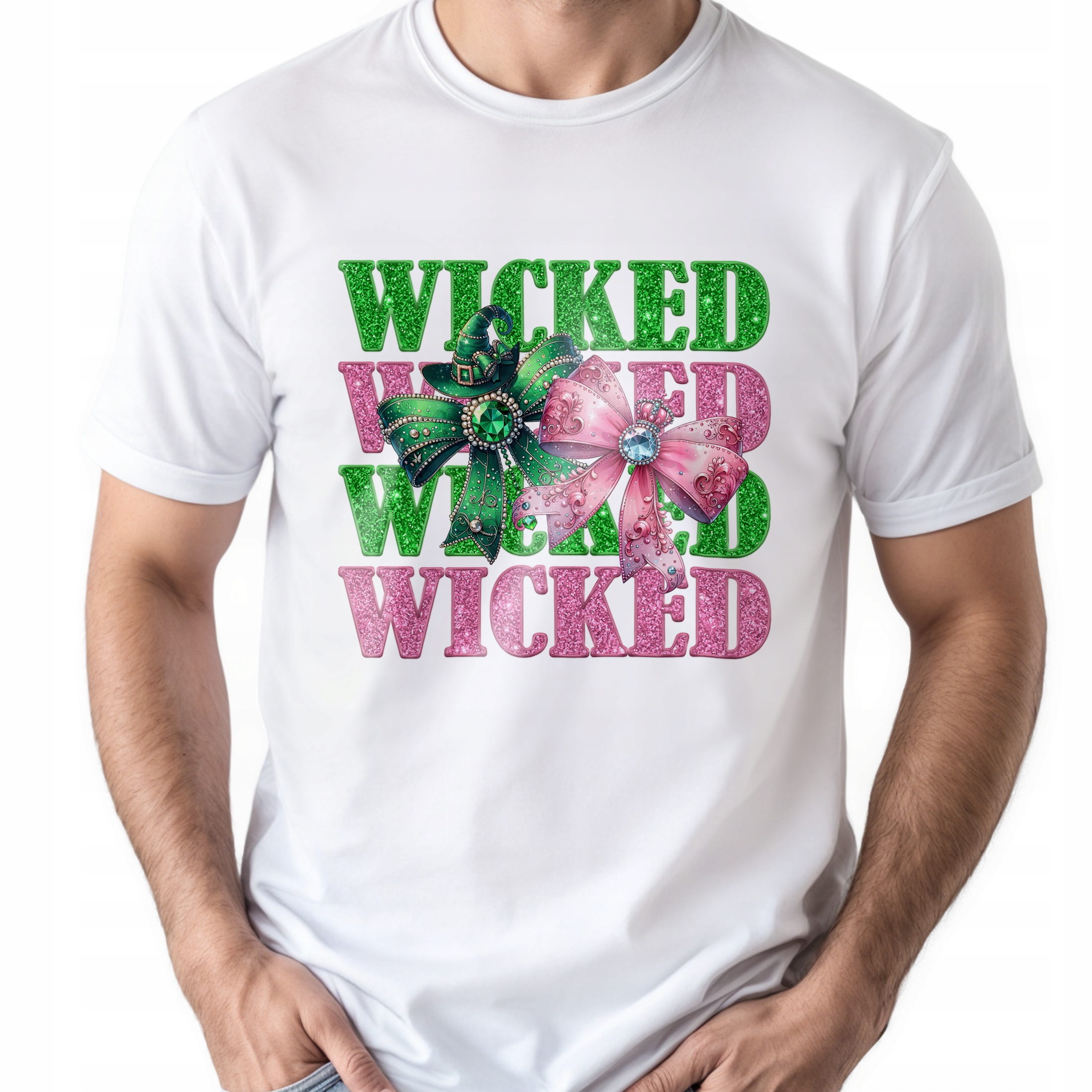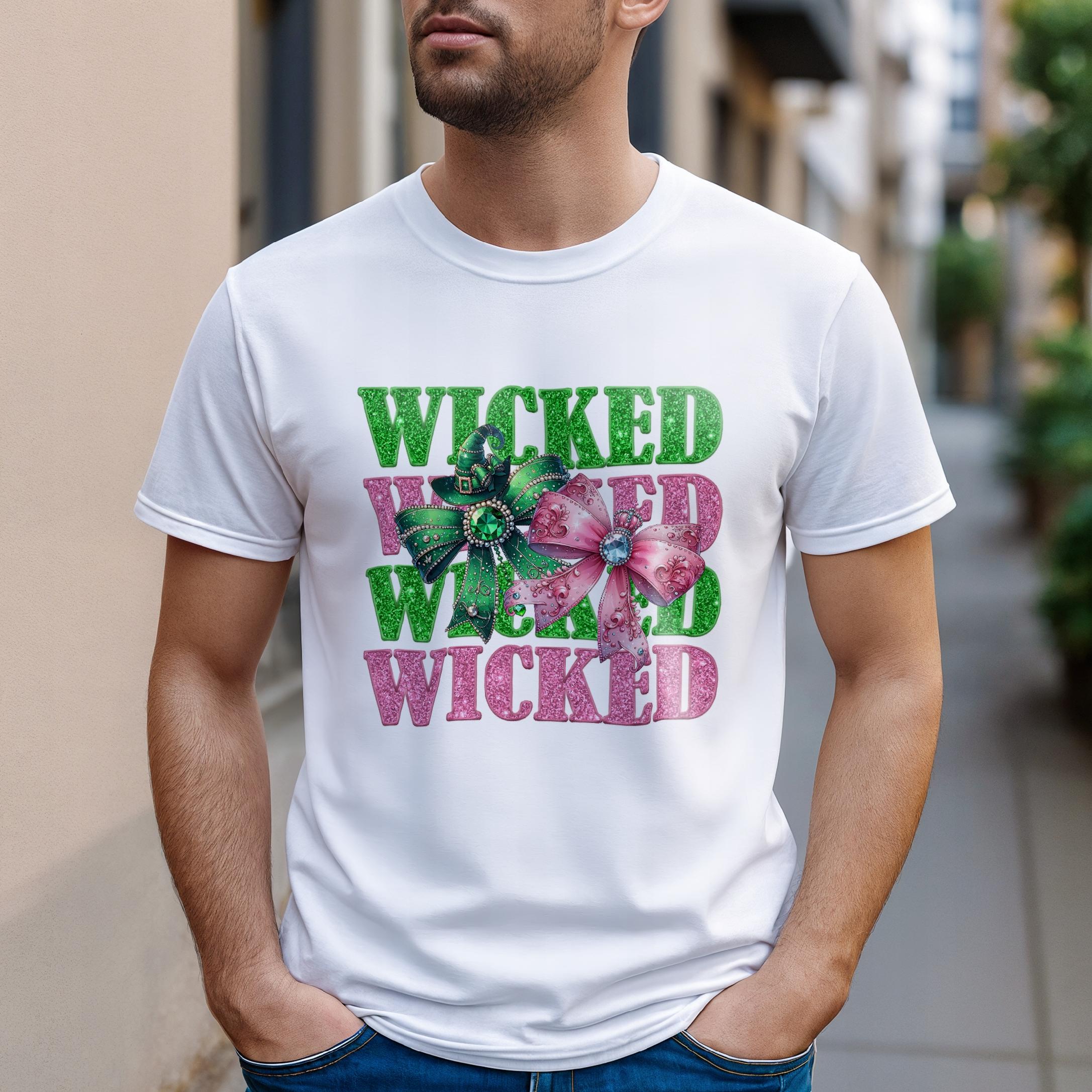 ✨ Biała koszulka męska z motywem musicalu Wicked – idealny prezent dla fana filmu i postaci z nim związanych! ✨
