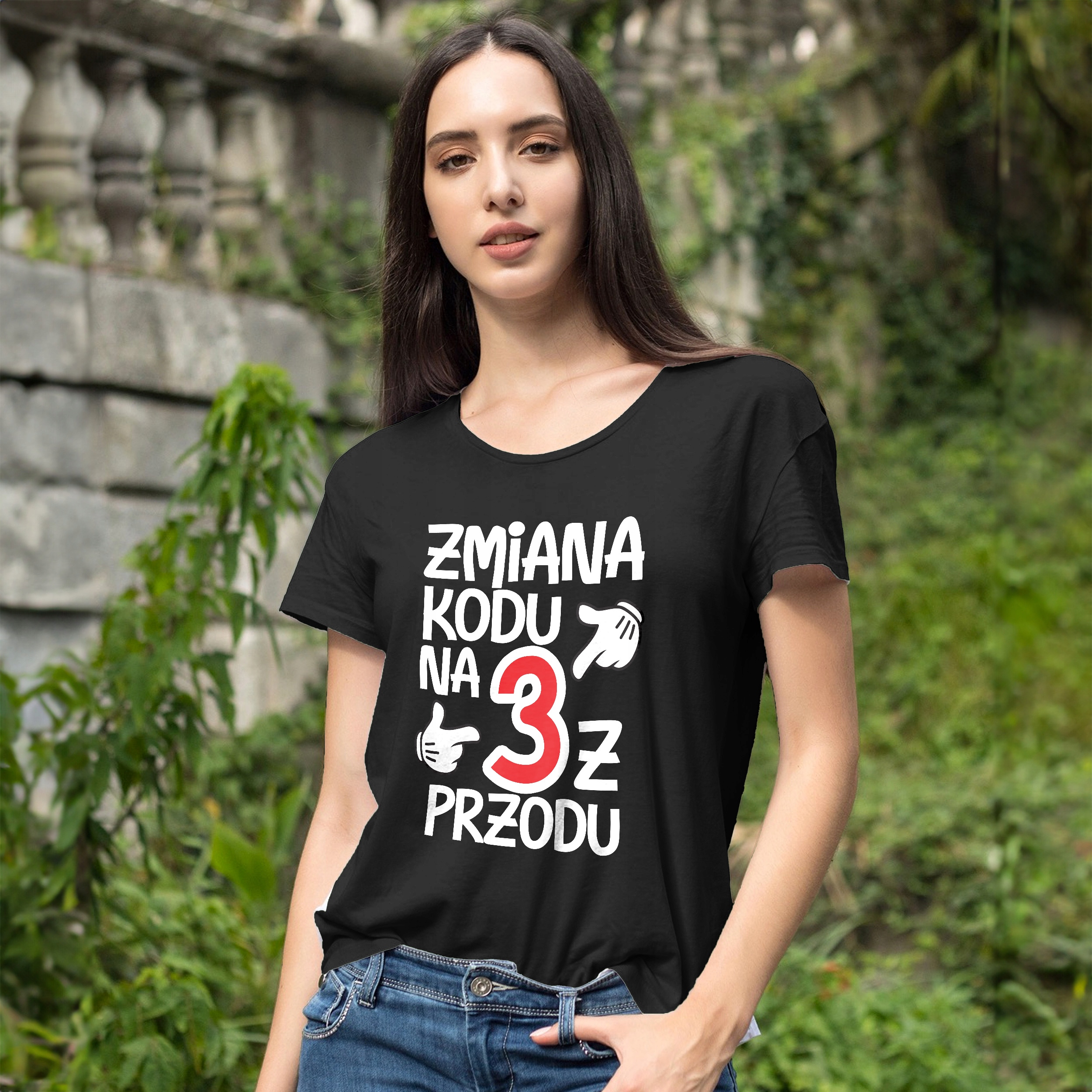 ✨ Koszulka damska czarna na urodziny z napisem ,,Zmiana Kodu Na 3 Z Przodu” na 30 urodziny ✨