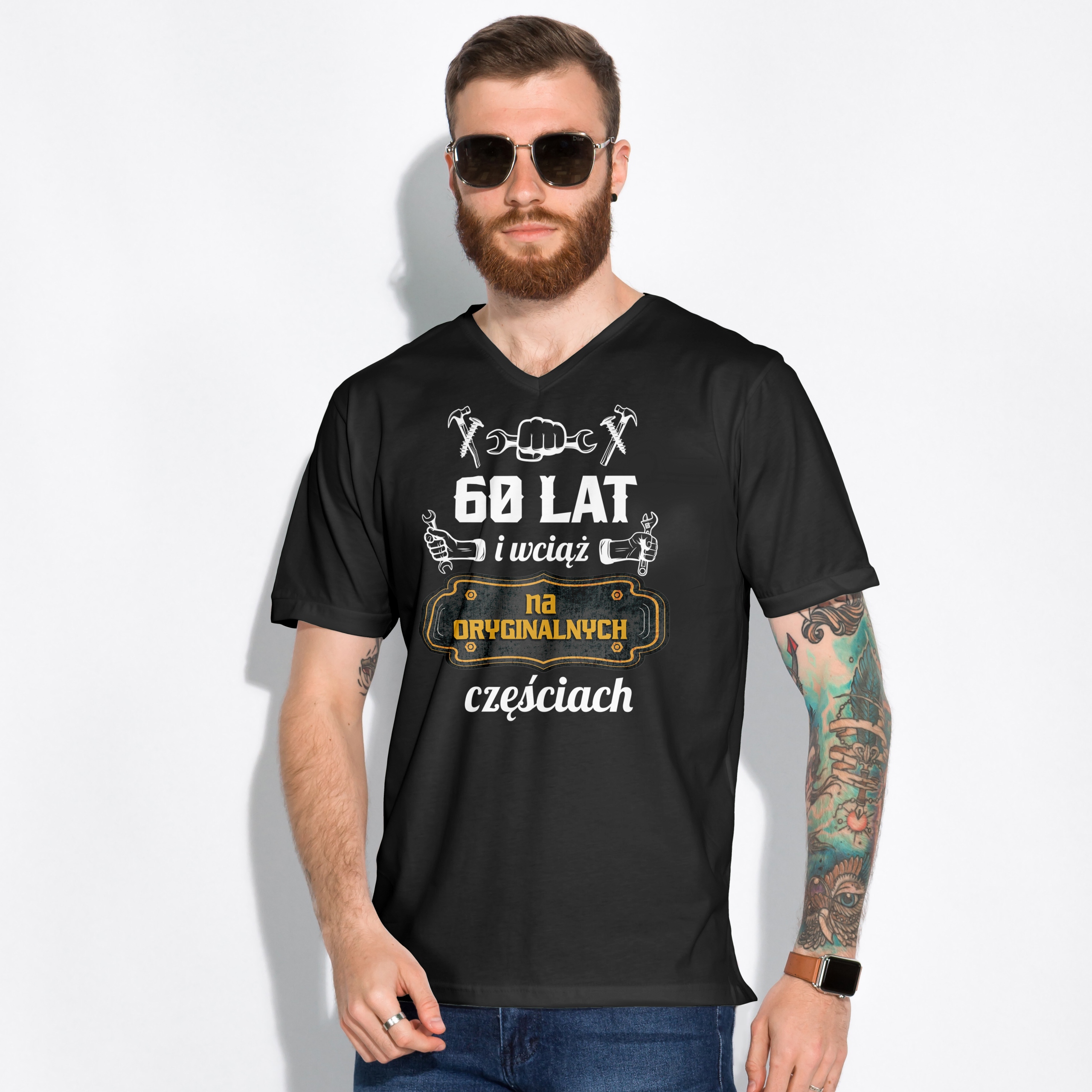 ✨ Koszulka męska czarna z napisem ,, I wciąż na oryginalnych częściach” na urodziny! ✨