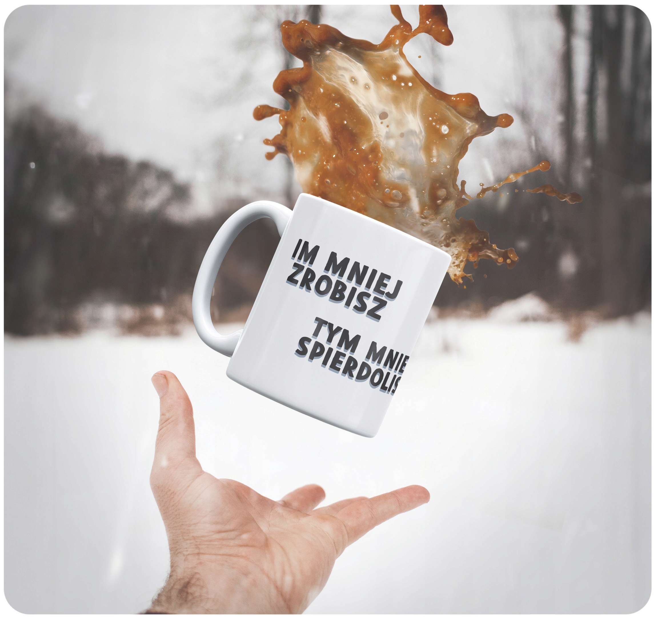 ✨ Kubek ceramiczny z napisem ,,Im mniej zrobisz tym mniej spier***isz”