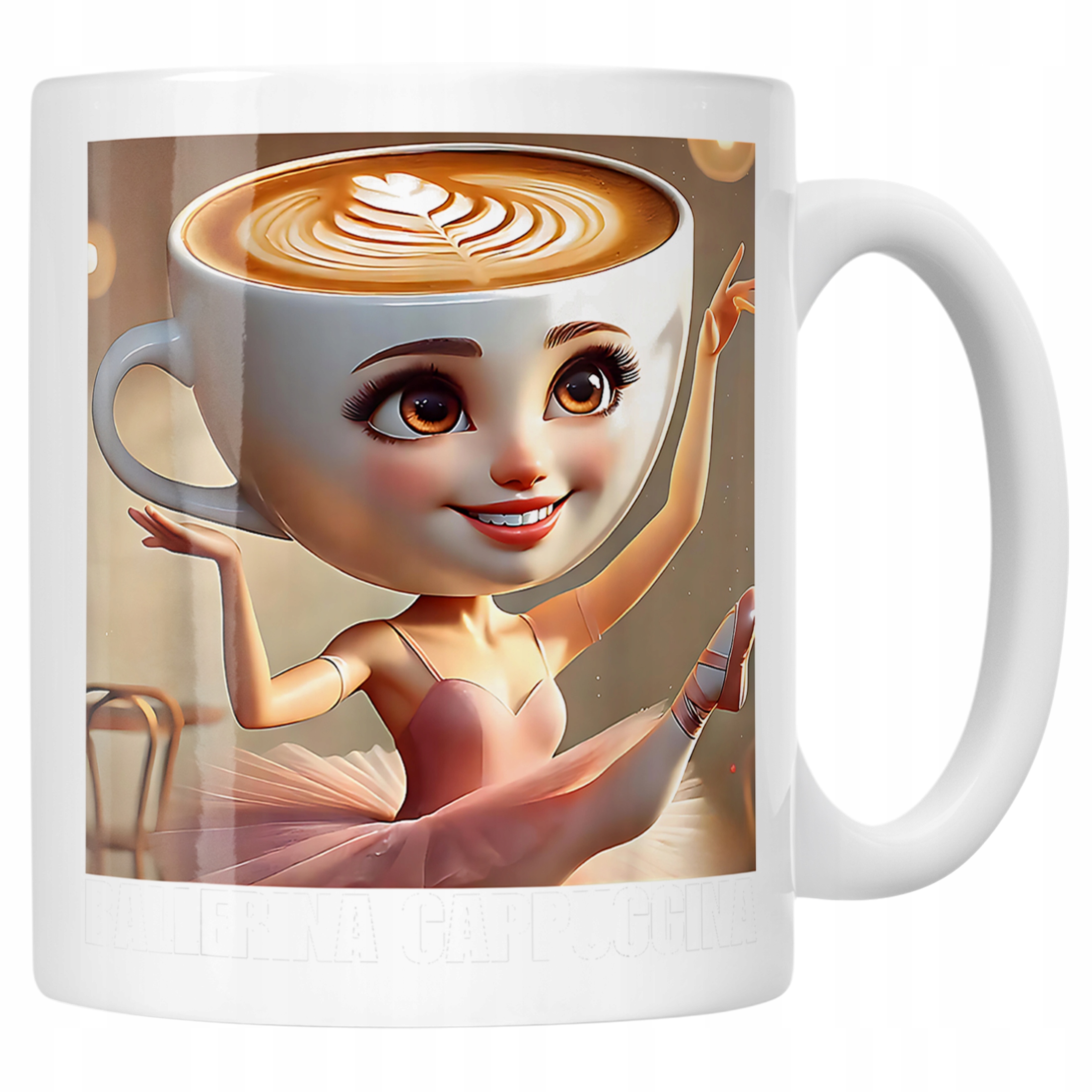 - Pełna powierzchnia: Nadruk rozciąga się od górnej krawędzi kubka aż po jego podstawę, co tworzy wyjątkowy efekt wizualny.