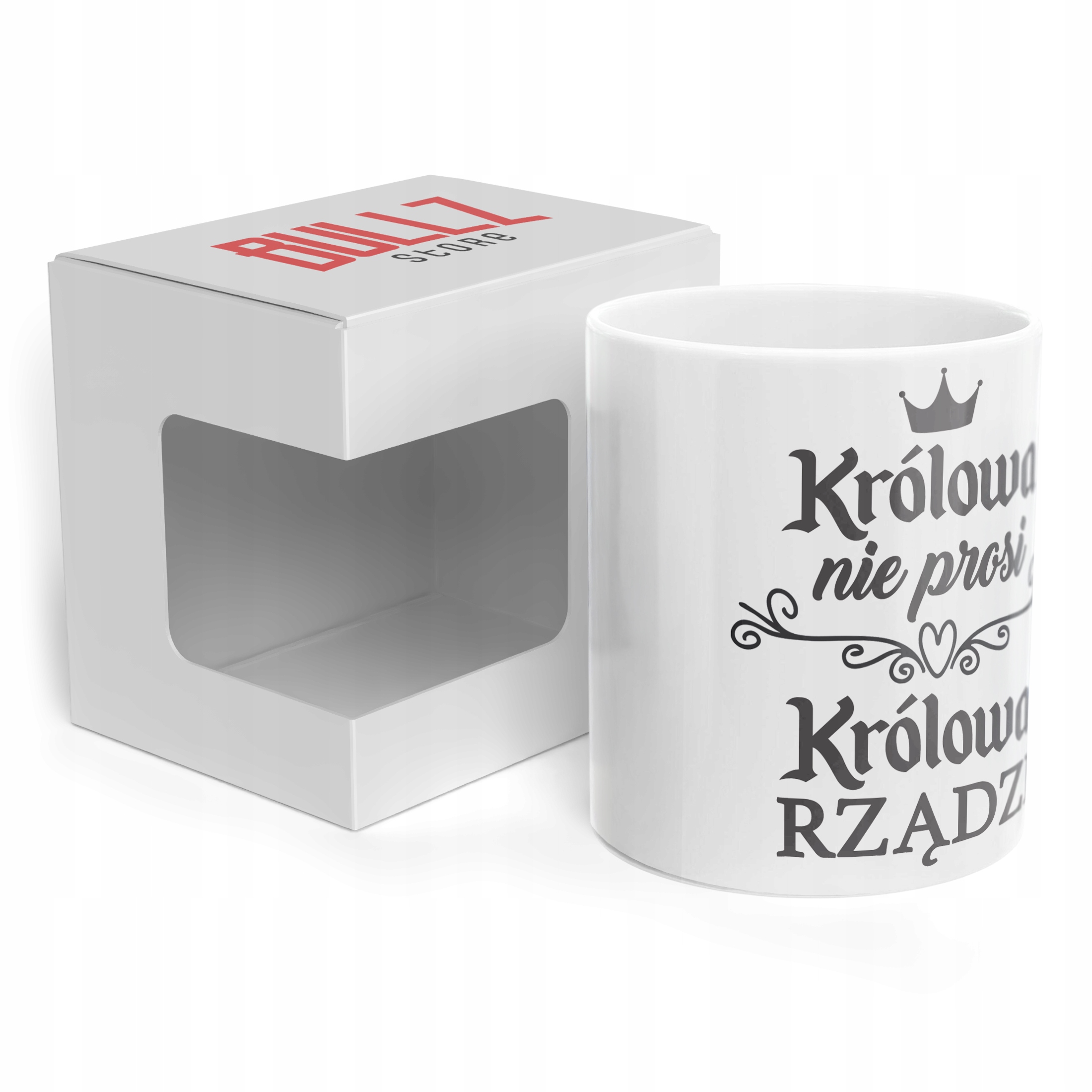 ✨ Kubek ceramiczny 330 ml na Dzień Kobiet z inspirującym napisem ,, Królowa nie prosi, Królowa rządzi'' – Doskonały Prezent dla każdej Kobiety, który umili każdy dzień ✨