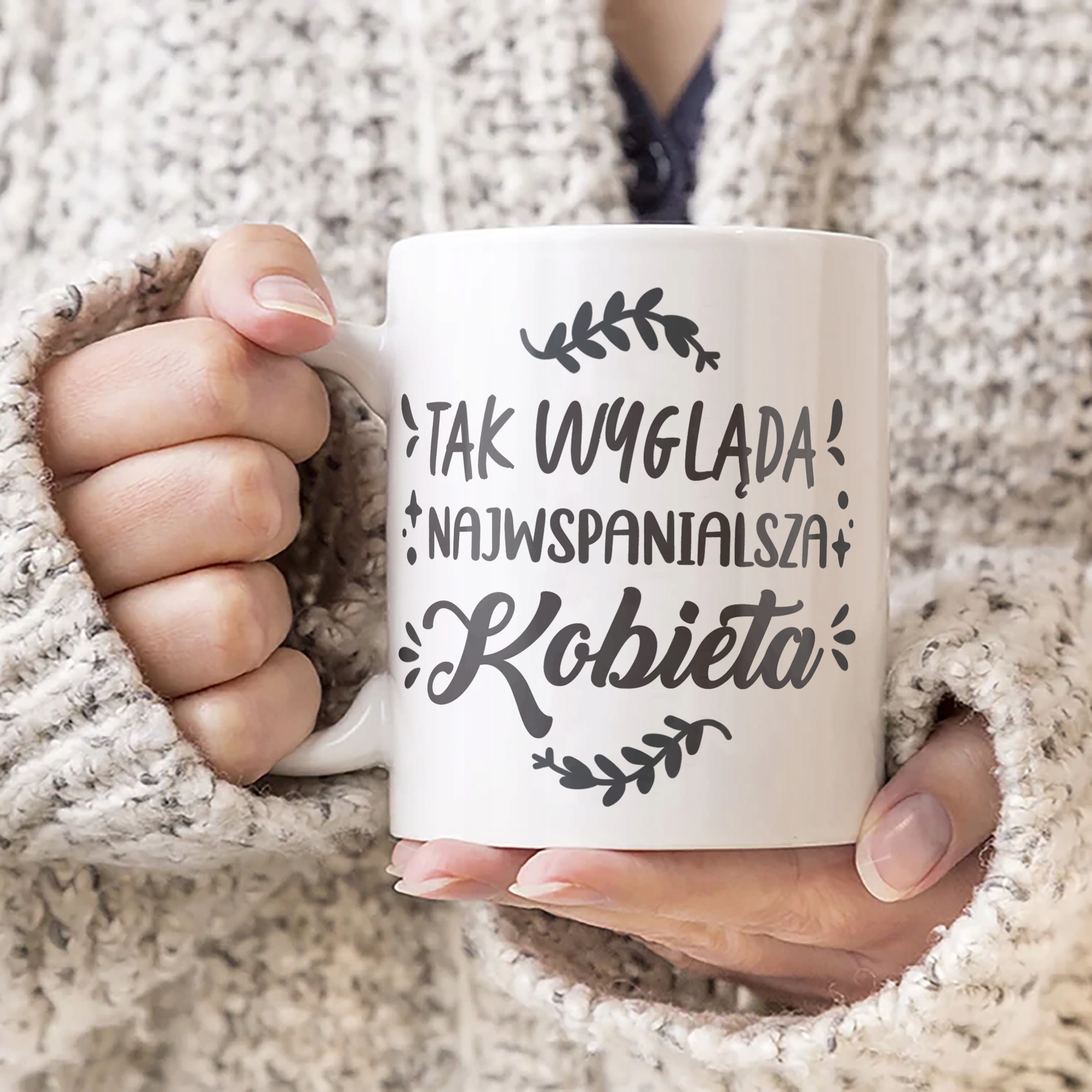 ✨ Kubek ceramiczny 330 ml na Dzień Kobiet z inspirującym napisem ,, Tak wygląda najwspanialsza kobieta '' – Doskonały Prezent dla każdej Kobiety, który umili każdy dzień ✨