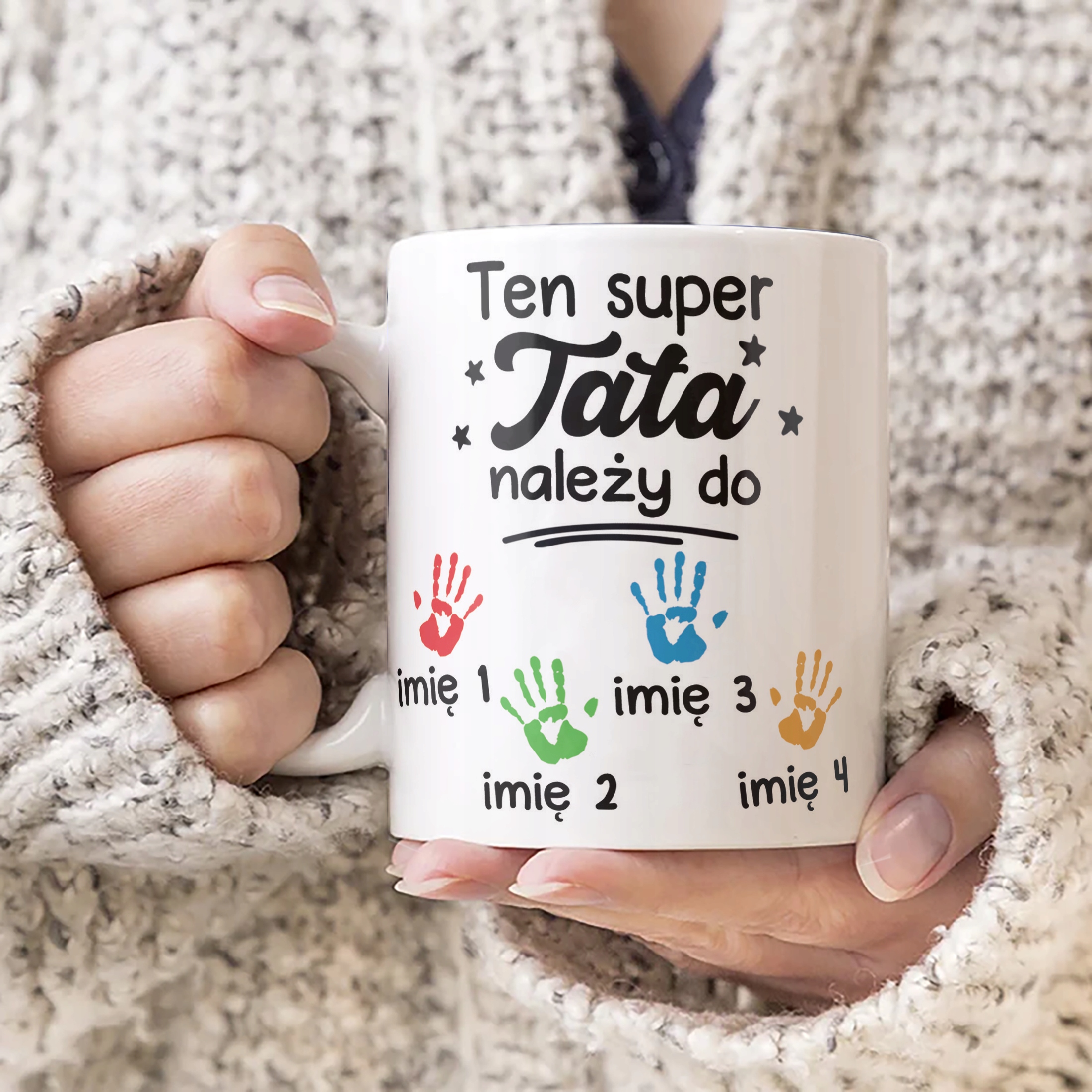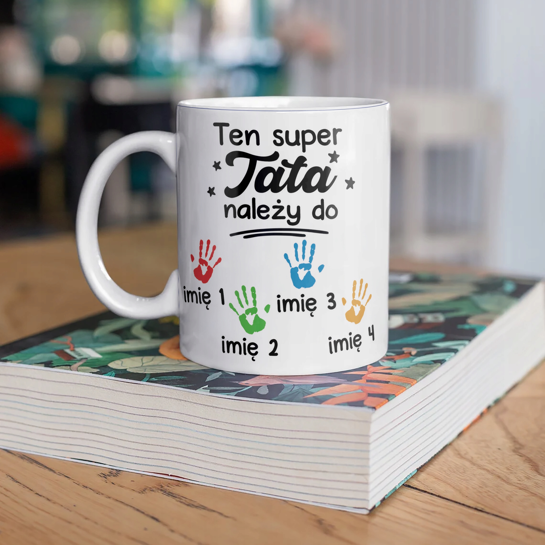 ✨ Personalizowany kubek ceramiczny 330 ml z okazji Dnia Ojca – Prezent z imionami taty i dzieci! ✨