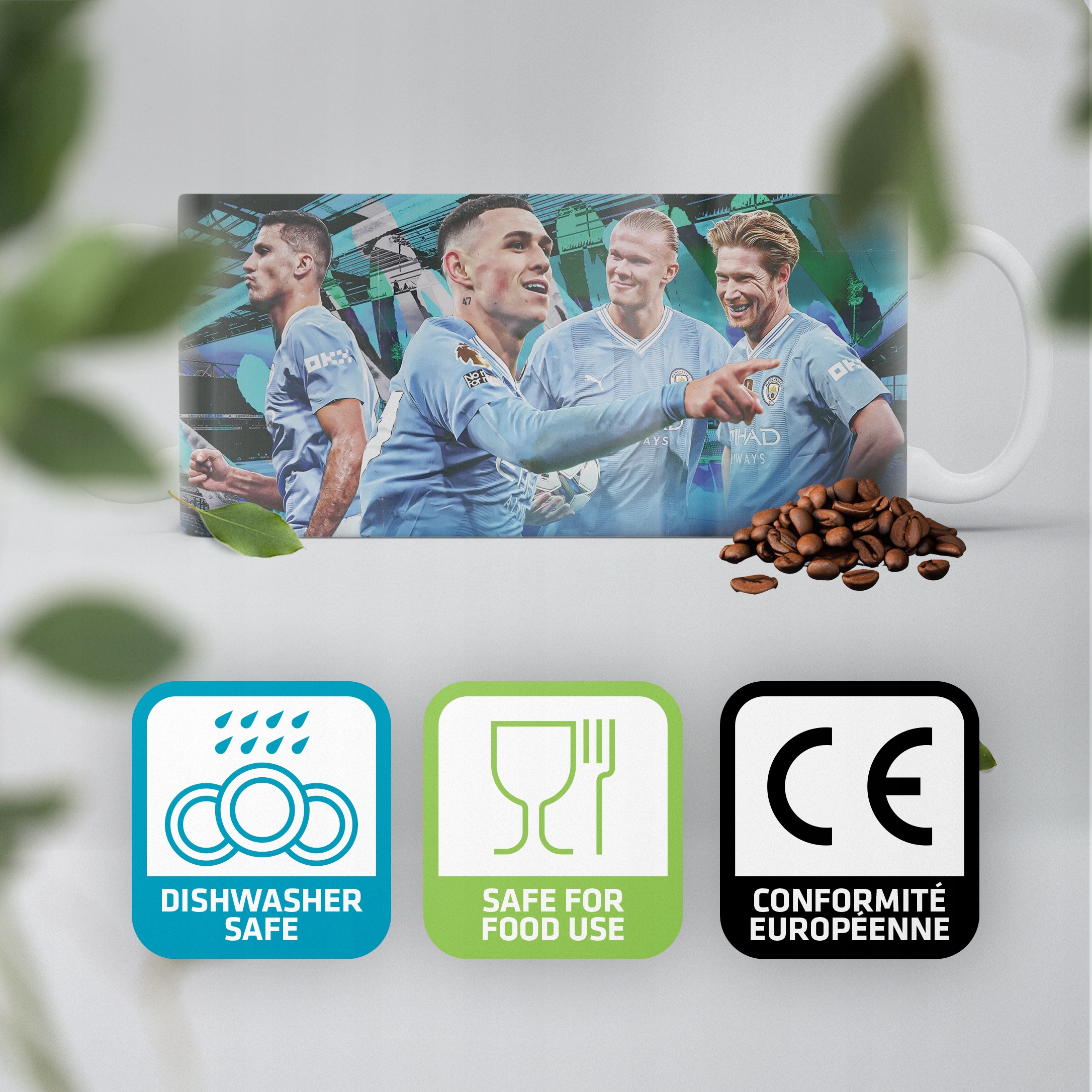 ✨ Kubek piłkarski Foden, Haaland, De Bruyne – trio Manchester City ✨
