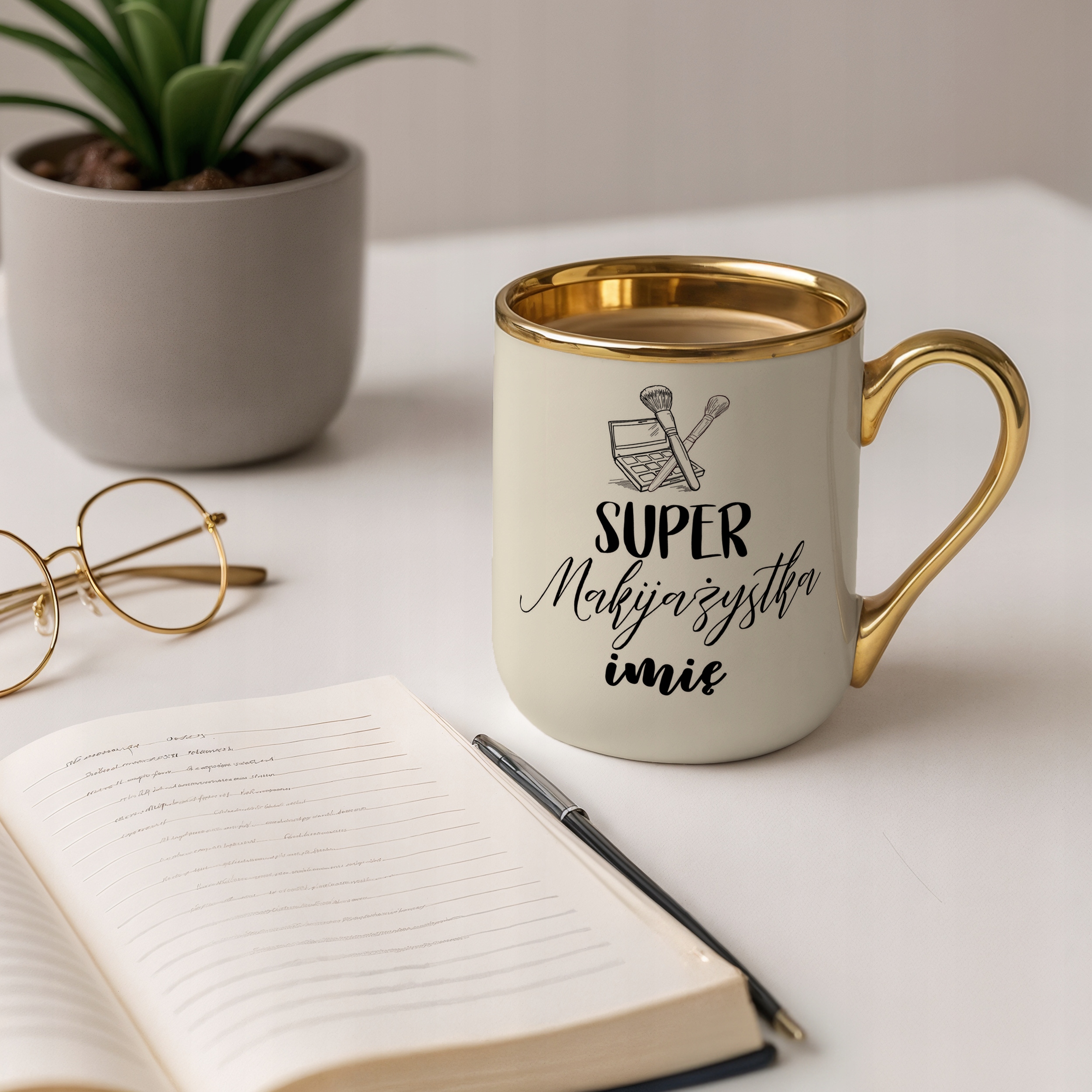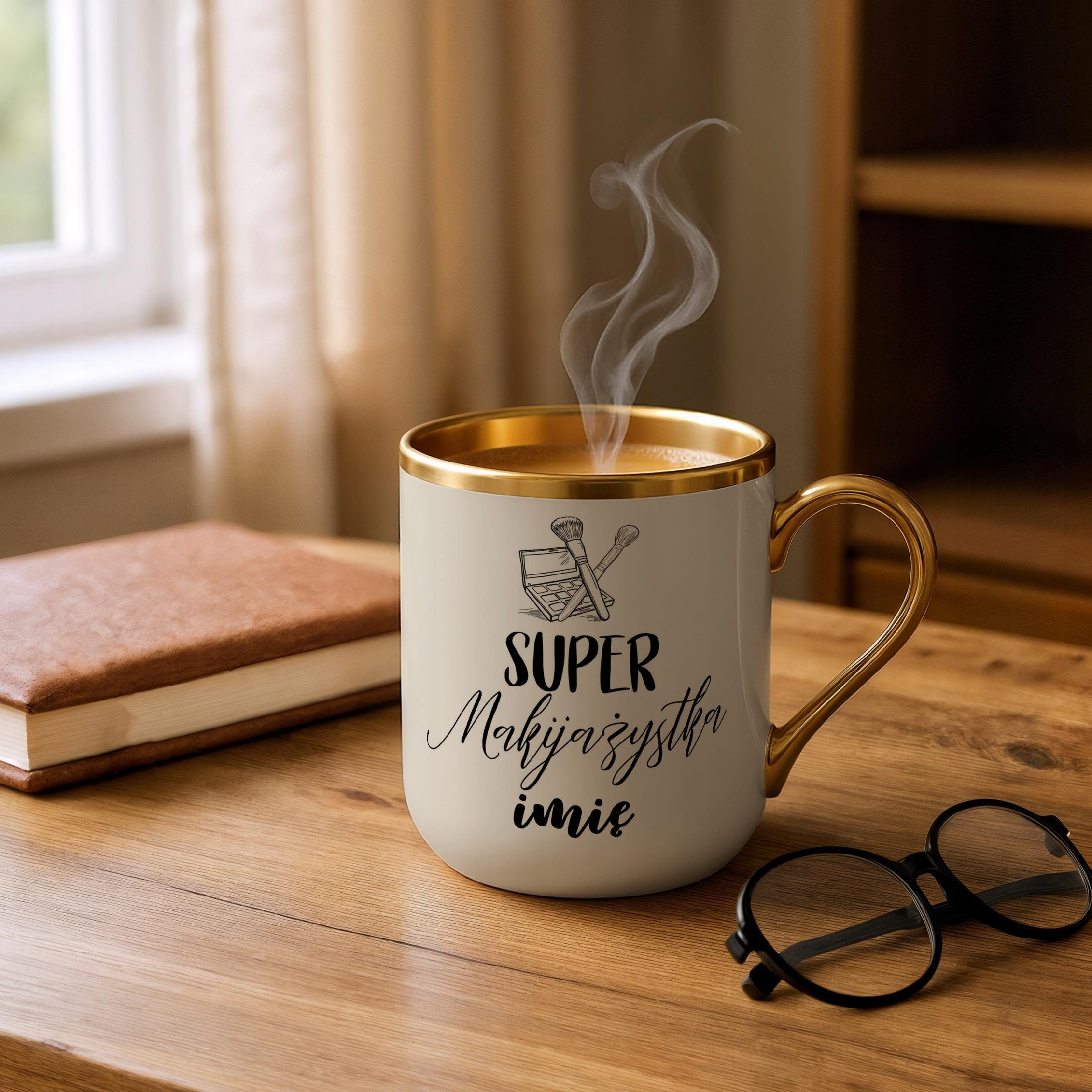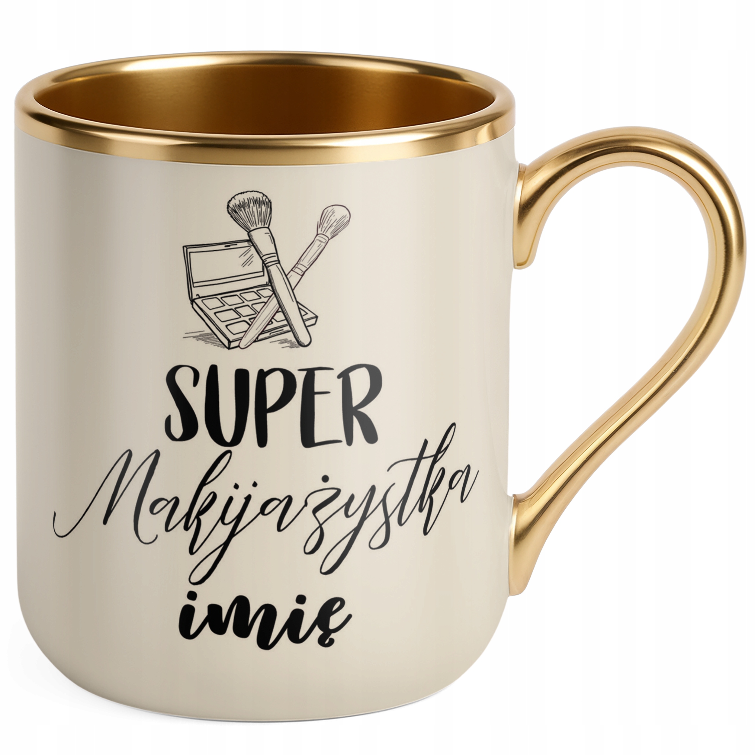 ✨ Personalizowany kubek Premium Złoty Ecru 330 ml dla Super Makijażystka – Idealny prezent dla makijażystki, która potrafi zaczarować pędzlem! ✨