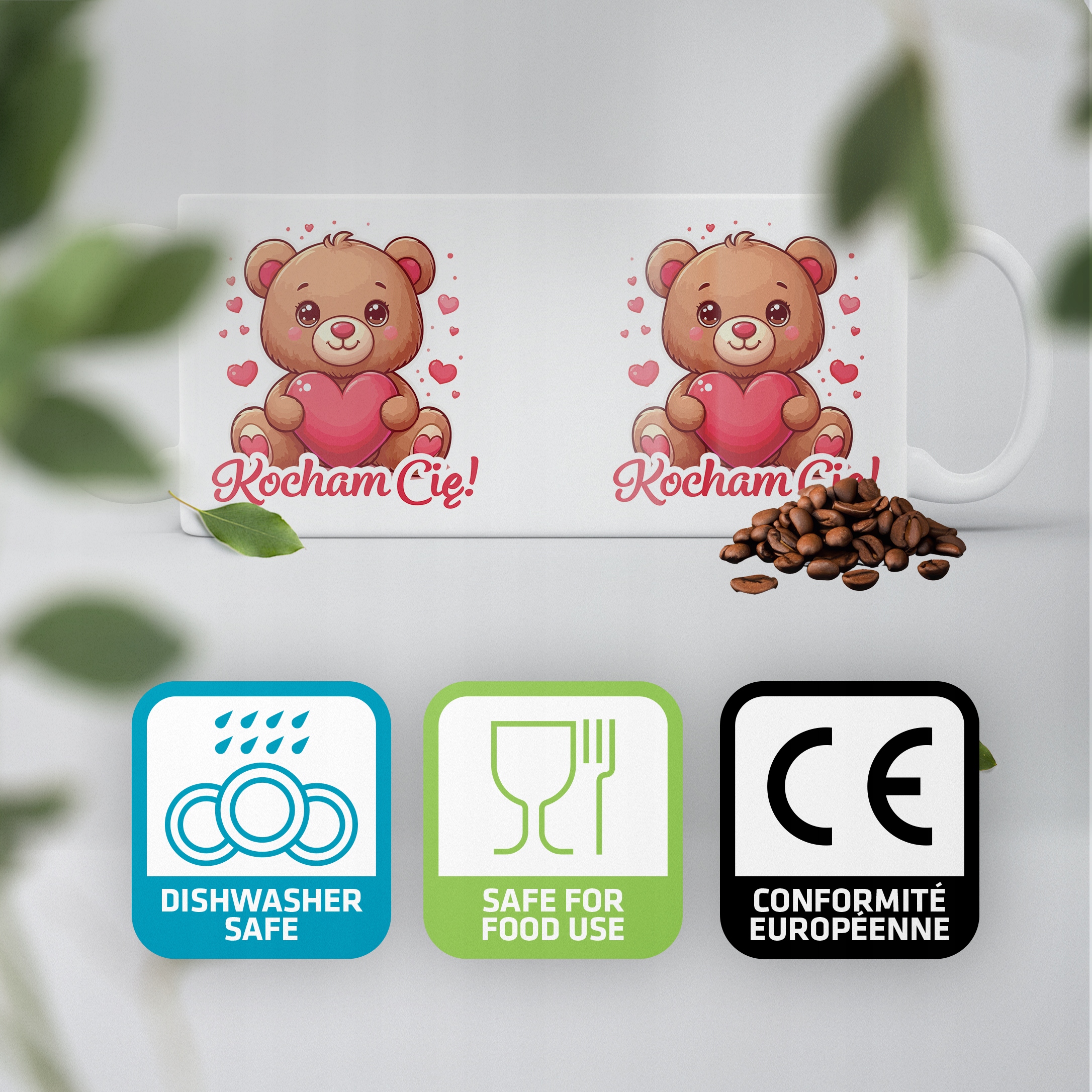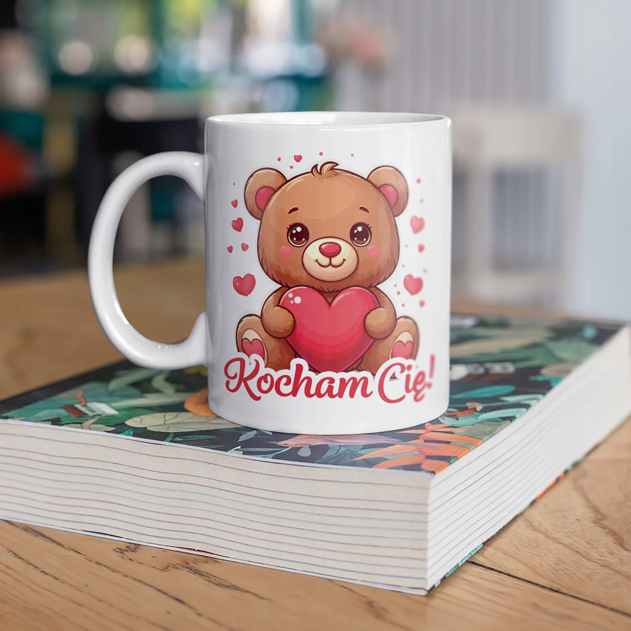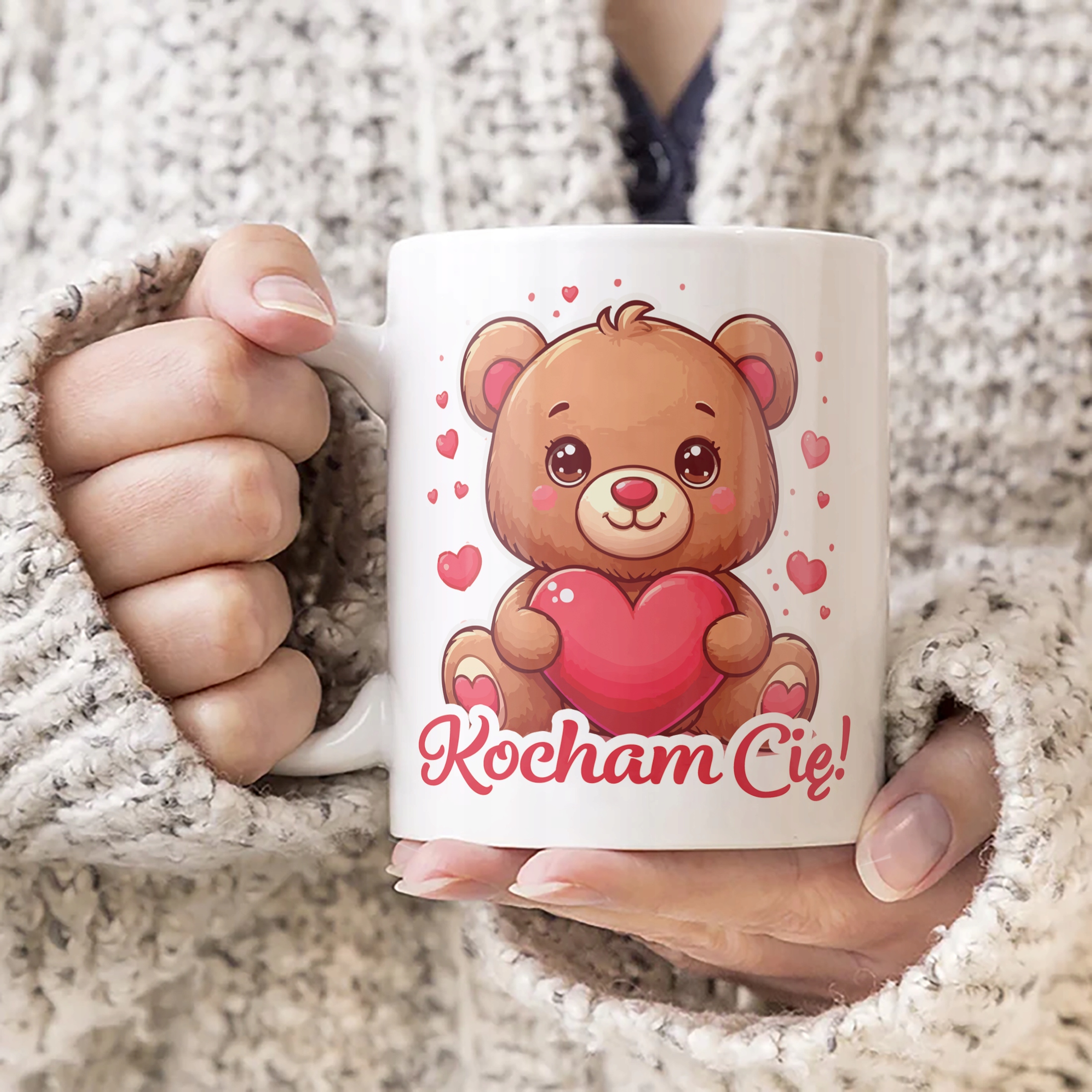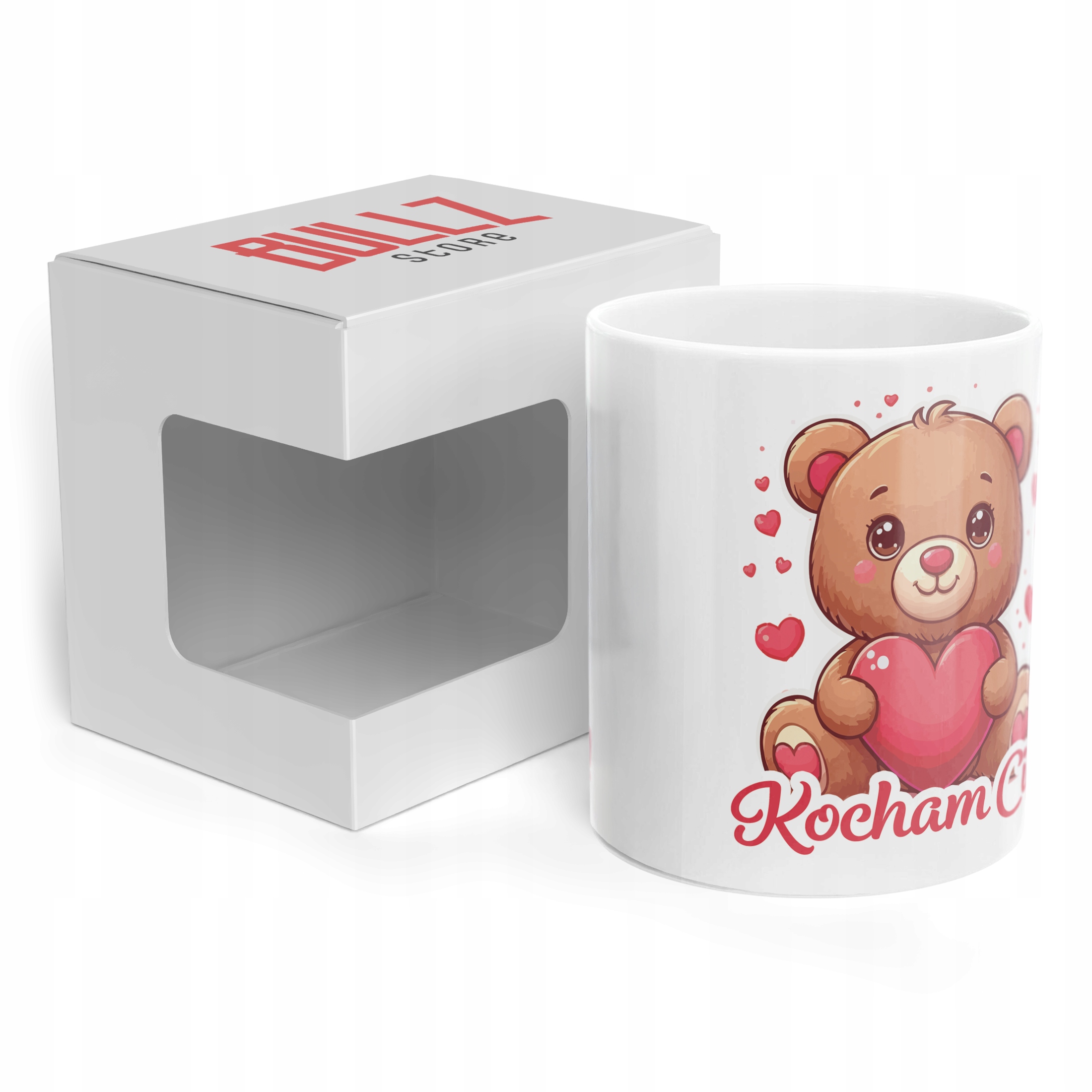 ✨ Kubek ceramiczny 330 ml z okazji Walentynek – Idealny Prezent Dla Twojej Drugiej Połowy z Uroczym Misiem i Napisem ,,Kocham Cię'' ✨
