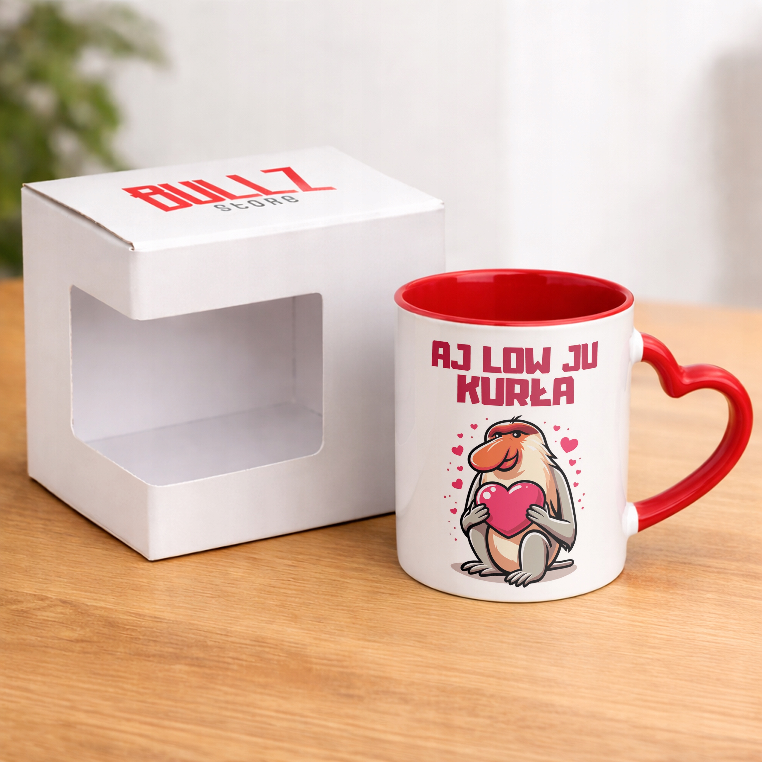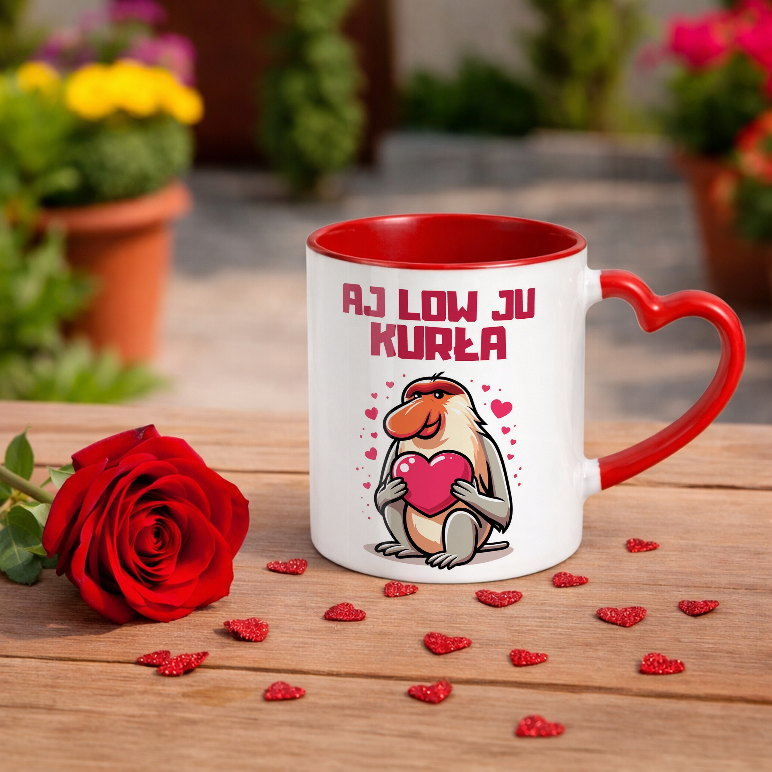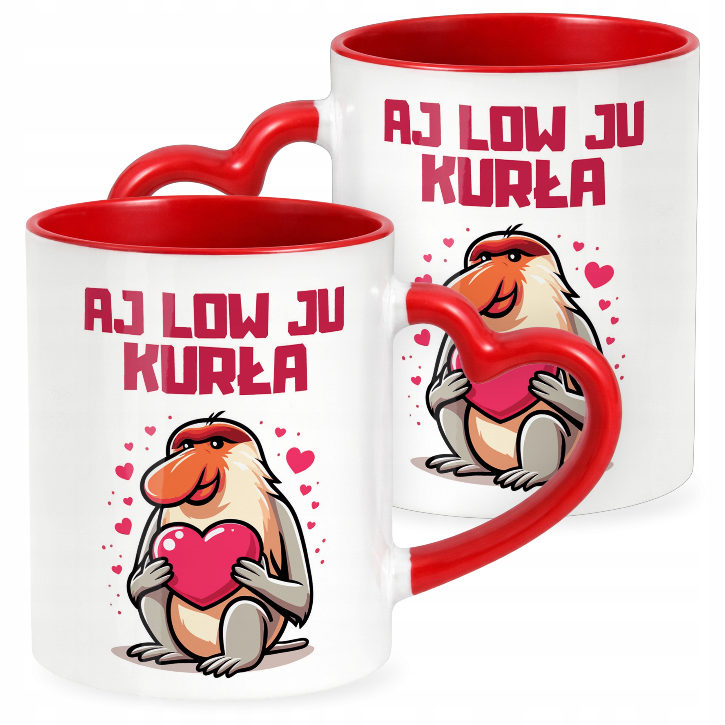 ✨ Walentynkowy kubek z czerwonym wnętrzem i uchwytem w kształcie serca 330 ml z okazji Walentynek – idealny prezent dla ukochanej osoby! ✨