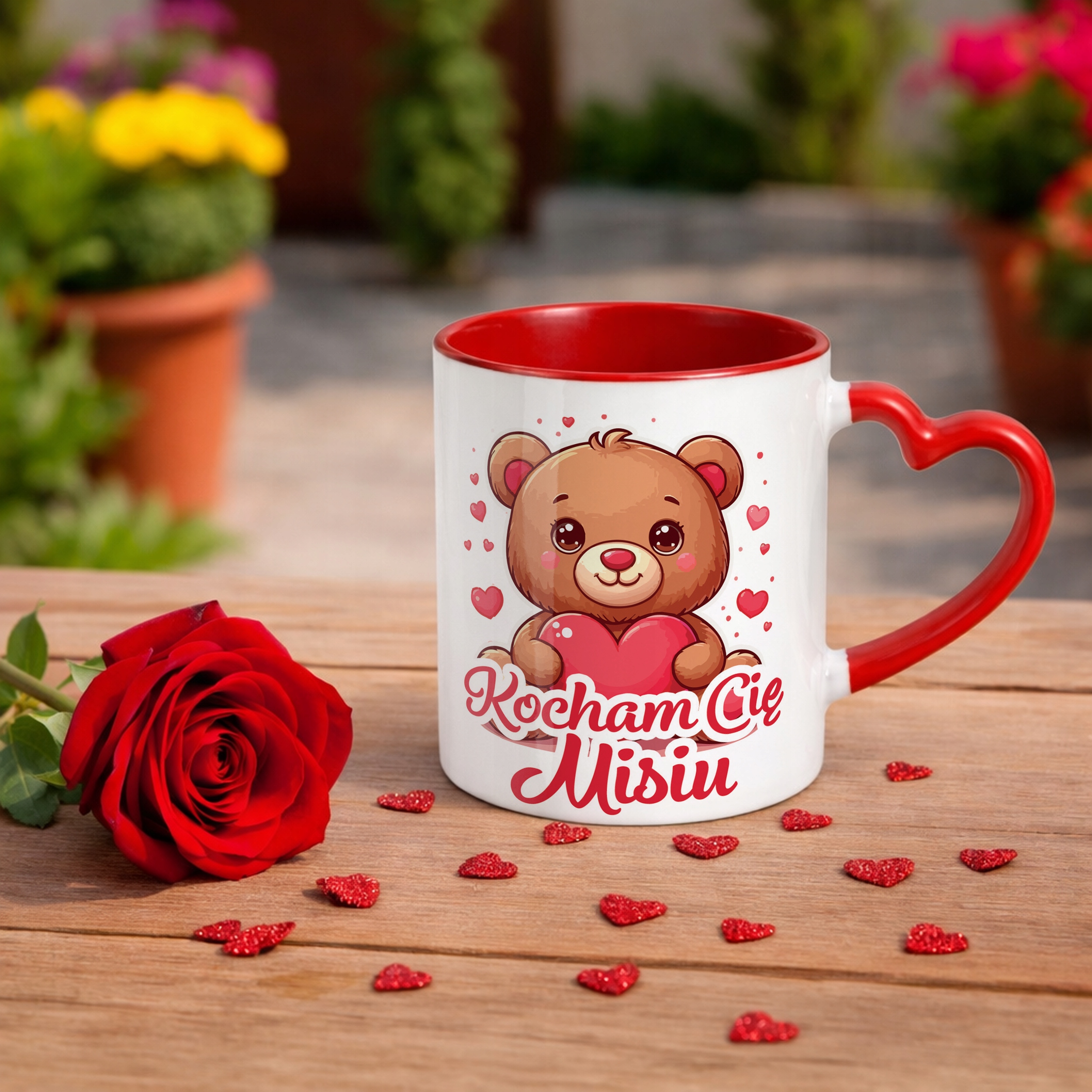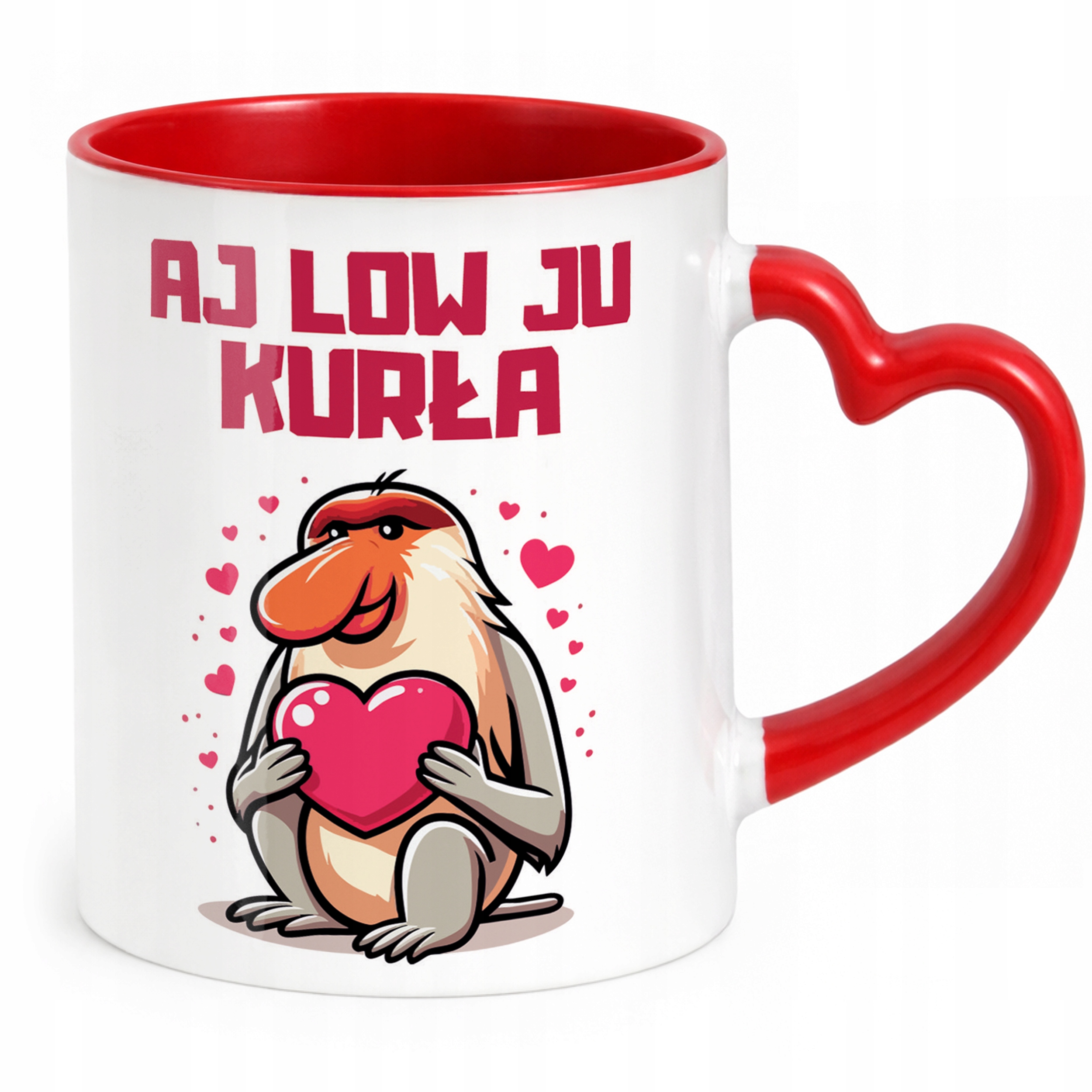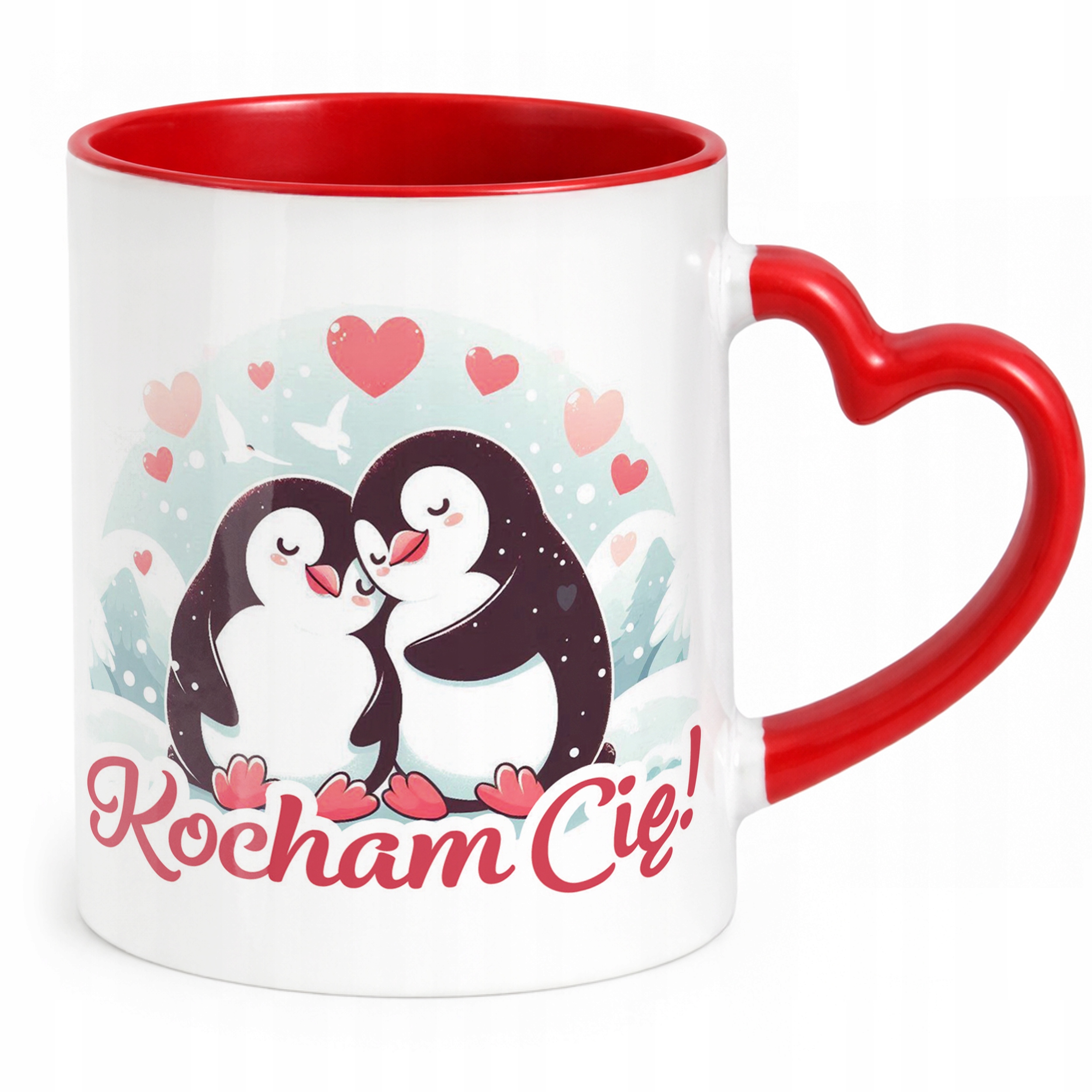 ✨ Walentynkowy kubek z czerwonym wnętrzem i uchwytem w kształcie serca 330 ml z okazji Walentynek – idealny prezent dla ukochanej osoby! ✨