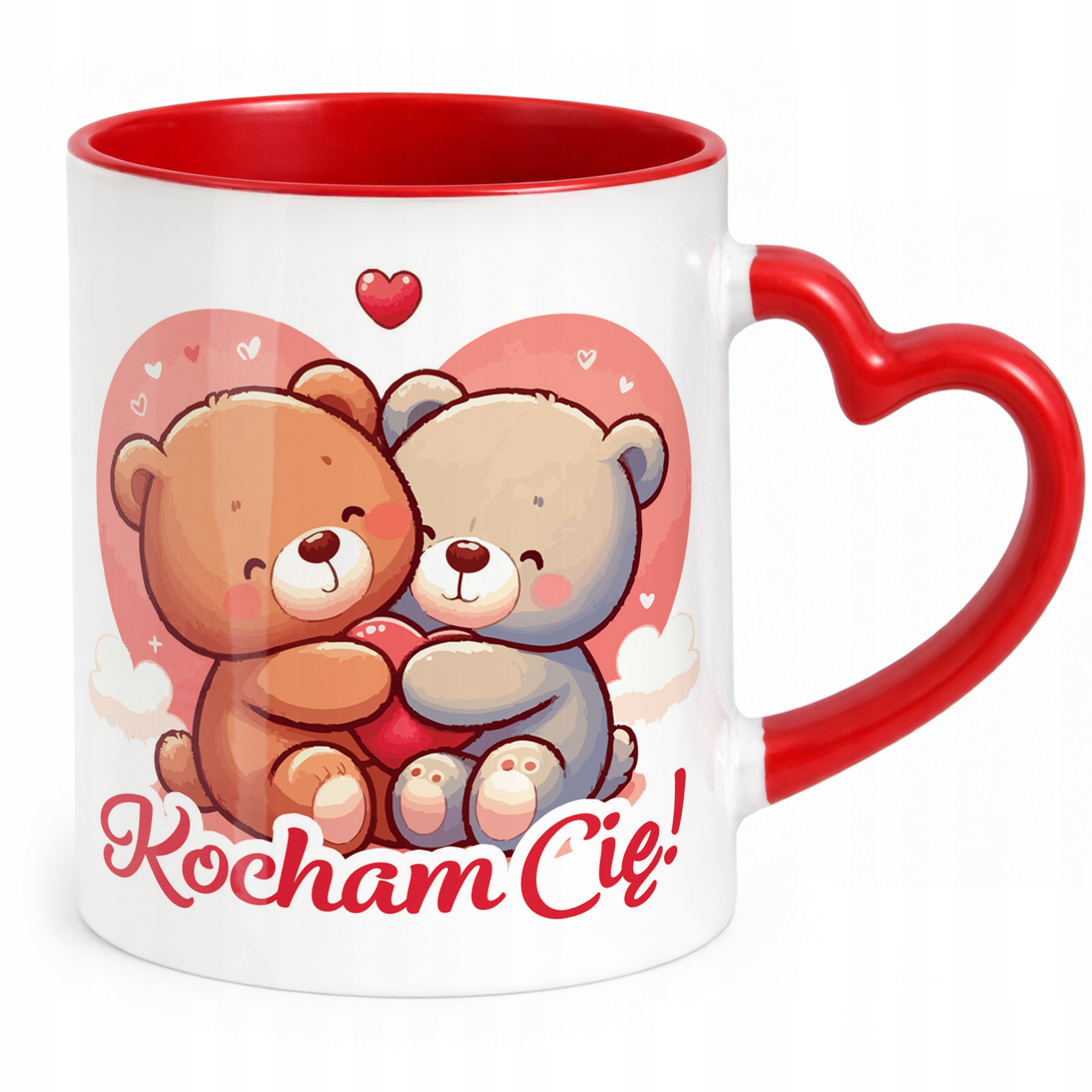 ✨ Walentynkowy kubek z czerwonym wnętrzem i uchwytem w kształcie serca 330 ml z okazji Walentynek – idealny prezent dla ukochanej osoby! ✨