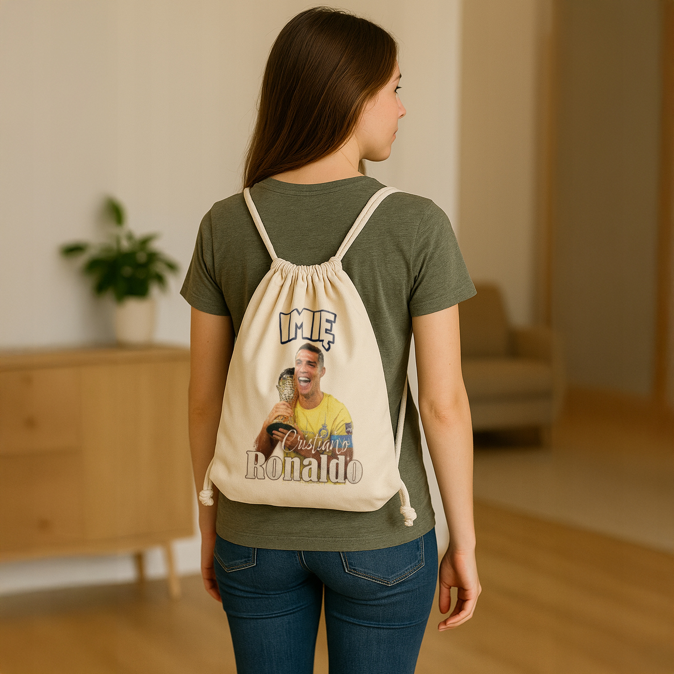 ✨ Bawełniany plecak z imieniem dla kibiców Al-Nassr – Idealny prezent dla fanów Cristiano Ronaldo, którzy kochają piłkarskie emocje! ✨