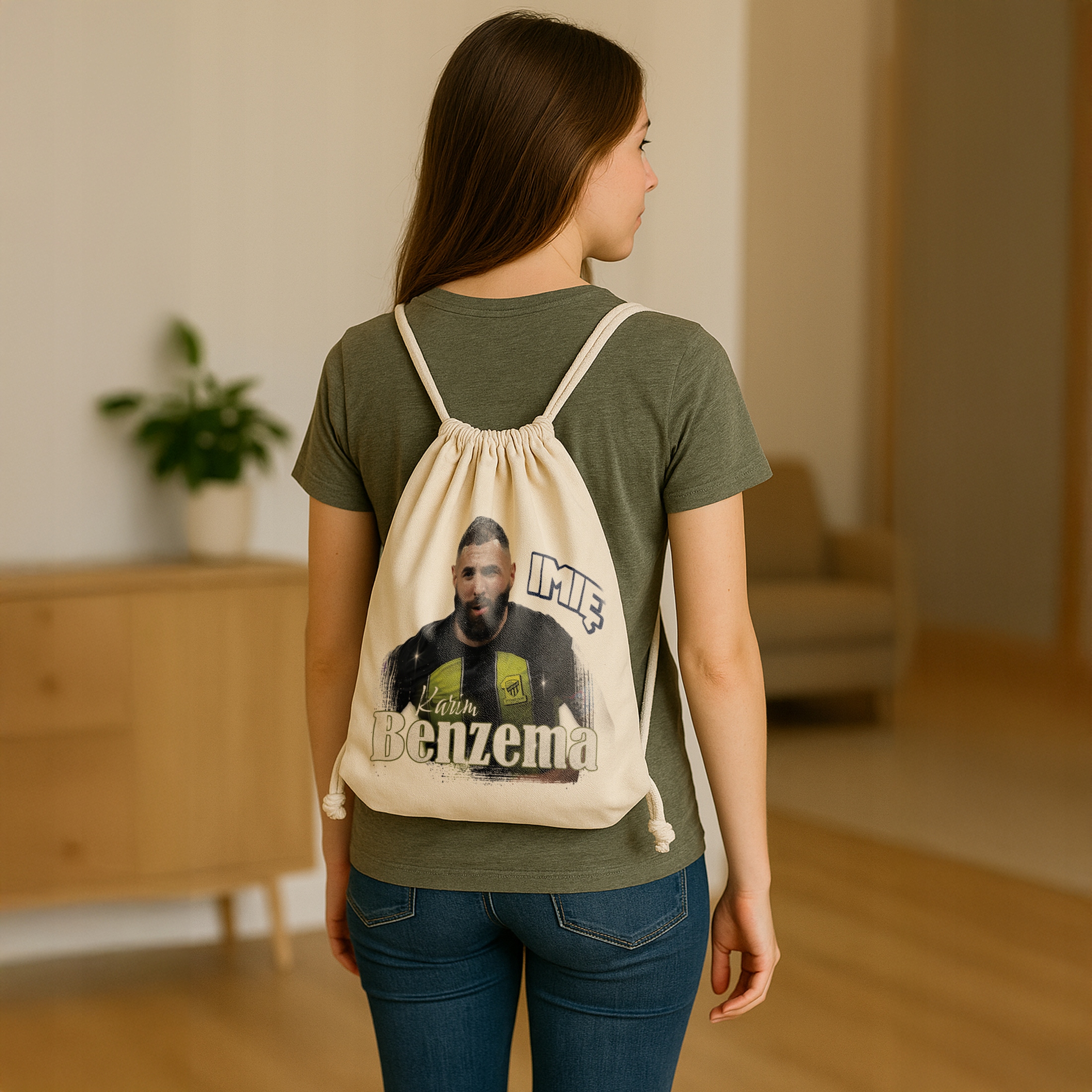 ✨ Bawełniany plecak z imieniem dla kibiców Al-Ittihad – Idealny prezent dla fanów Karima Benzemy, którzy kochają piłkarskie emocje! ✨