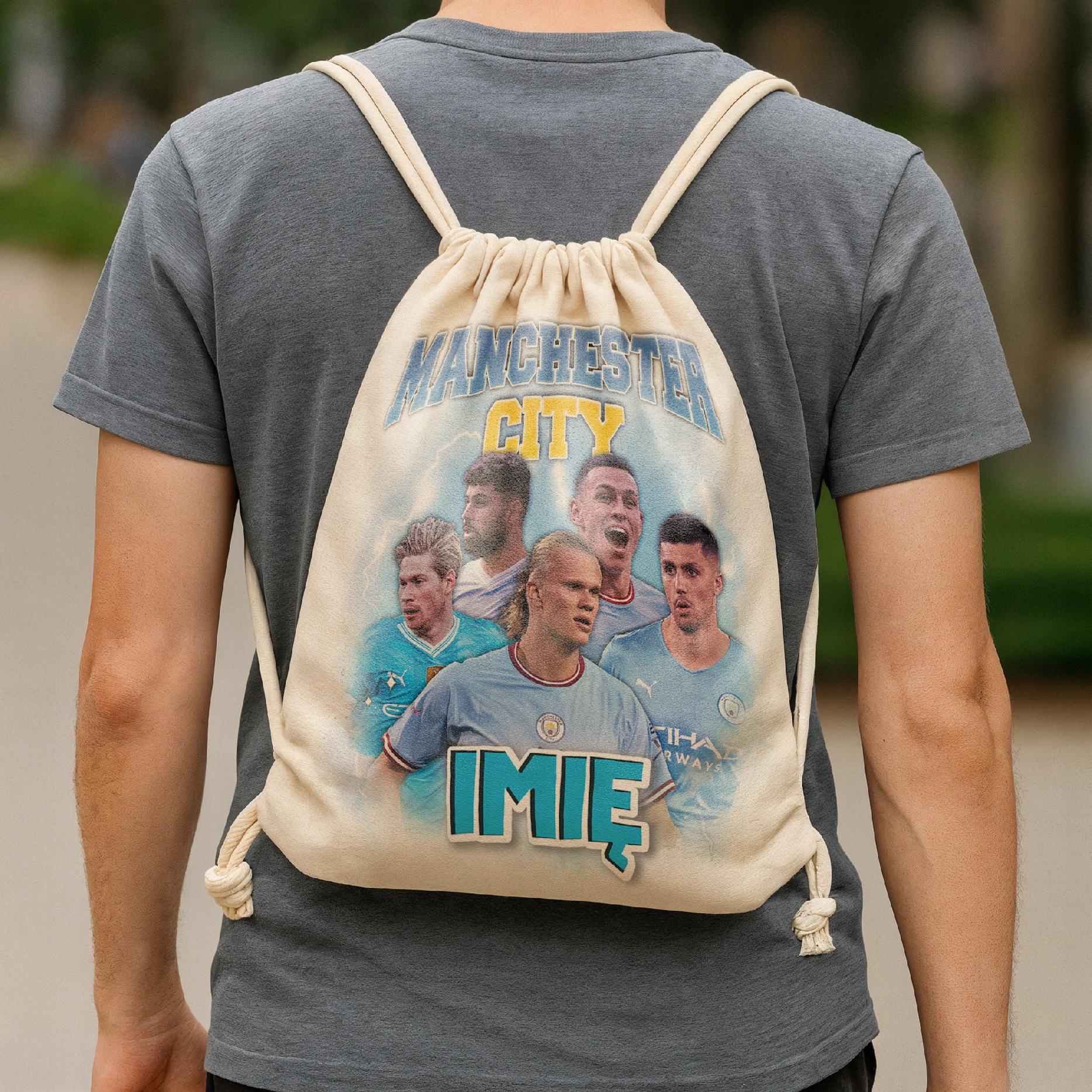 ✨ Bawełniany plecak z imieniem dla kibiców Manchesteru City – Idealny prezent dla fanów, którzy kochają piłkarskie emocje! ✨