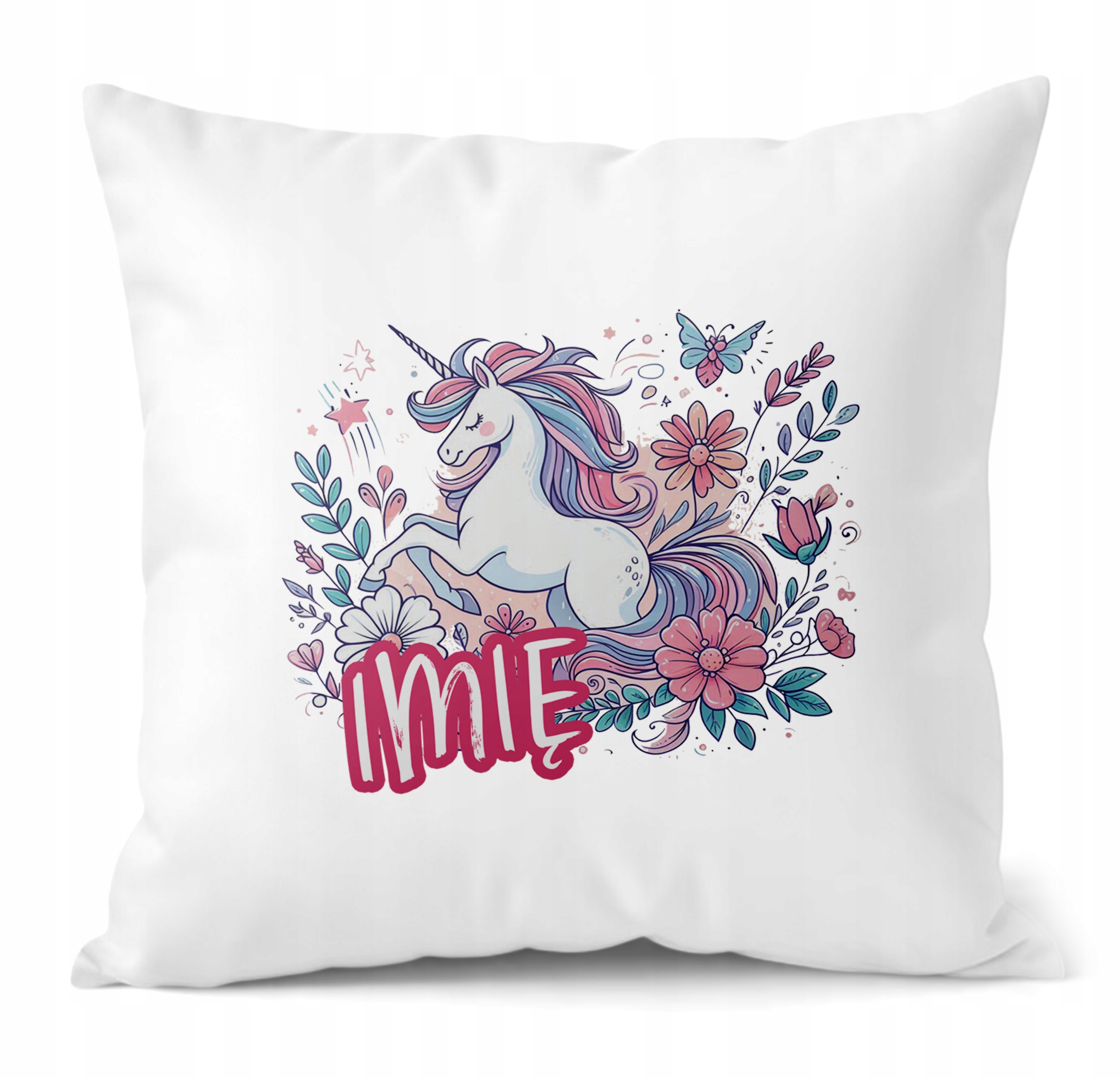 Poduszka 38×38 cm Jednorożec Bajka Prezent z twoim imieniem