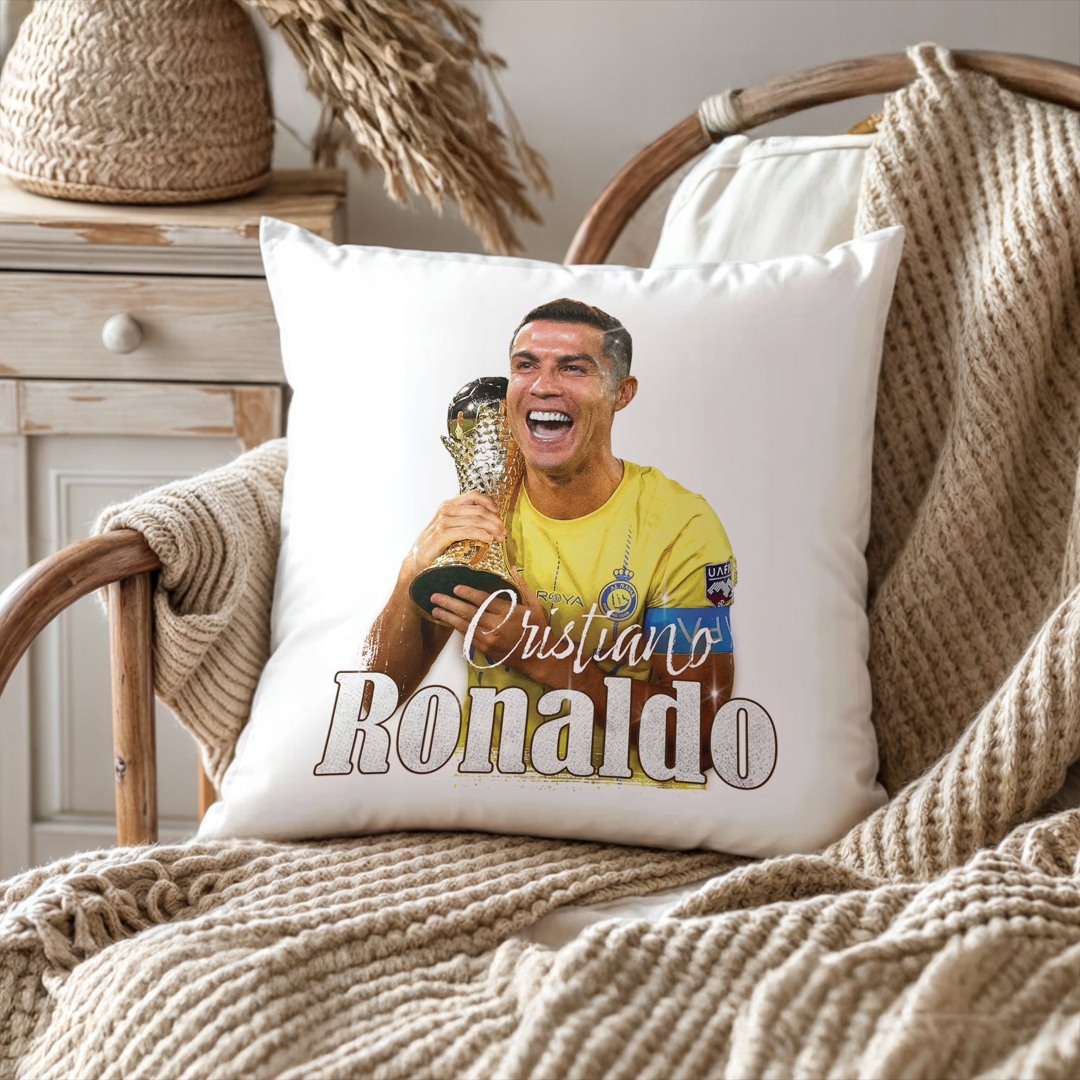 ✨ Poduszka 38×38 cm dla kibiców Al-Nassr – Idealny prezent dla fanów Cristiano Ronaldo, którzy kochają piłkarskie emocje! ✨