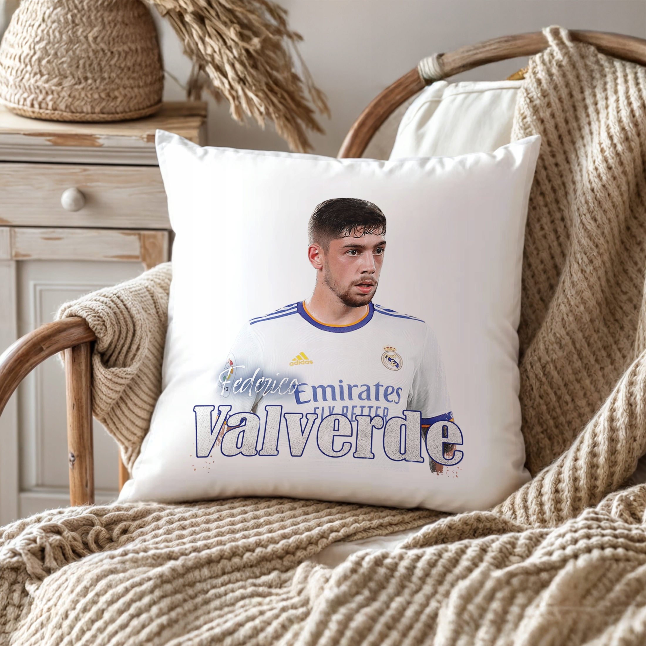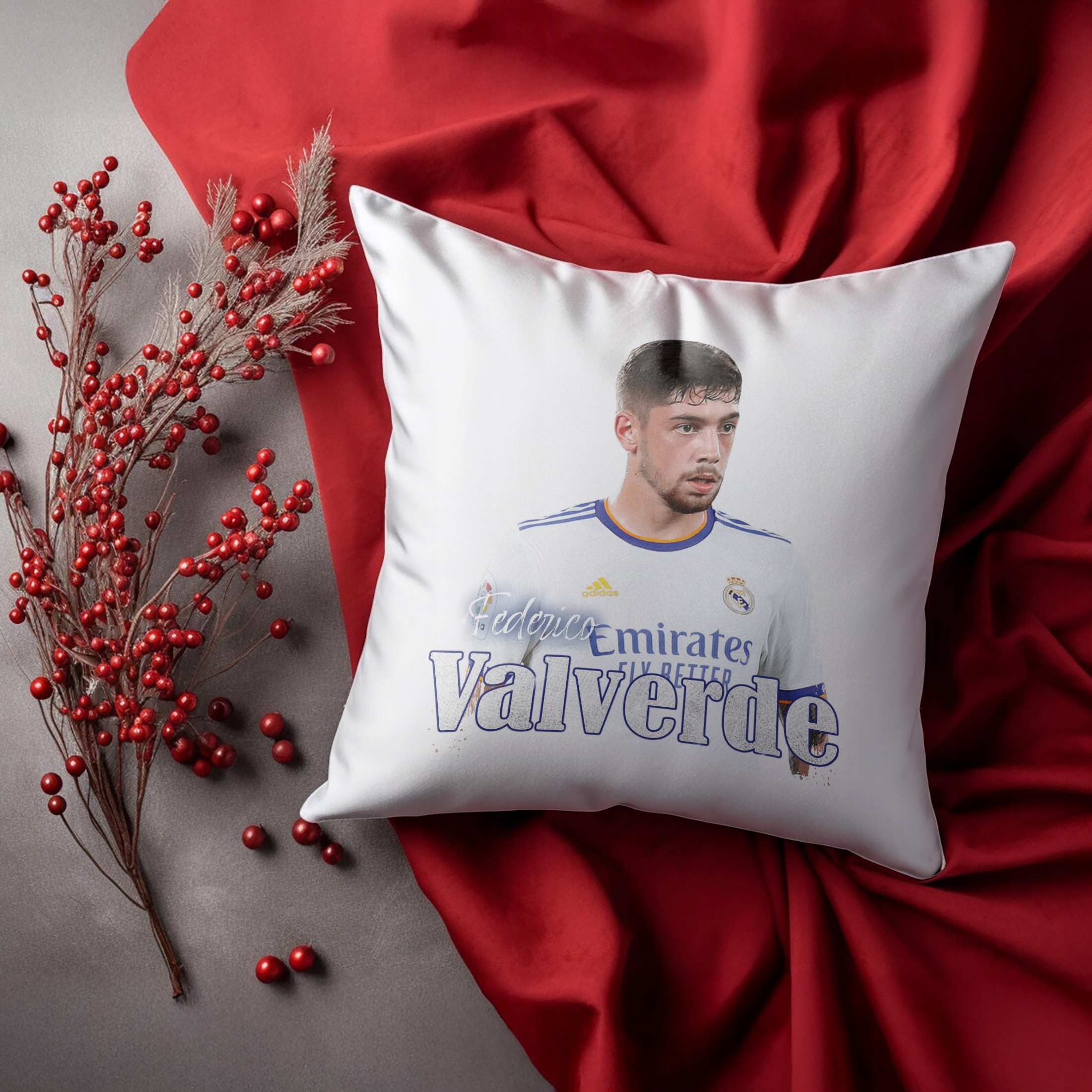 ✨ Poduszka 38×38 cm dla kibiców Realu Madryt – Idealny prezent dla fanów Federico Valverde, którzy kochają piłkarskie emocje! ✨