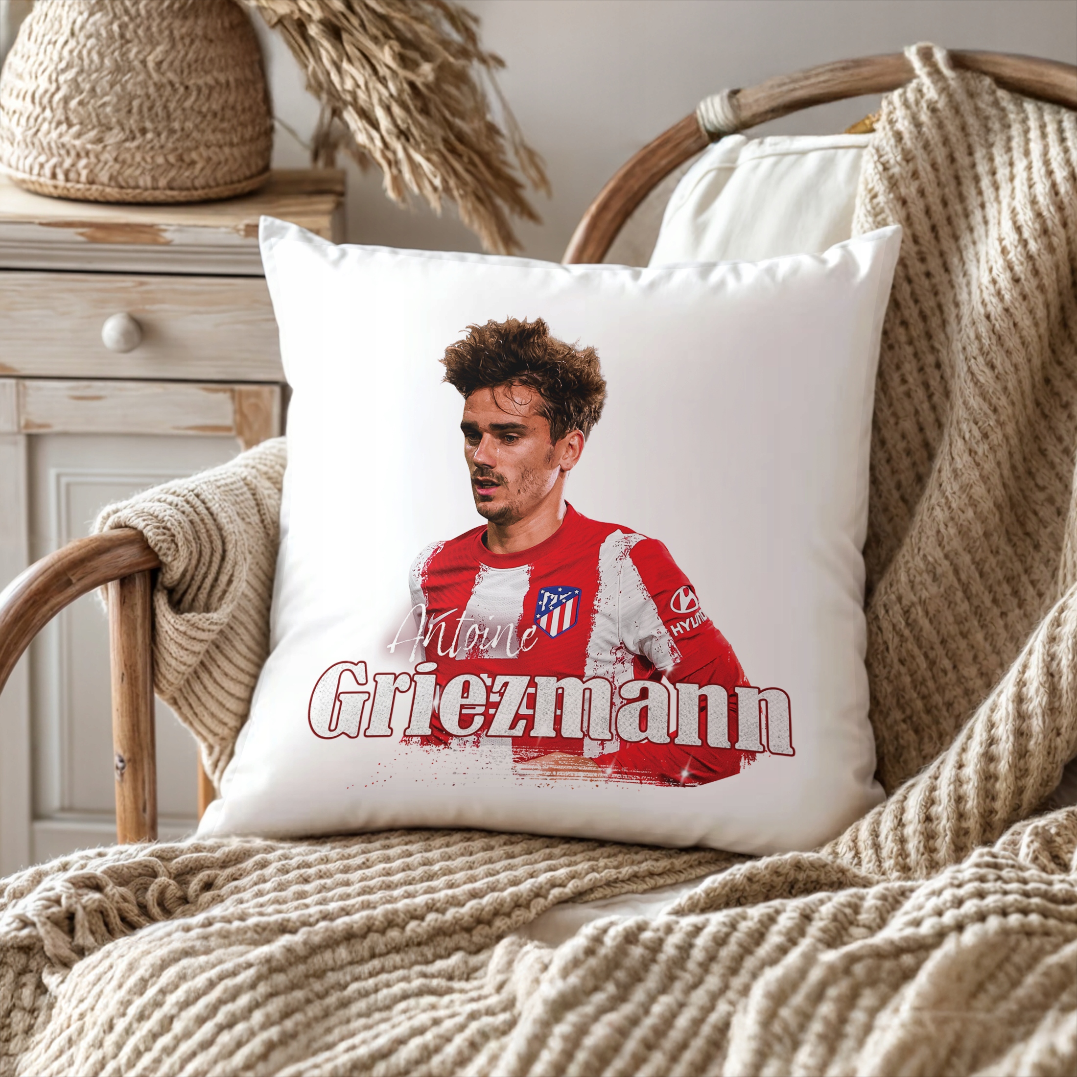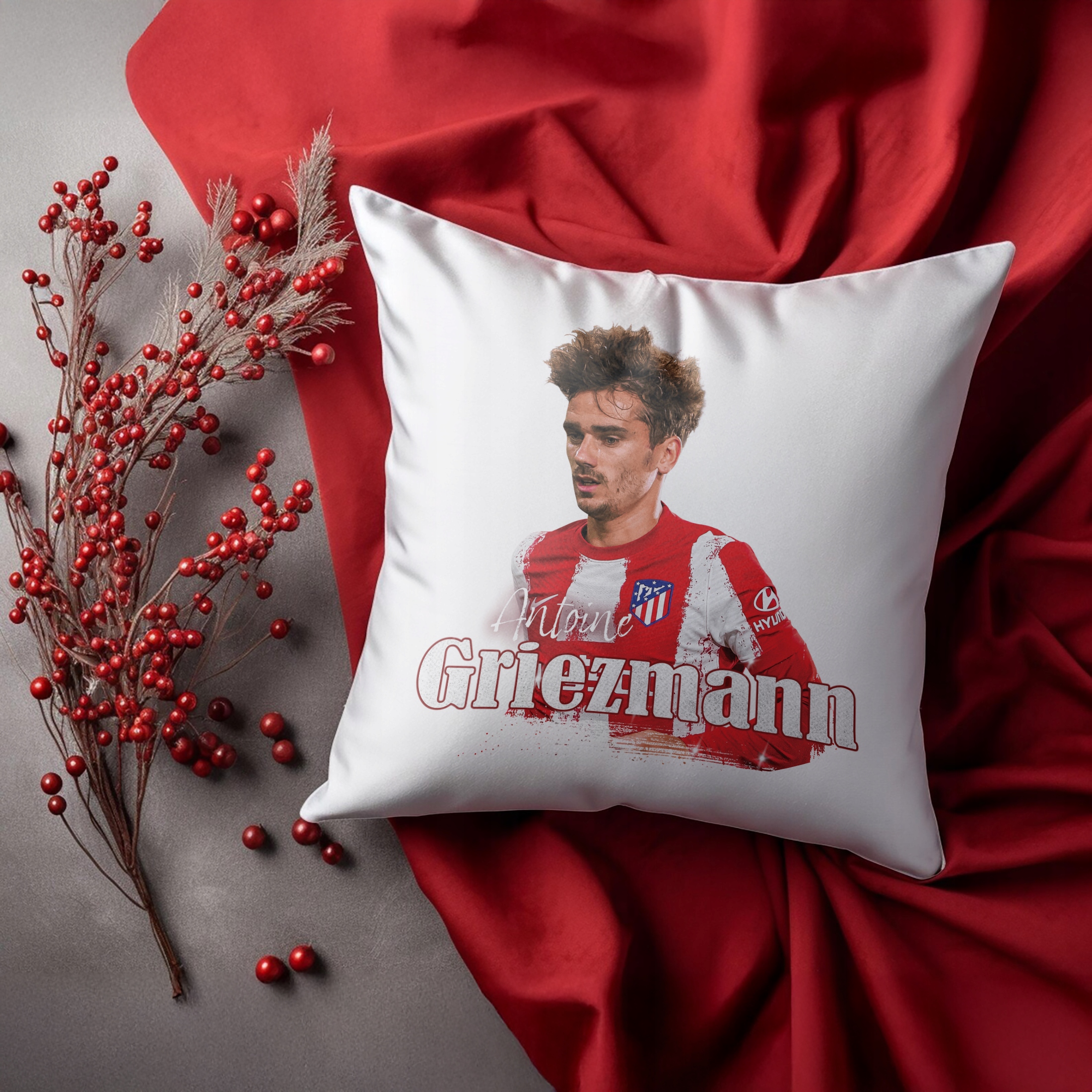 ✨ Poduszka 38×38 cm dla kibiców Atlético Madryt – Idealny prezent dla fanów Griezmanna, którzy kochają piłkarskie emocje! ✨