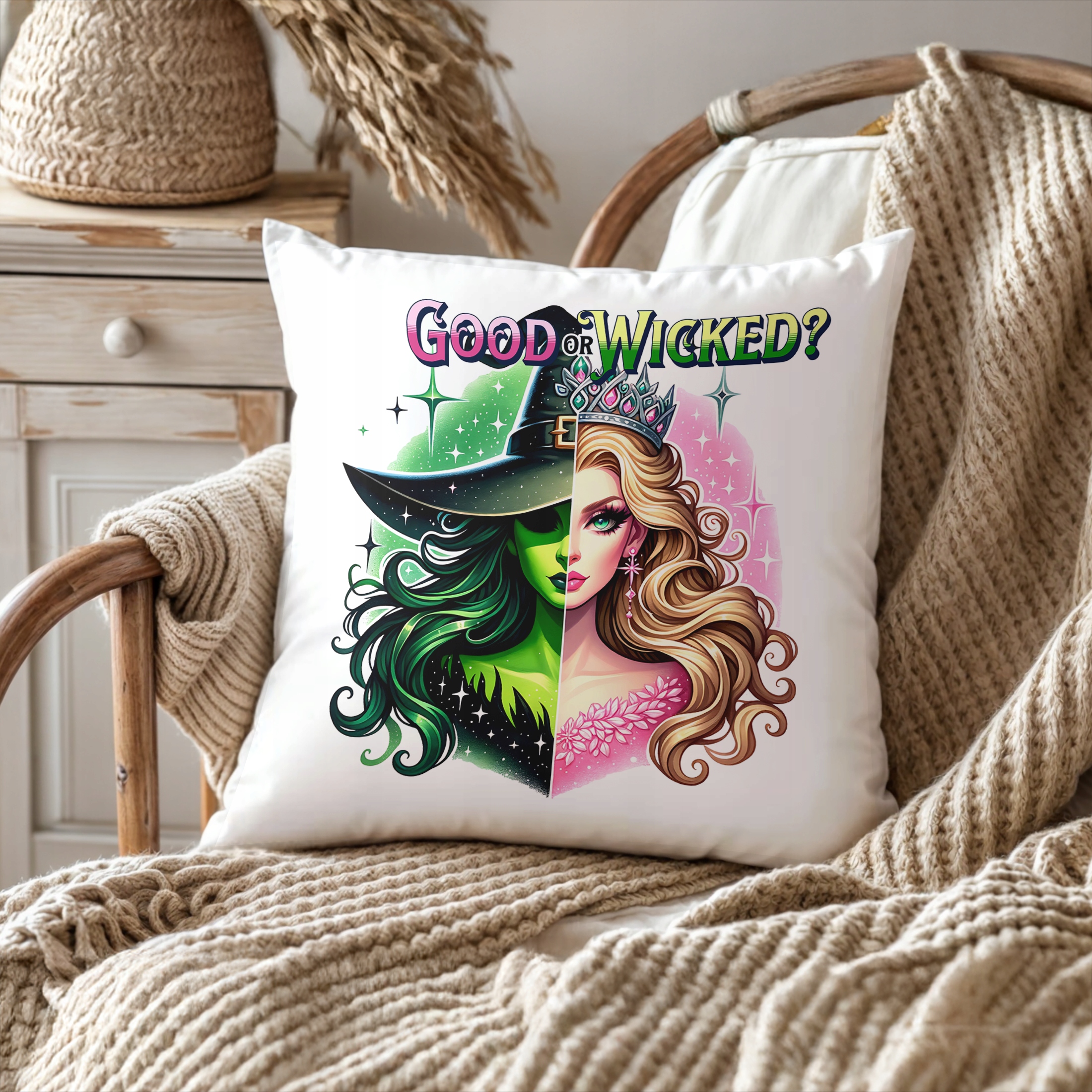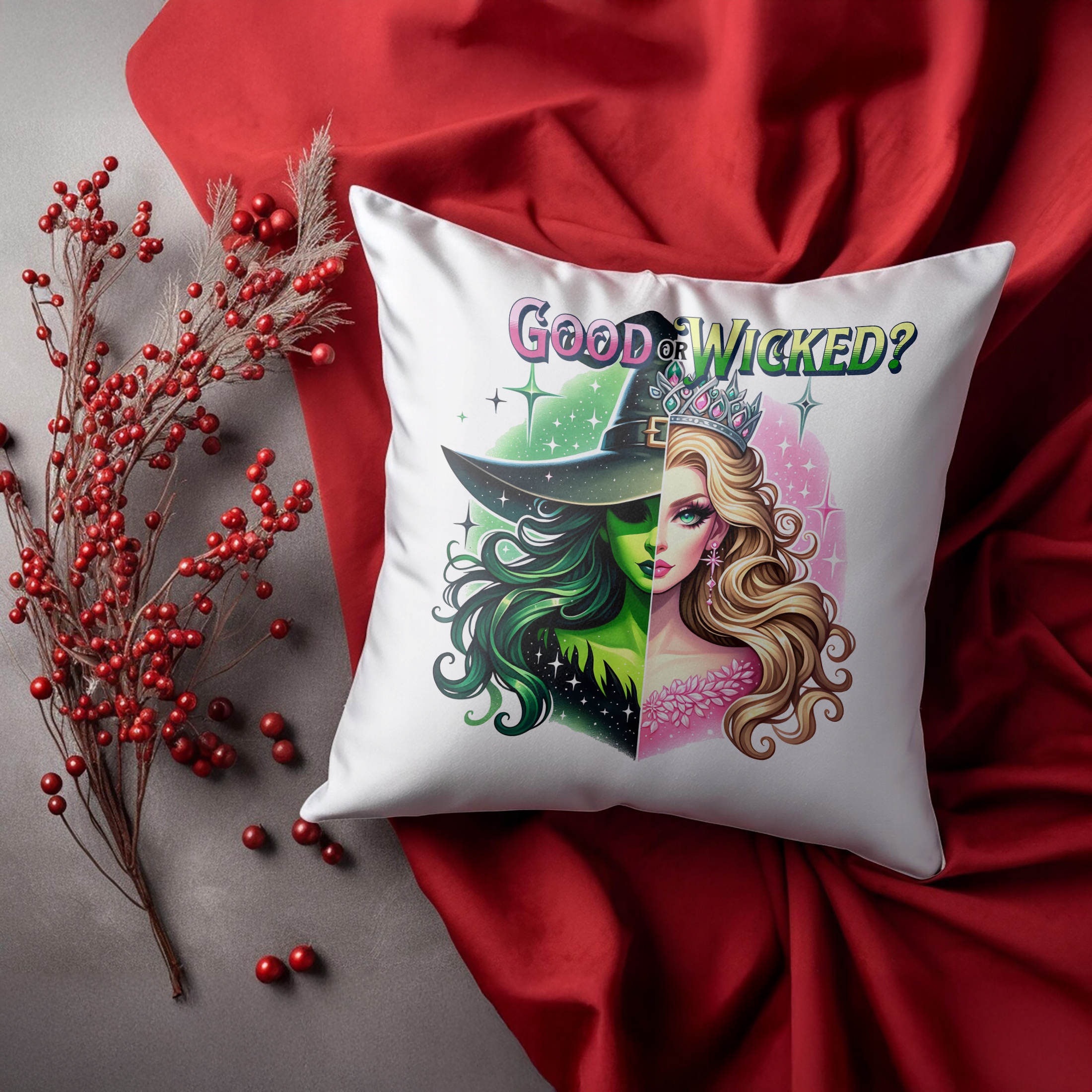✨ Poduszka 38x38cm z motywem musicalu Wicked – idealny prezent dla fana filmu i postaci z nim związanych! ✨