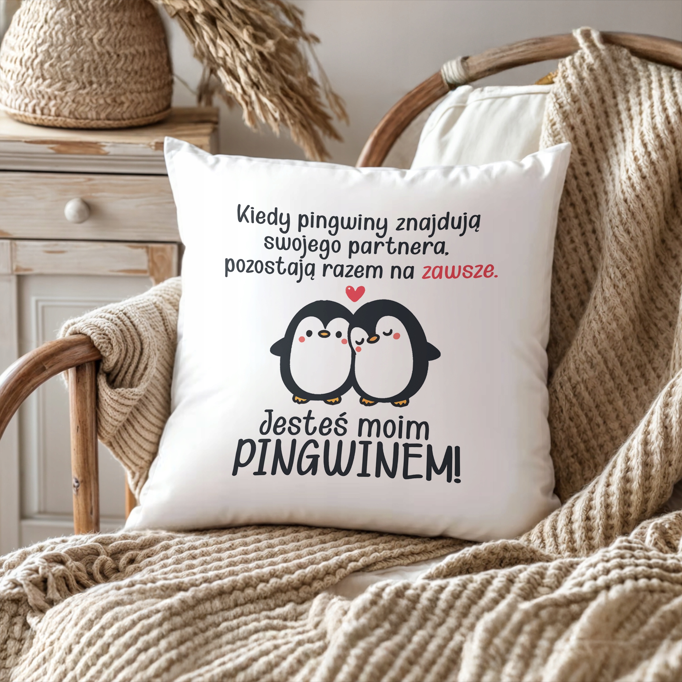 ✨ Poduszka z okazji Walentynki jako Idealny prezent dla ukochanej osoby z wizerunkiem Pingwinów i uroczym napisem ✨