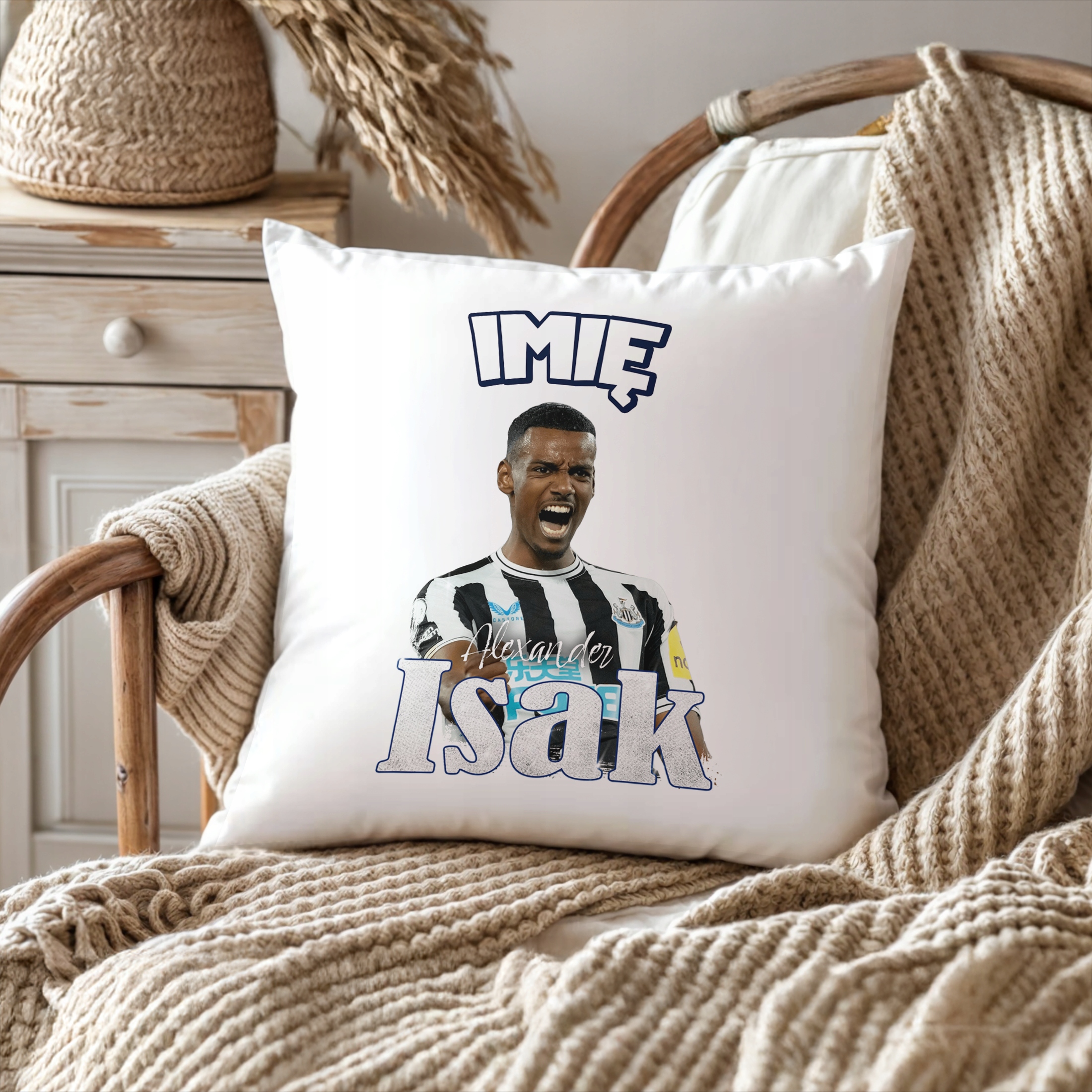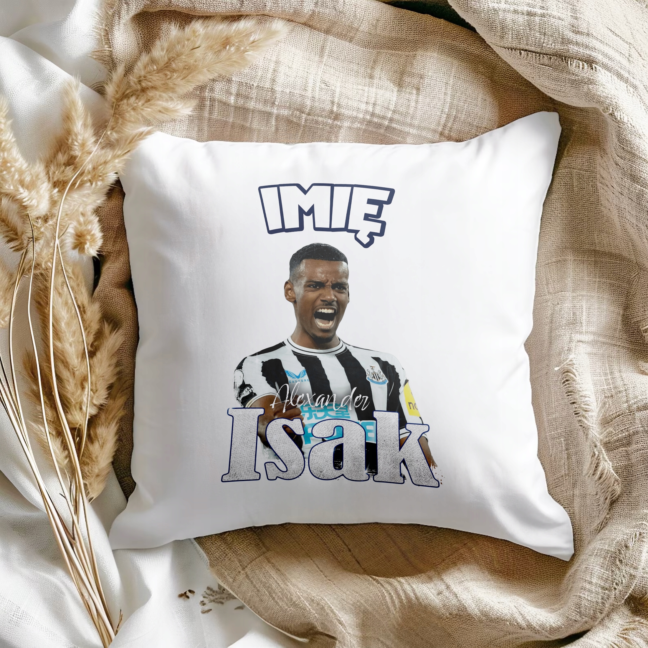 ✨ Personalizowana poduszka z imieniem 38×38 cm dla kibiców Newcastle – Idealny prezent dla fanów Alexandra Isaka, którzy kochają piłkarskie emocje! ✨