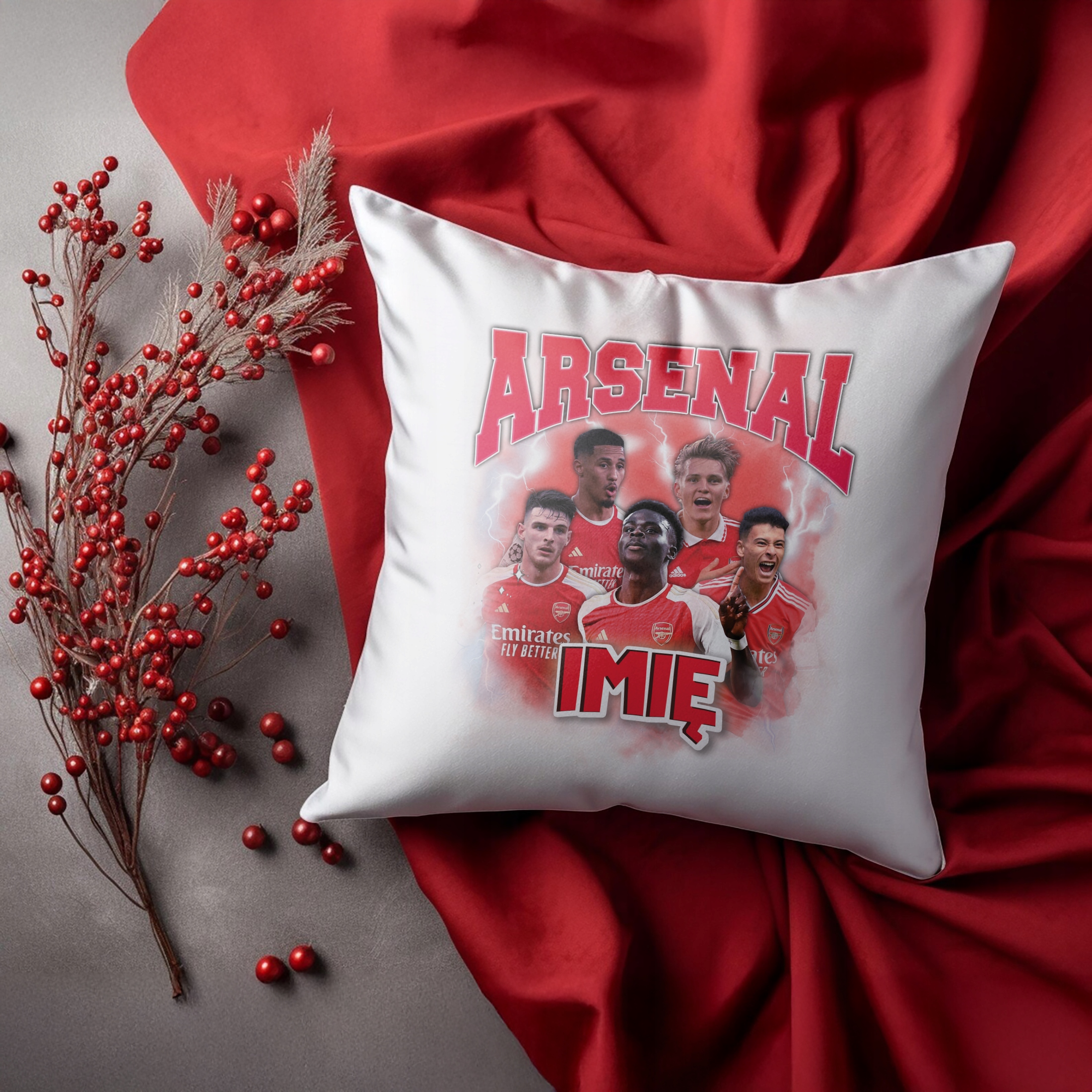 ✨ Personalizowana poduszka z imieniem 38×38 cm dla kibiców Arsenalu – Idealny prezent dla fanów, którzy kochają piłkarskie emocje! ✨