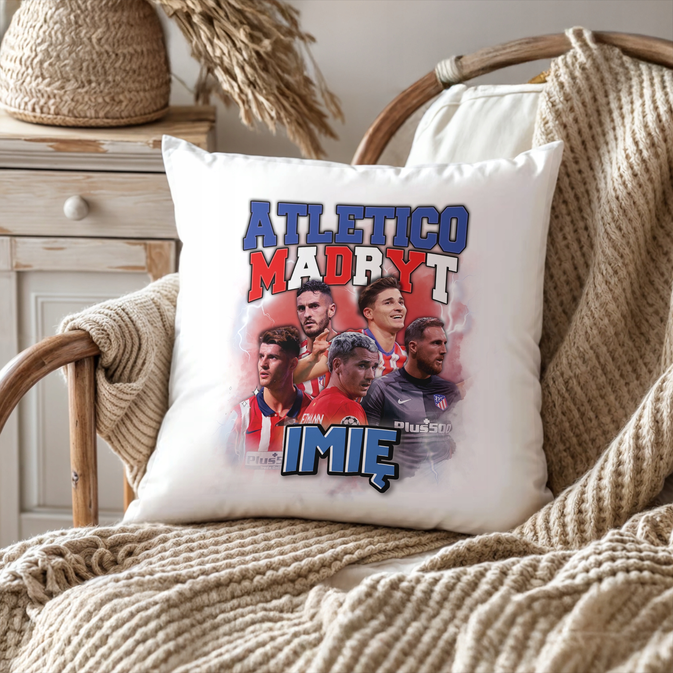 ✨ Personalizowana poduszka z imieniem 38×38 cm dla kibiców Atlético Madryt – Idealny prezent dla fanów, którzy kochają piłkarskie emocje! ✨