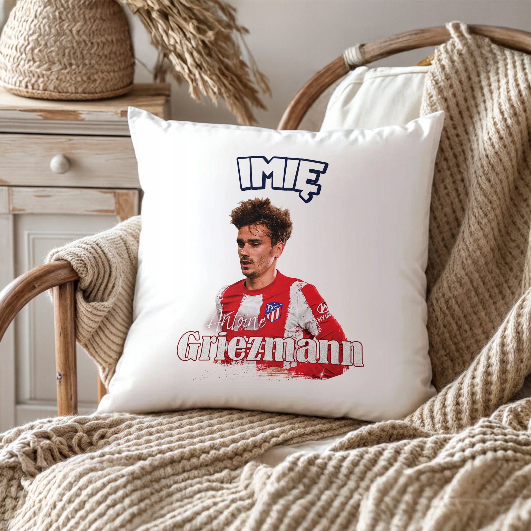 ✨ Personalizowana poduszka z imieniem 38×38 cm dla kibiców Atlético Madryt – Idealny prezent dla fanów Griezmanna, którzy kochają piłkarskie emocje! ✨