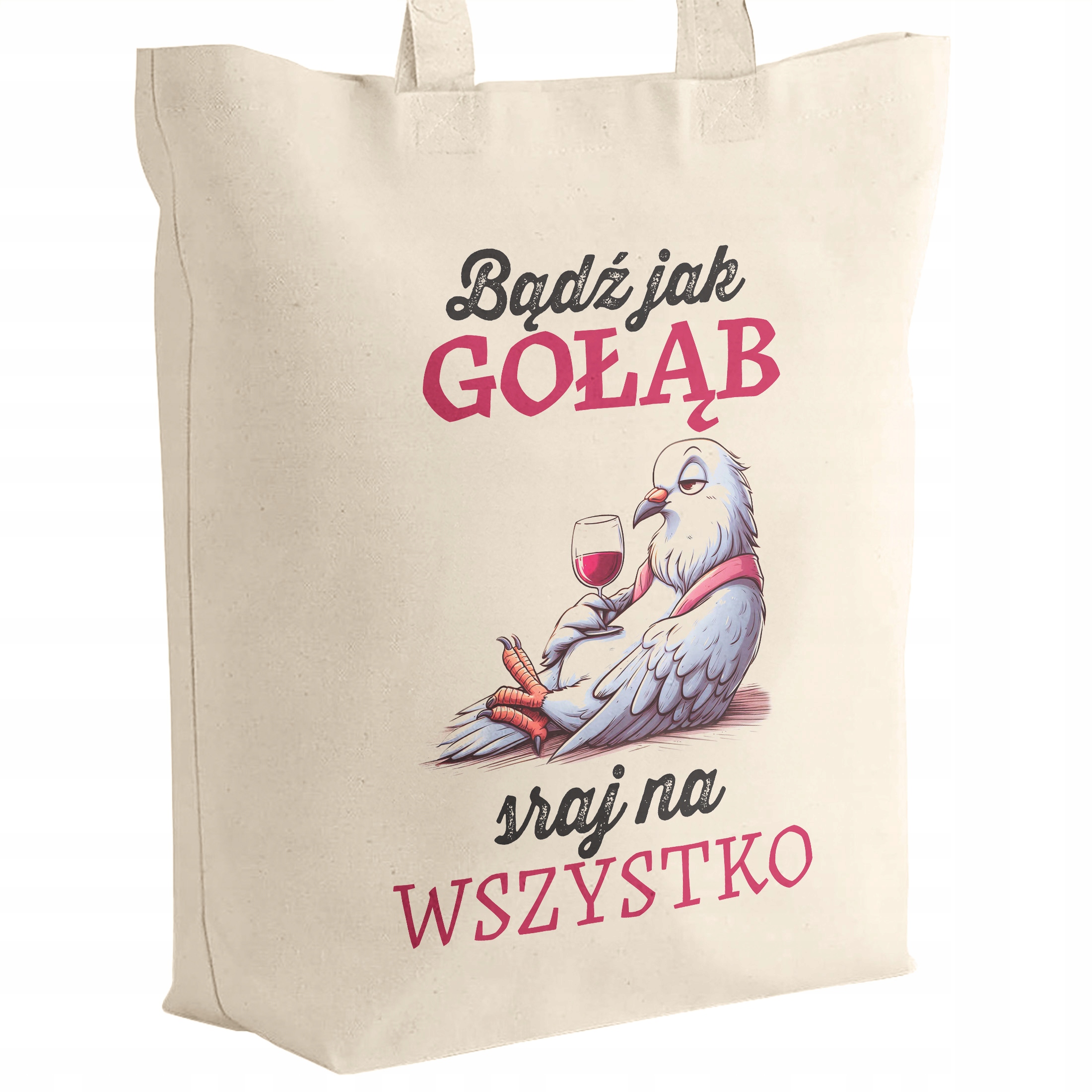❤️ Osoby z dystansem do życia – torba “Bądź jak gołąb, sraj na wszystko” będzie idealna dla tych, którzy nie biorą życia zbyt serio i potrafią podejść do problemów z dużą dawką humoru.