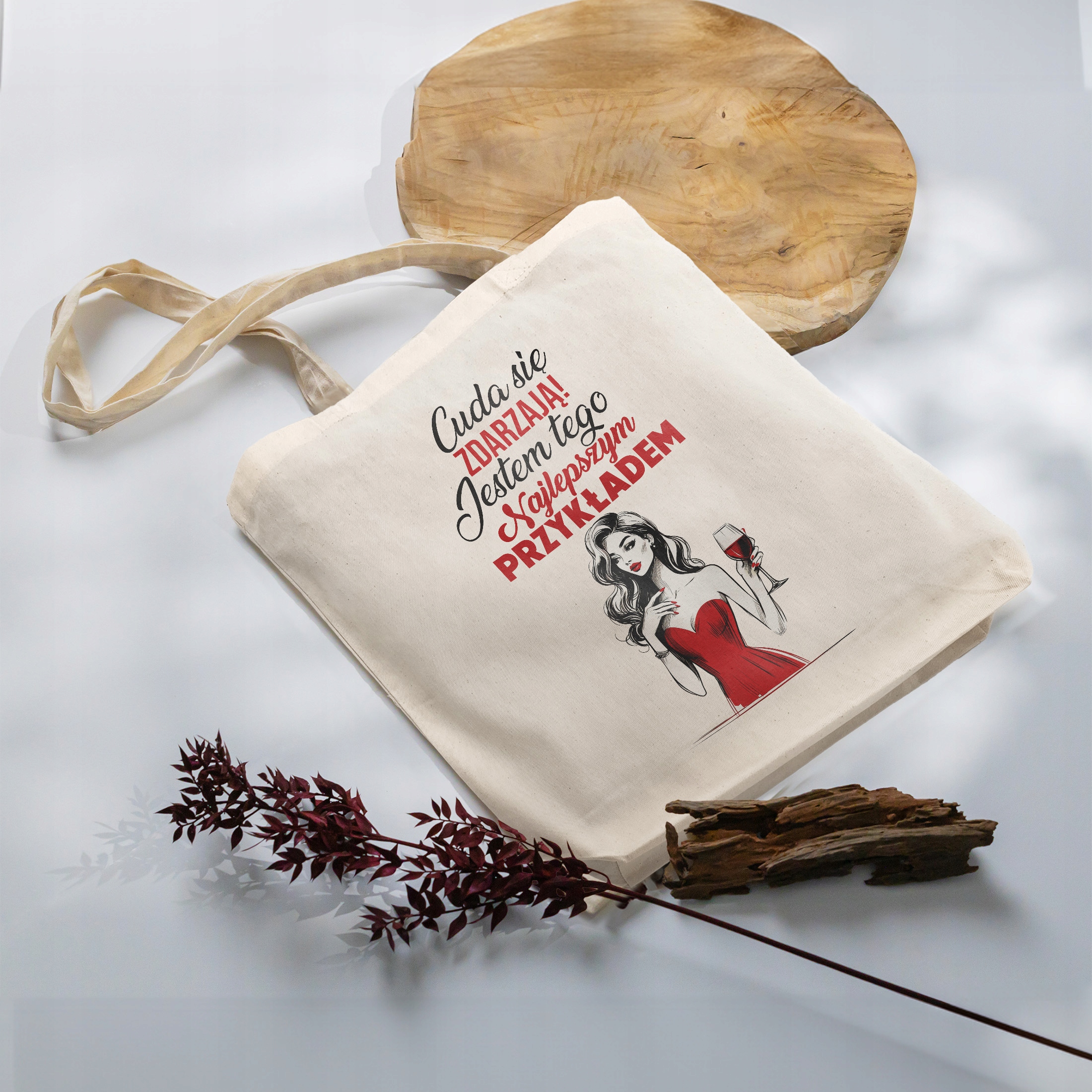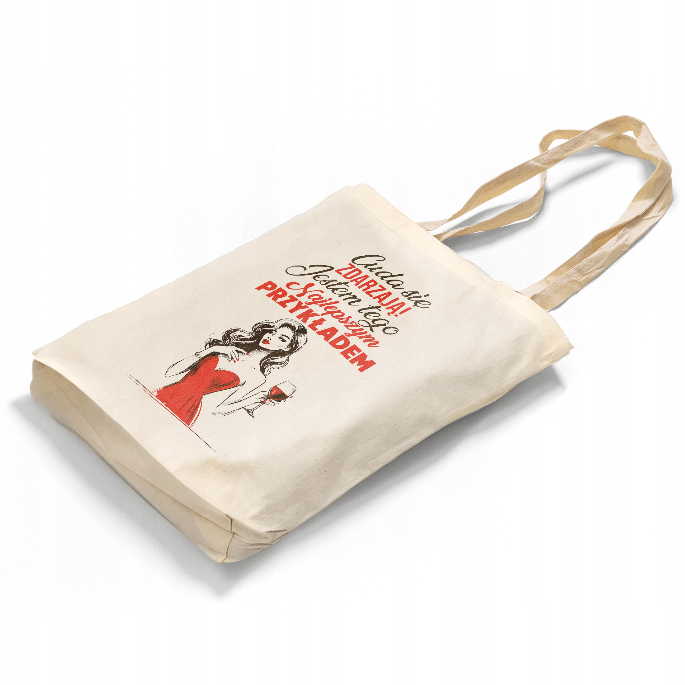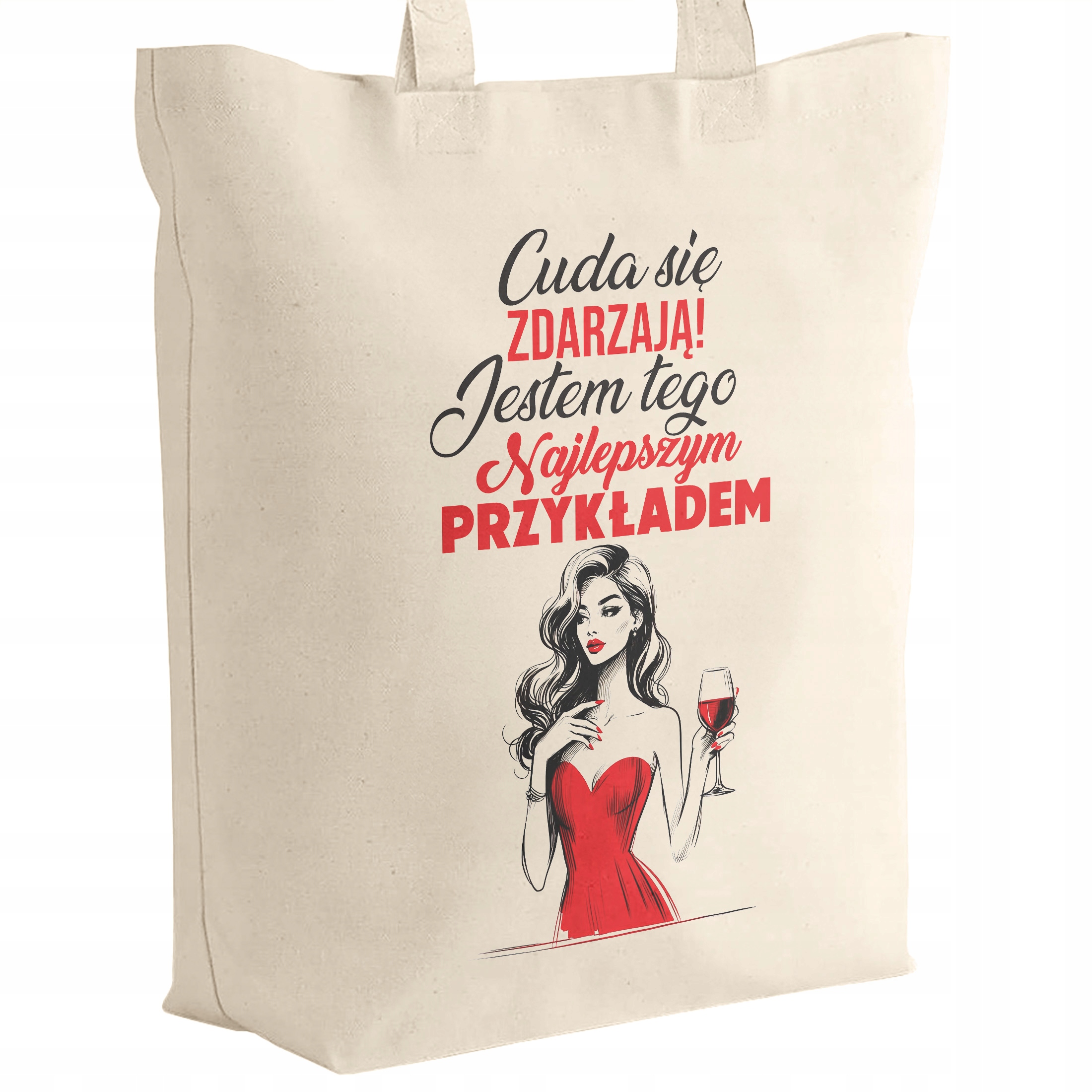 ✨ Bawełniana torba z dnem na zakupy z zabawnym napisem ,,Cuda się zdarzają, jestem tego najlepszym przykładem” idealna jako prezent na Dzień Kobiet i nie tylko ✨