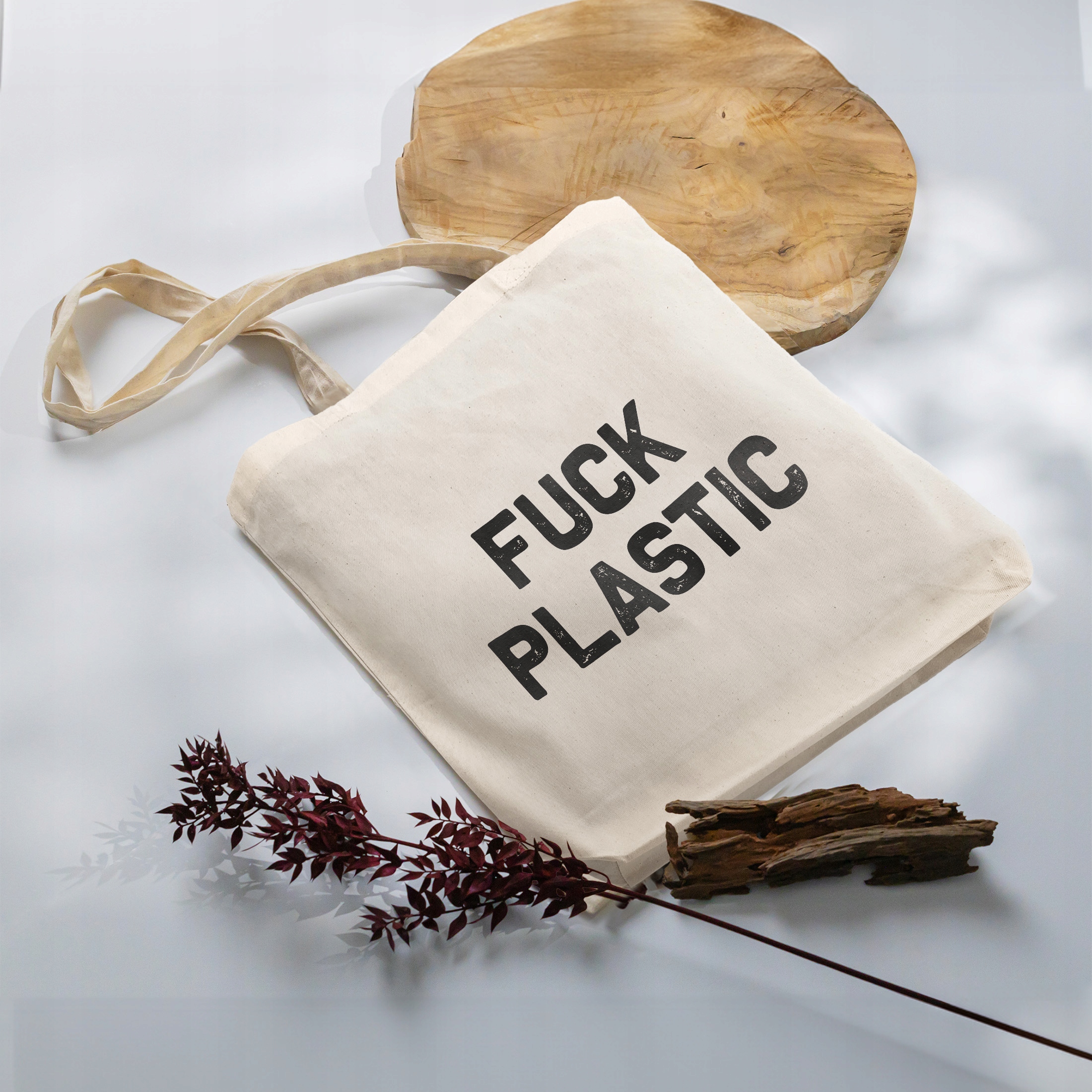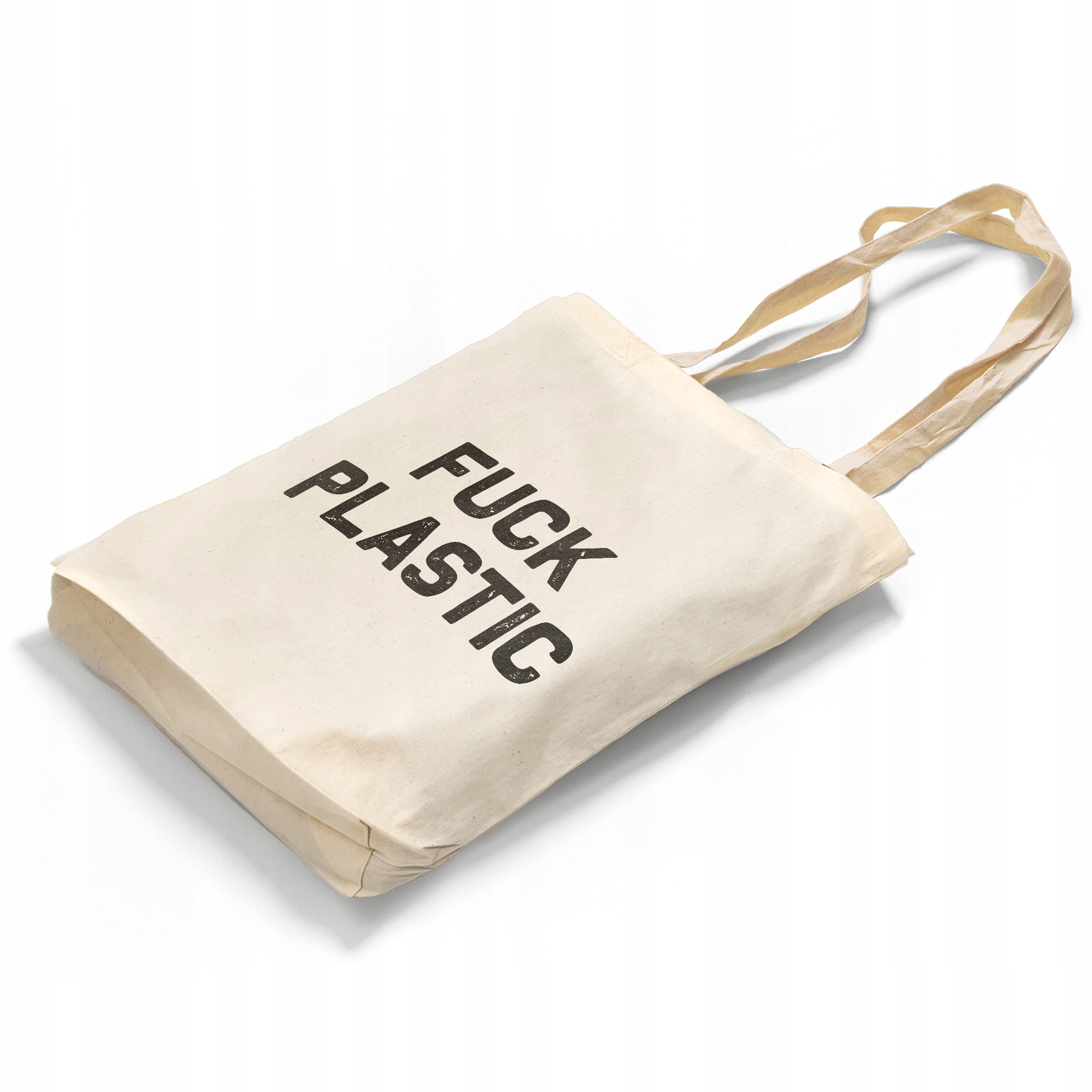 ✨ Torba bawełniana z dnem idealna na zakupy z motywem ekologicznym i napisem FUCK PLASTIC dla osób dbających o ochronę środowiska ✨